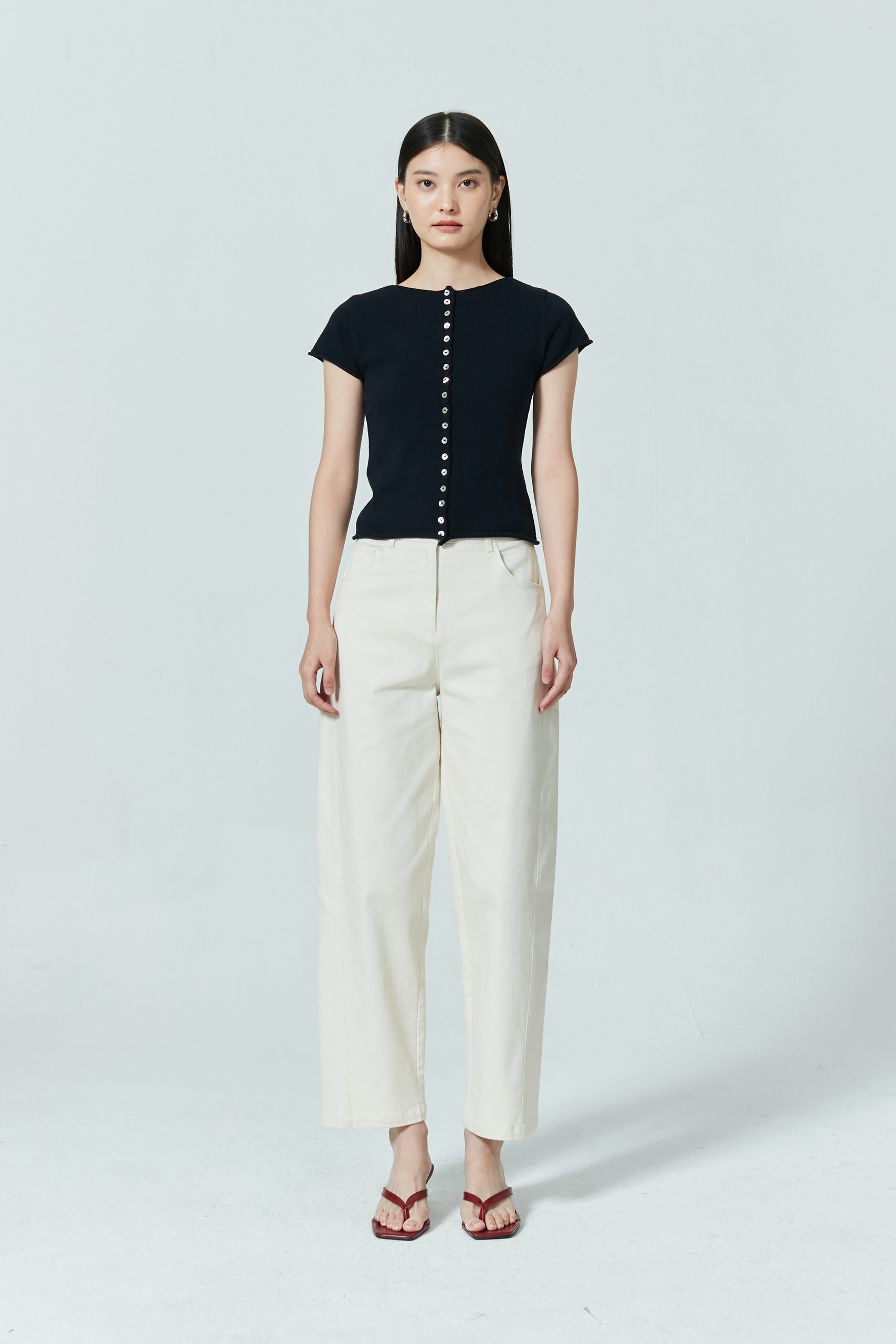 A modern take on tailored comfort, these barrel-cut pants feature an elasticized back waistband for a flexible, flattering fit. The structured silhouette makes them perfect for workdays or elevated rest-day styling.