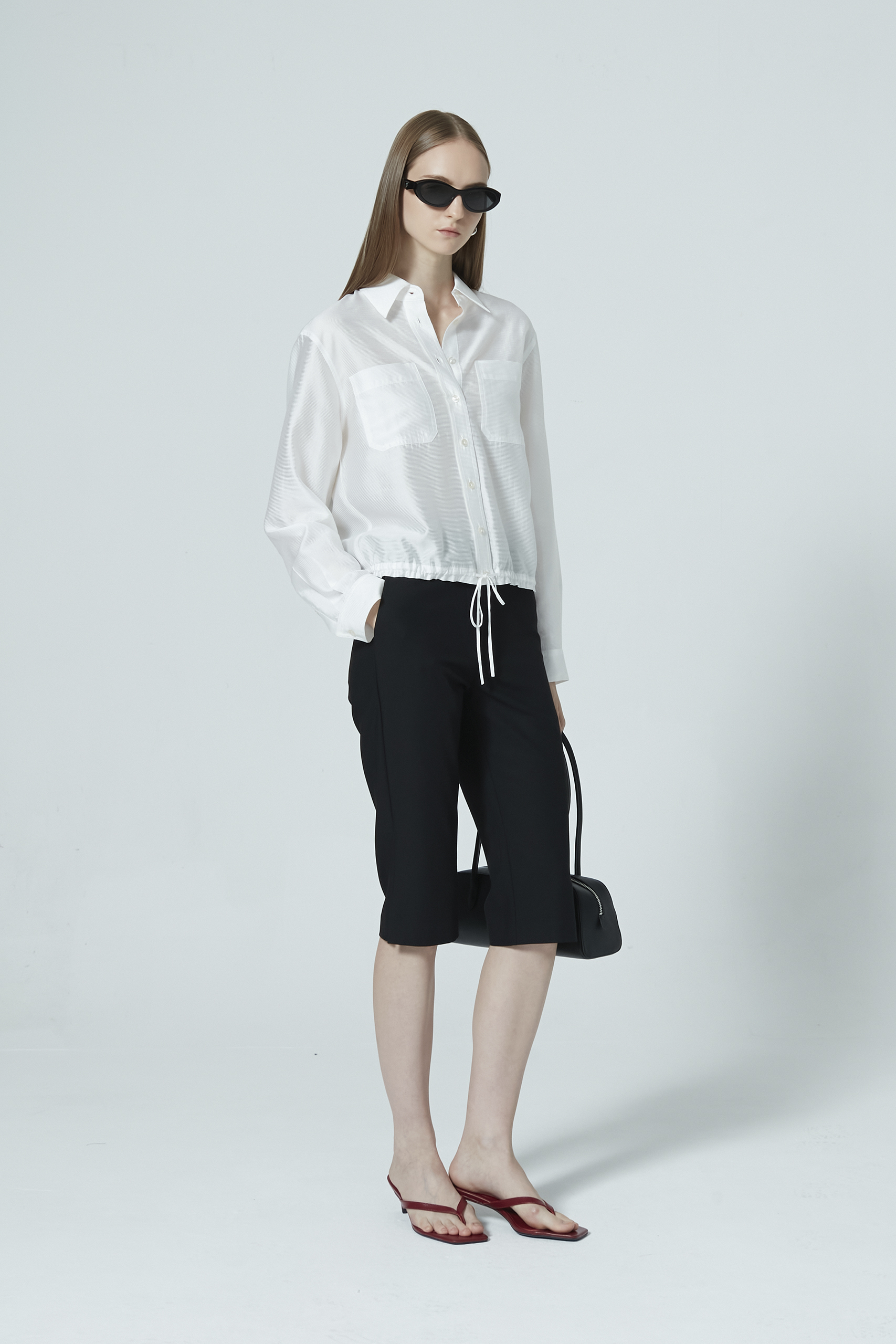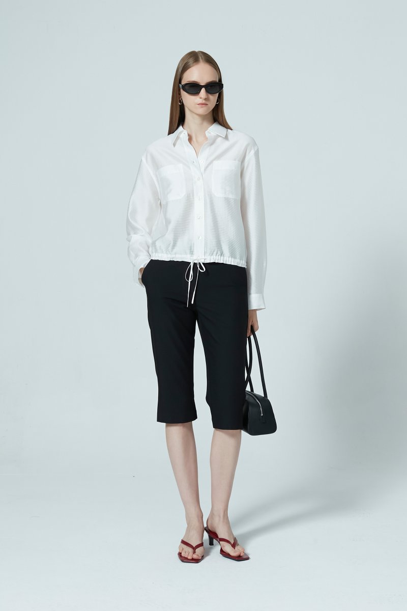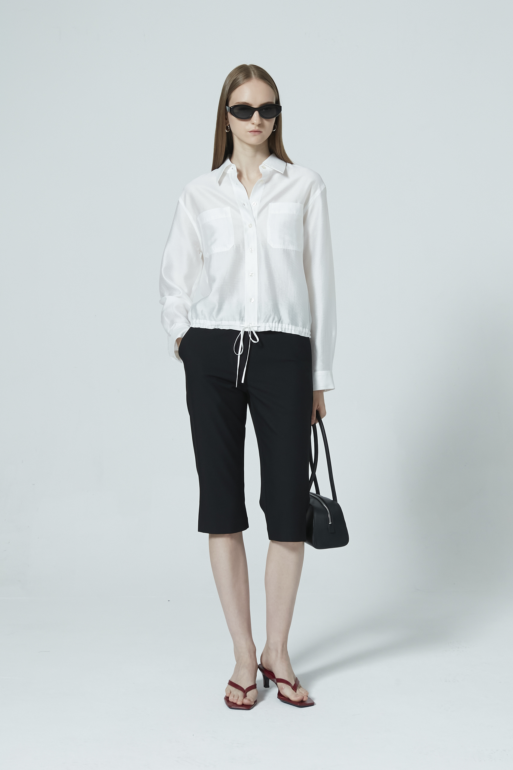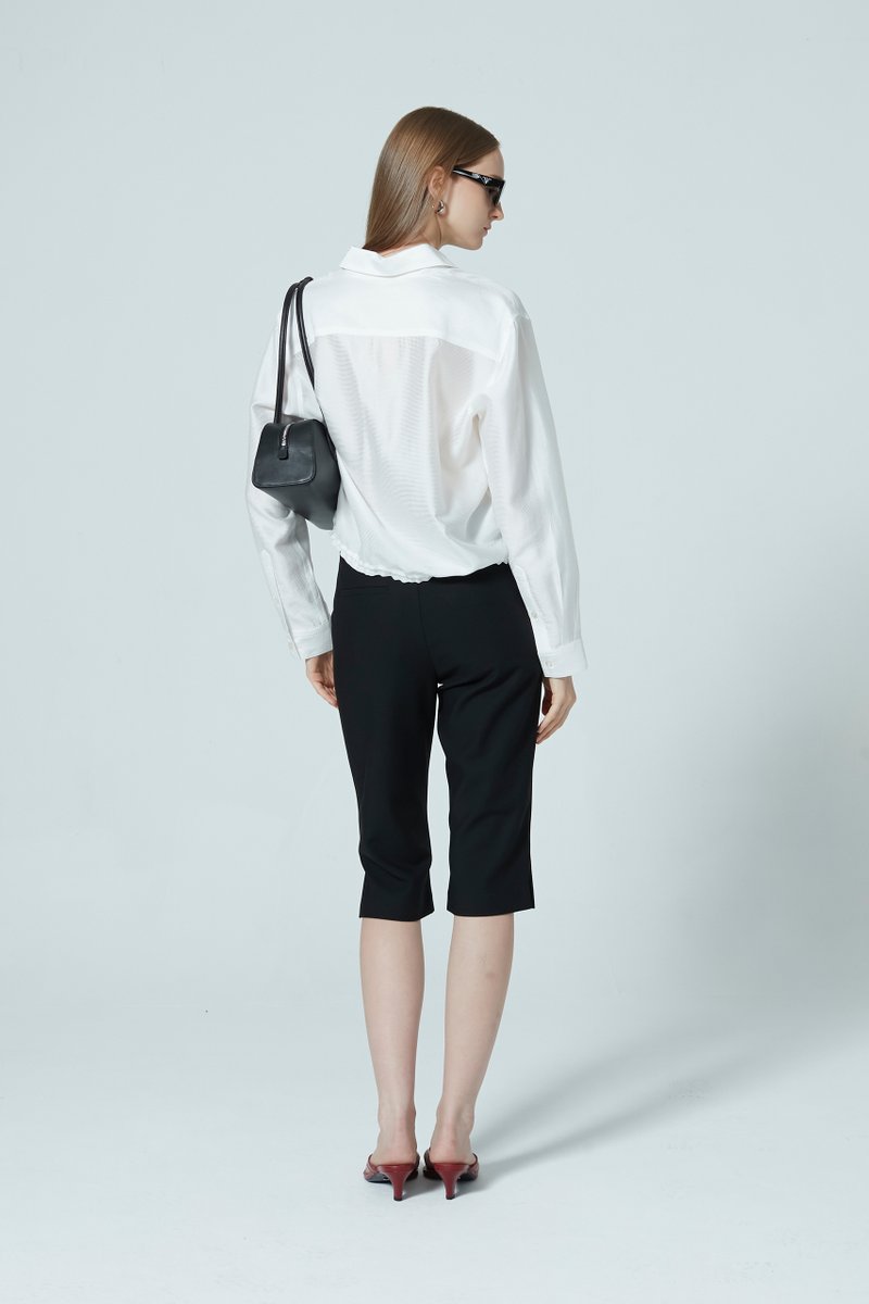 A seasonal staple with fitted pedal pushers ending just below the knee, featuring side and back pockets and crafted from breathable Tencel blend fabric. Pair with a basic white oversized tee for a relaxed, effortless look.