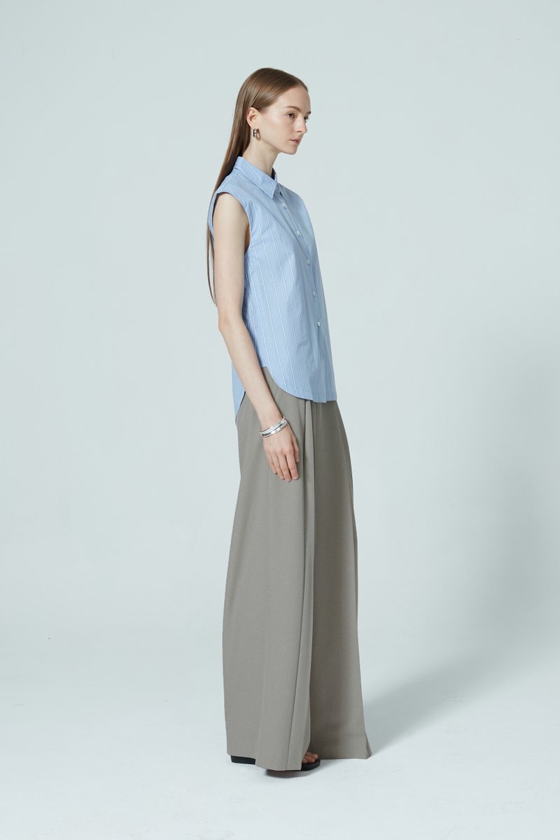 A wardrobe staple—Pleated Flare Pants. Perfectly wide with room for movement, the pants feature side pockets and an elasticated back waistband for added comfort. Finished with a concealed side zipper.