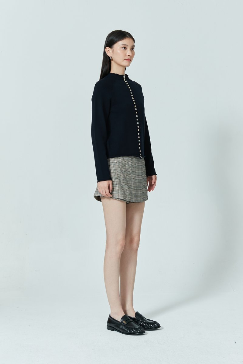Simple yet refined—this Houndstooth Mini Skort balances comfort with style, ending at the perfect mini length. Comes with a side zipper for ease of wear. Style with an oversized top for a contrast in silhouette or pair with fitted longline tops for a sleek look.