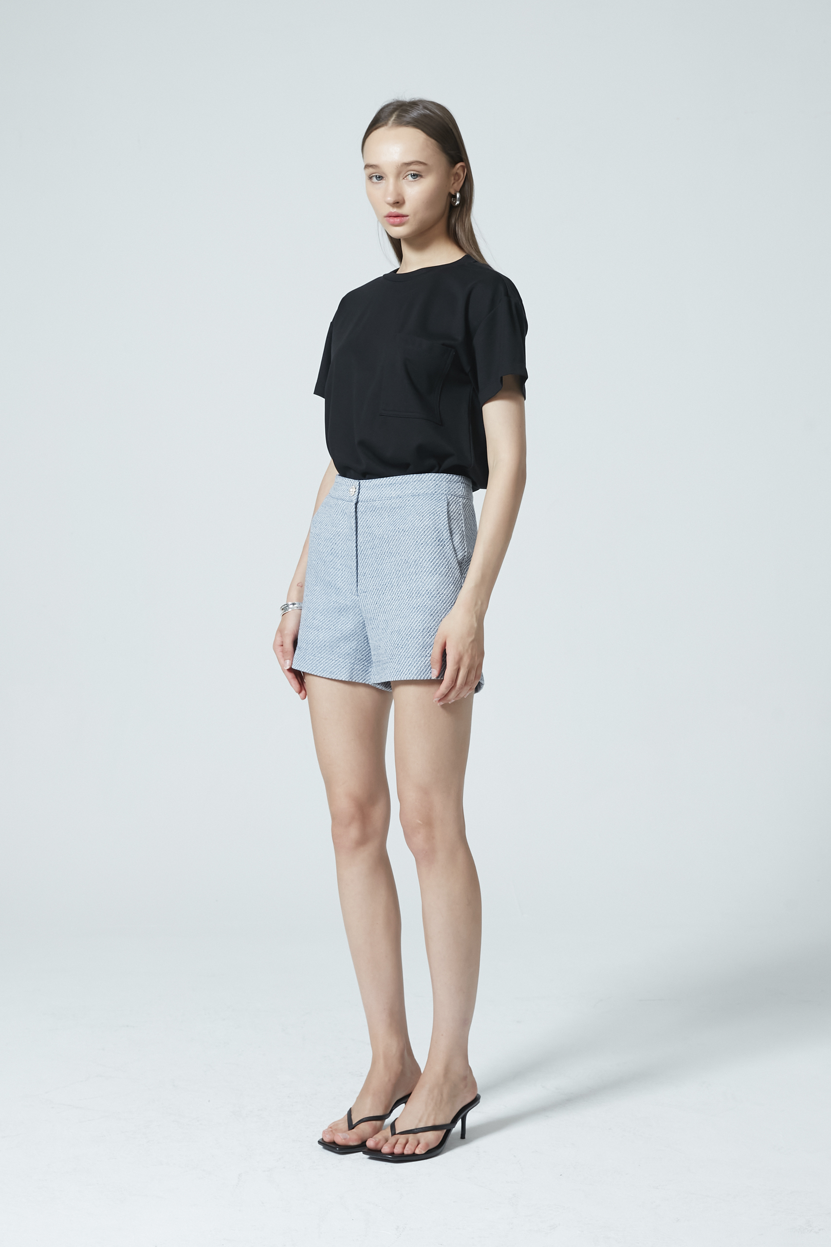 Timeless tweed in fresh Spring colours—these mid waist shorts feature side pockets for your daily necessities, an easy choice for casual days out. Pair with its matching crop top for a chic all-tweed look.
