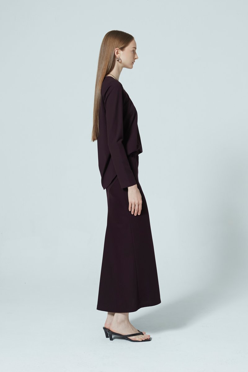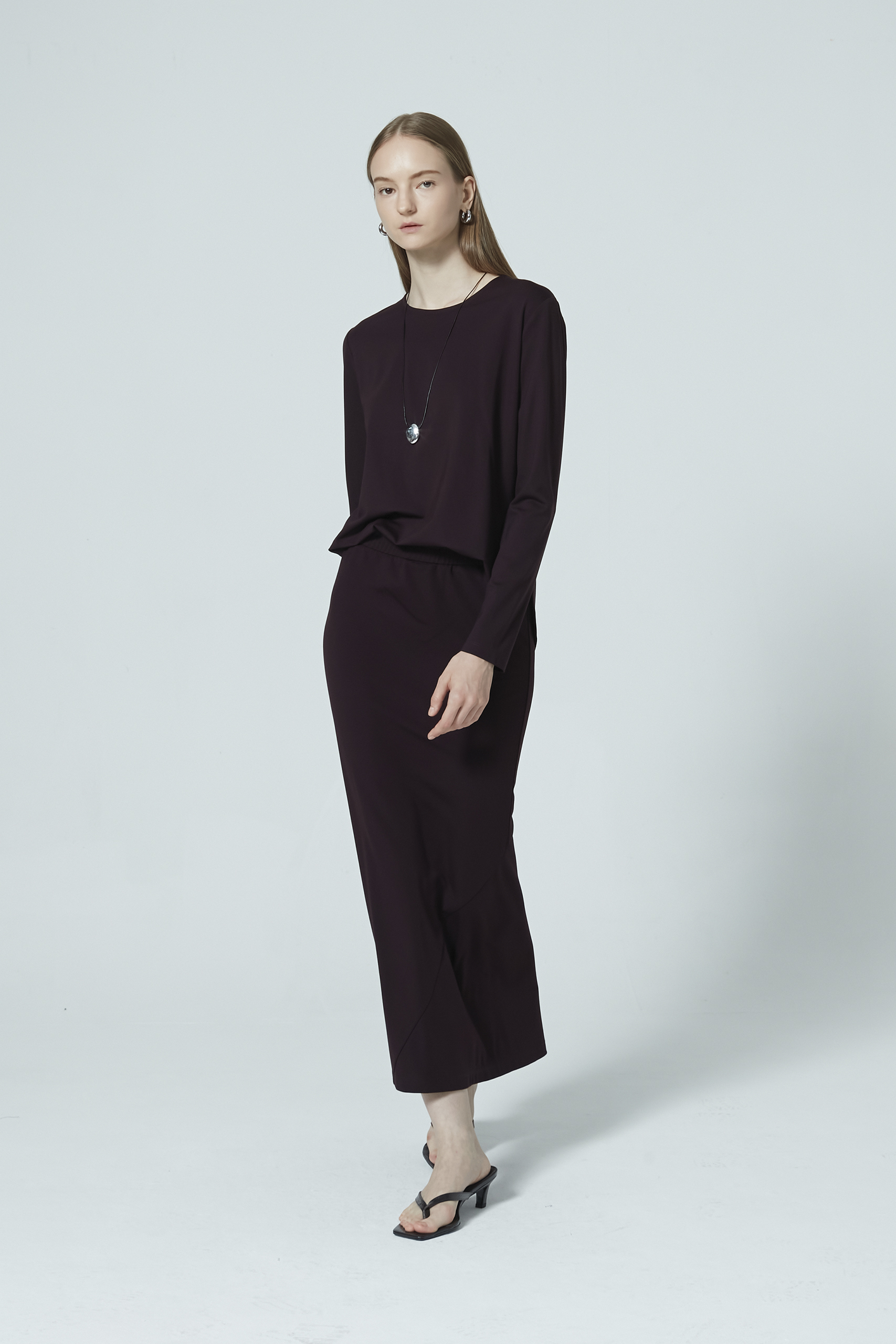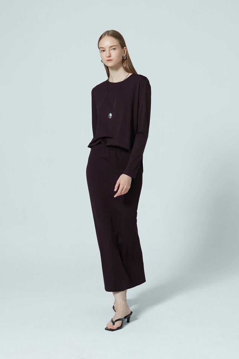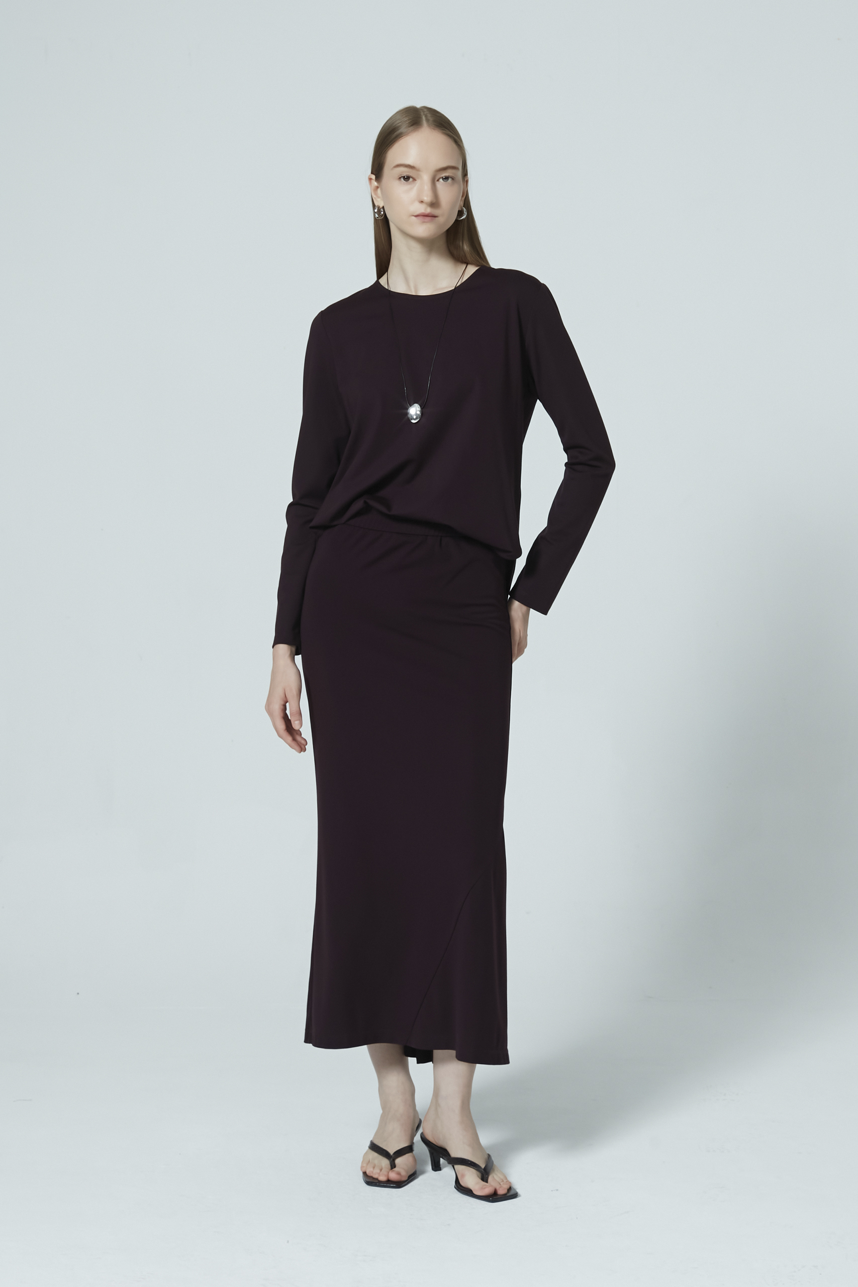 This skirt features a fit-and-flare fishtail silhouette, flattering for any body type. Fitted with an elasticated waistband—effortlessly comfortable all day long. Made from a soft jersey fabric that moves with you. Pair with a longer, relaxed top for a chic off-duty look.