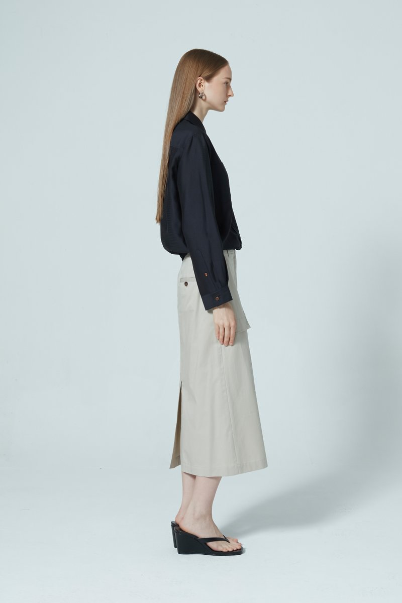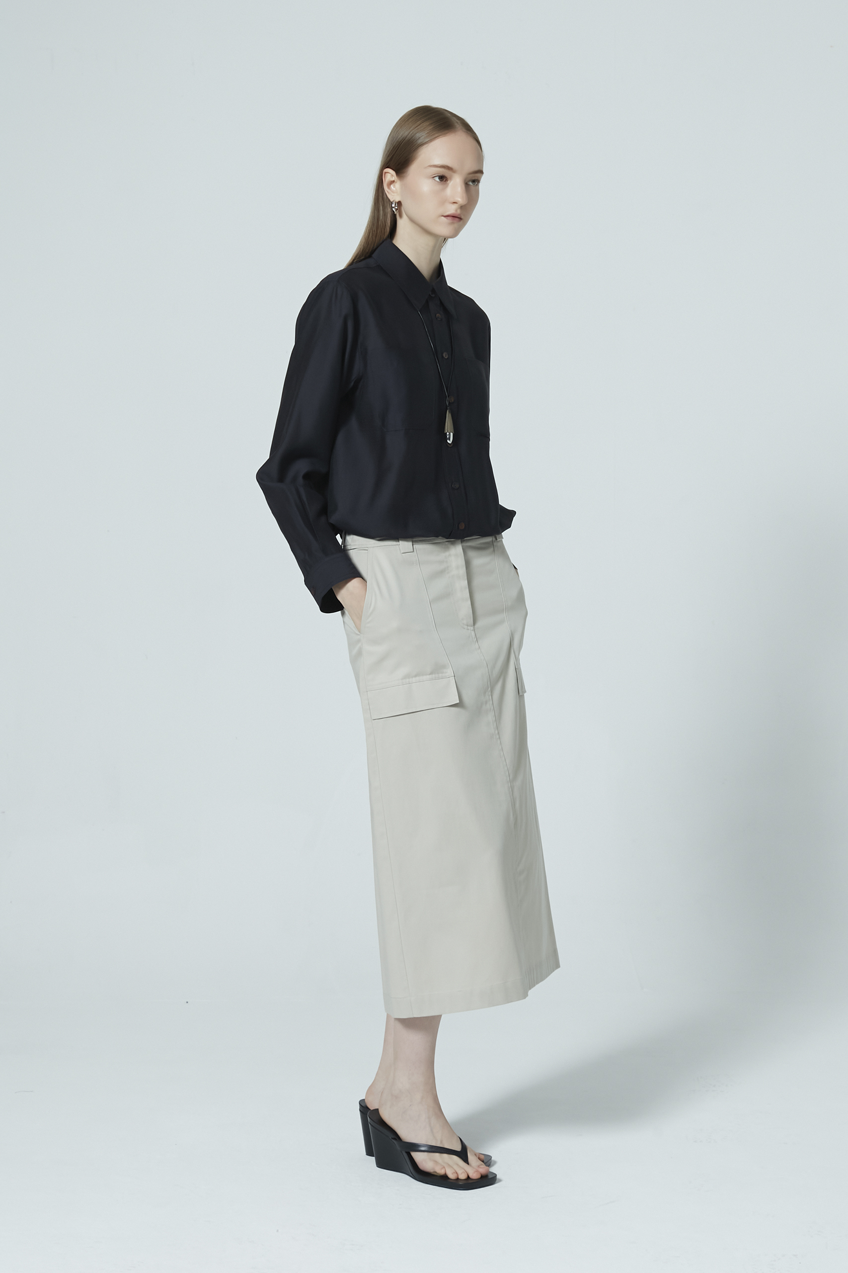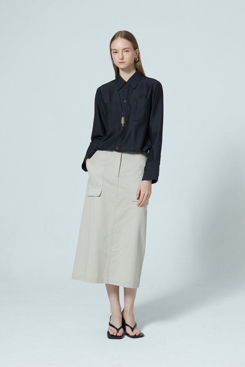 This skirt features patch pockets that add both function and style, while its clean lines and structured fit make it an easy piece to dress up or down. Pair with a basic boxy tee for a casual look or a tailored vest for a touch of smart casual.