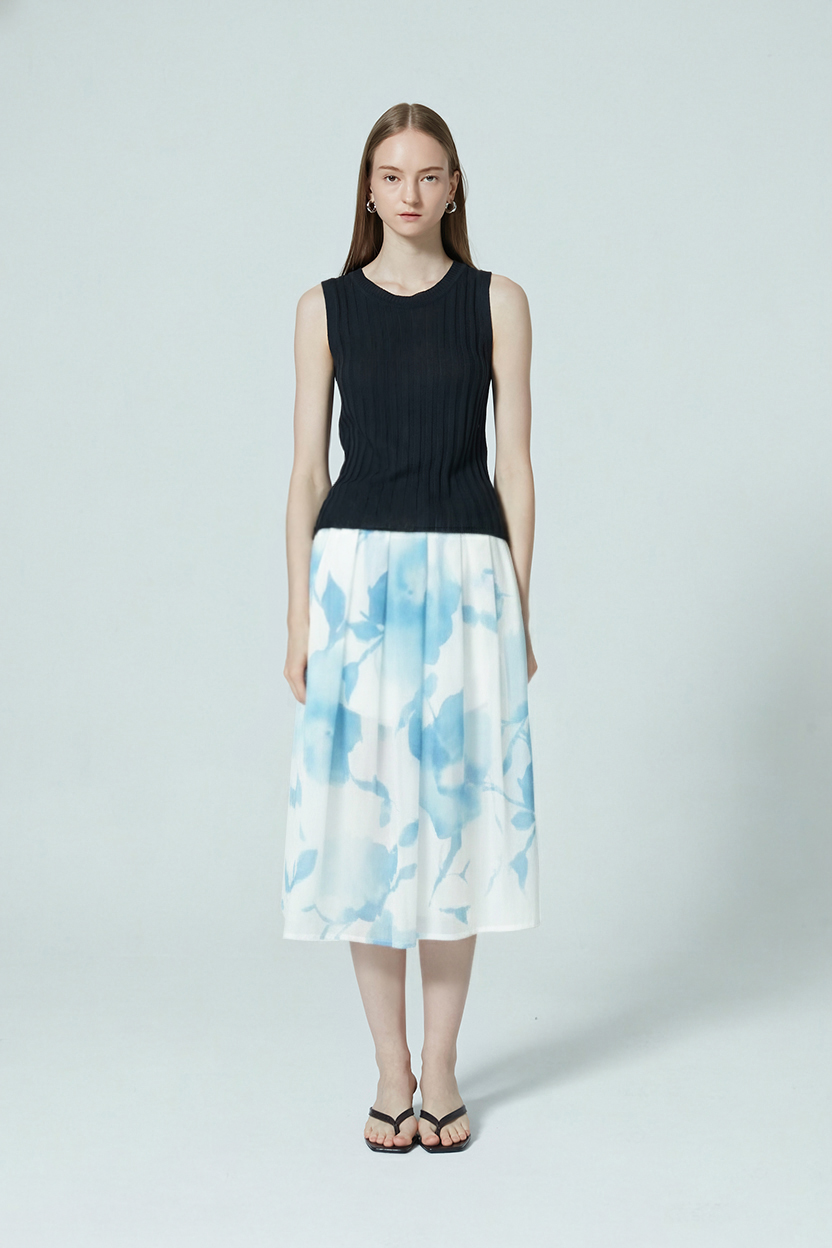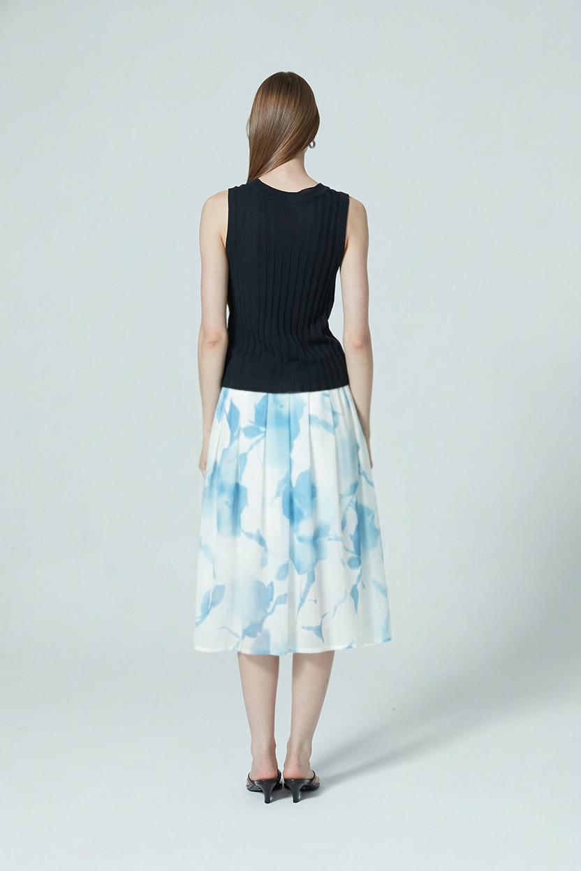 Capturing the ease of sunny days, this printed pleated skirt features a bright and airy blueprint on a soft, flowing fabric. Fully lined and cut at a midi length, it is the perfect choice for brunch with friends or a vacation getaway.