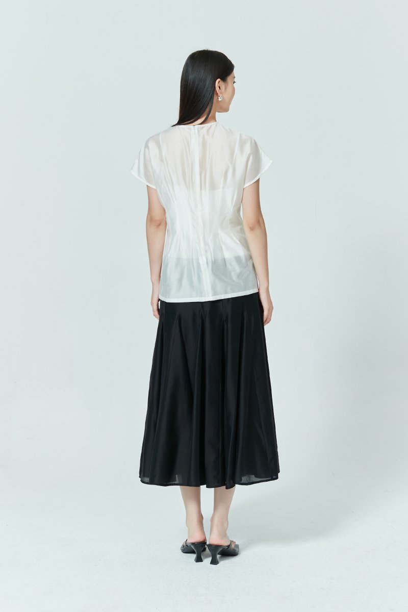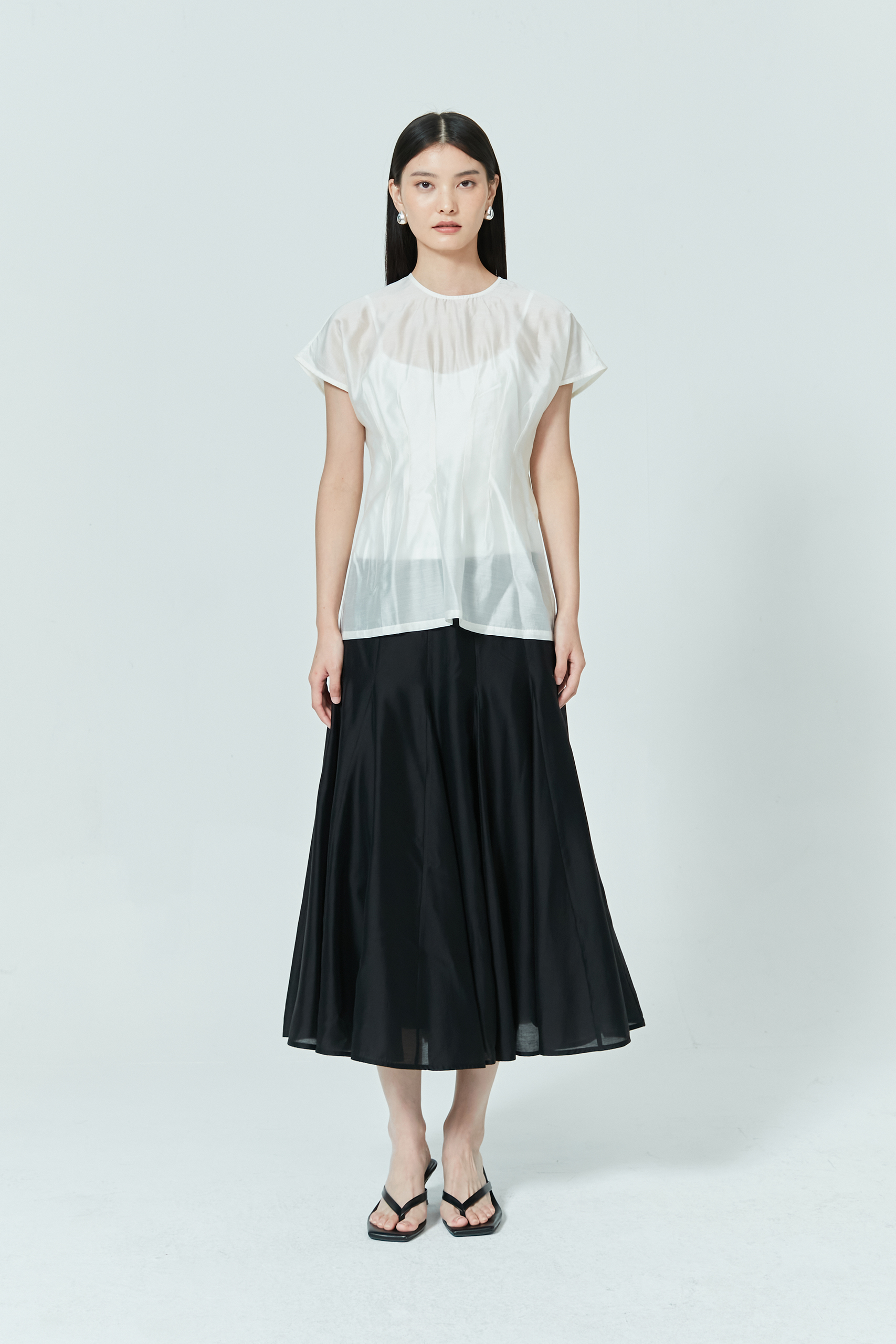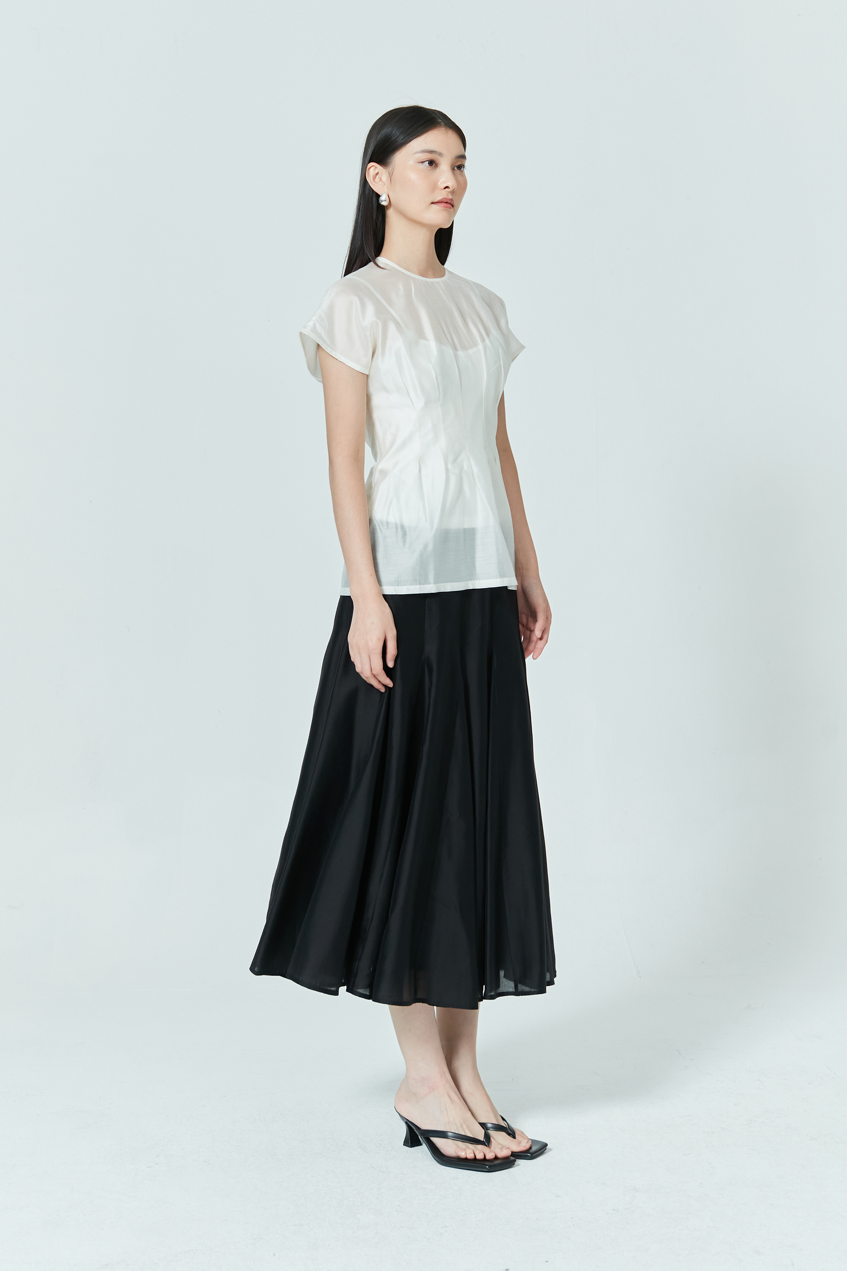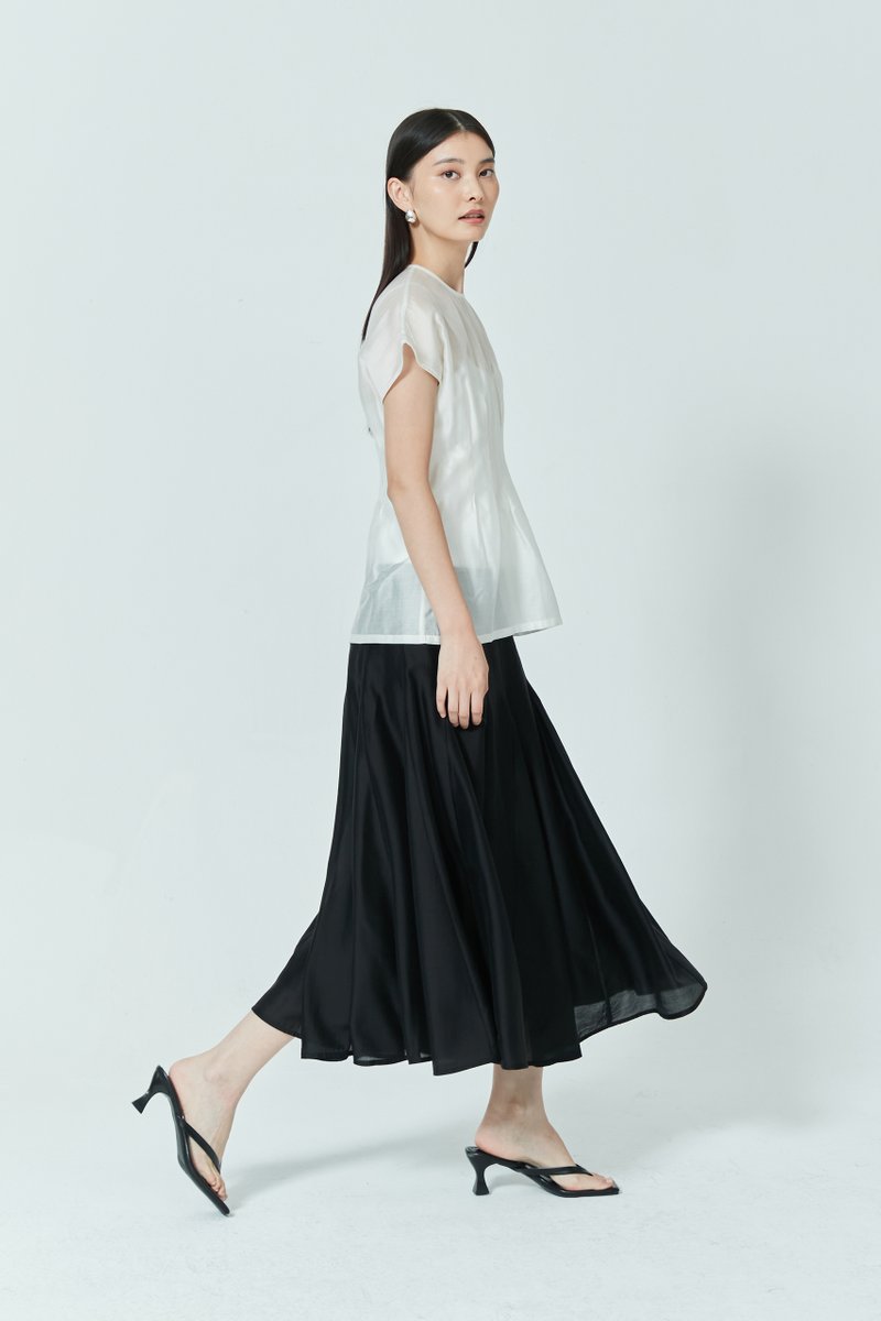 Soft, sheer and flowy—this panelled skirt is fully lined for comfort and ease, perfect for festive occasions and calmer days. Pair with its matching sheer shirt for a chic co-ord moment or style with fitted tops to showcase the skirt’s charm.