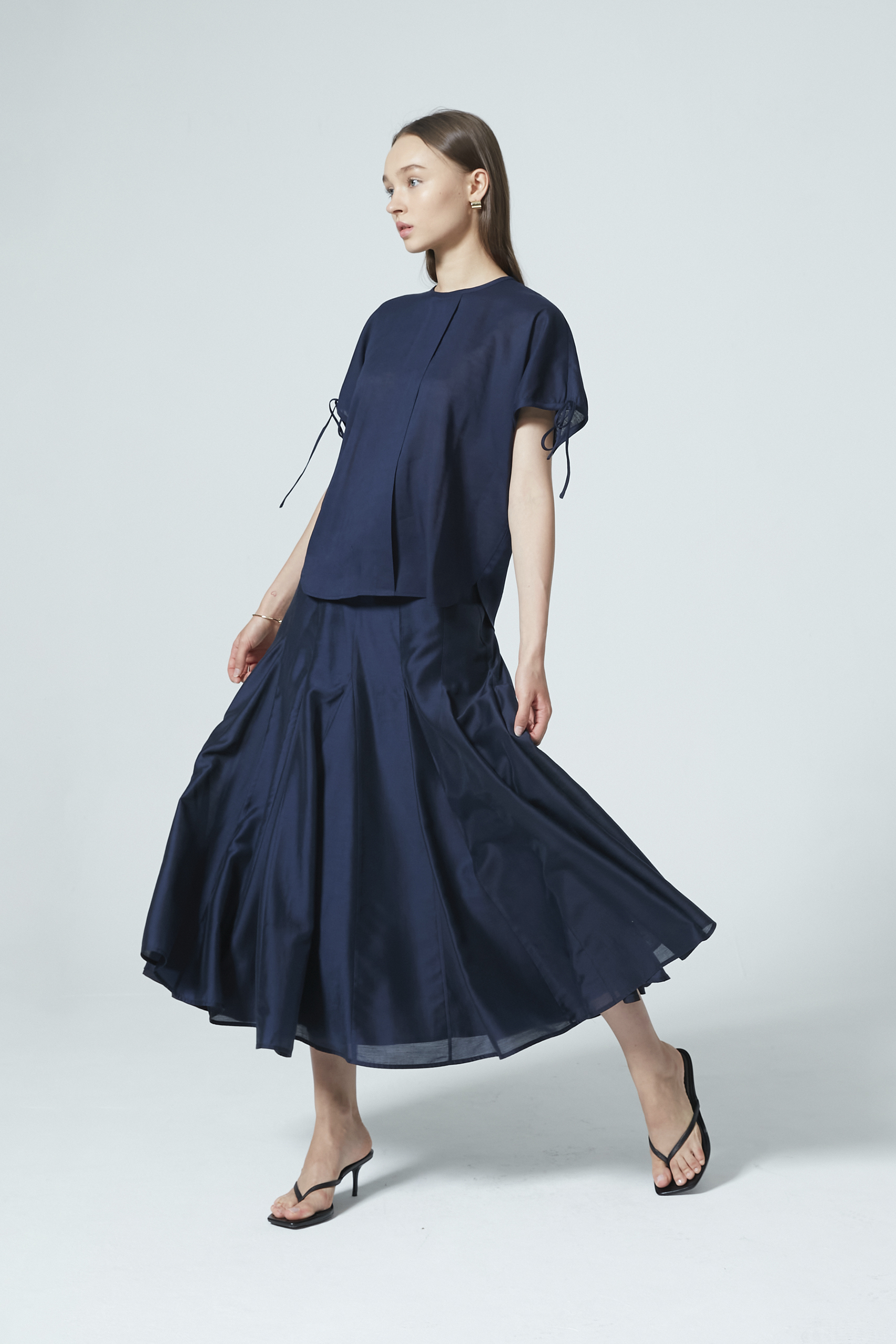 Flowy, light, and full of volume. This skirt features a midi cut and a tencel-cotton blend fabric with a slight sheen for that elevated look. Pair with fitted tops for a contrast in silhouette or a boxy top for a relaxed look.