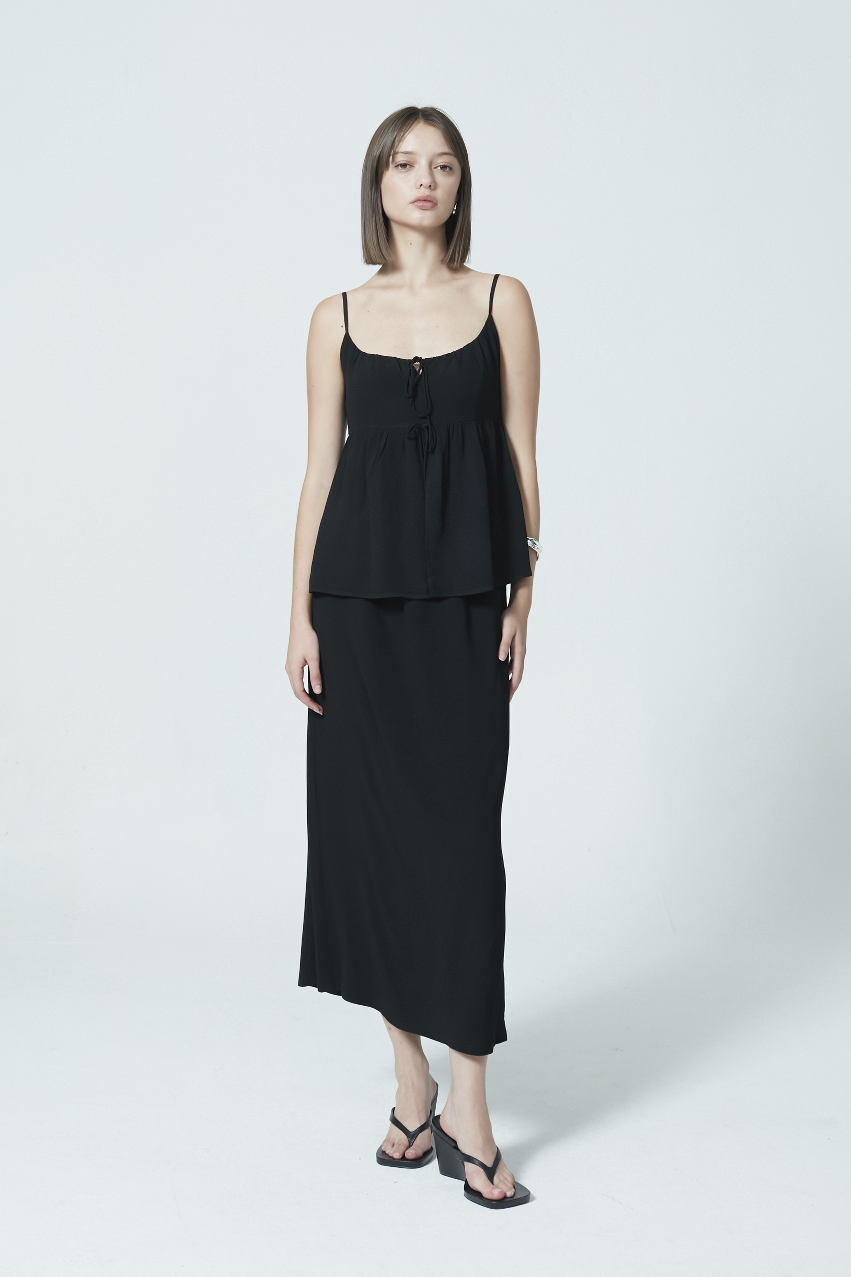 A refined take on an everyday classic, this fully lined midi skirt features a clean silhouette accented with a subtle tie detail at the side. Designed for versatility and made with fabric from Europe, it pairs effortlessly with both fitted and relaxed tops.