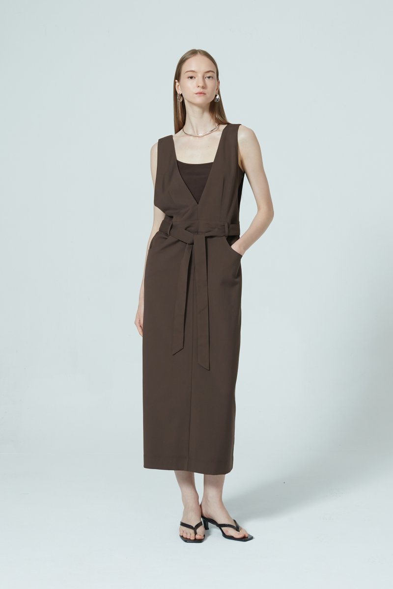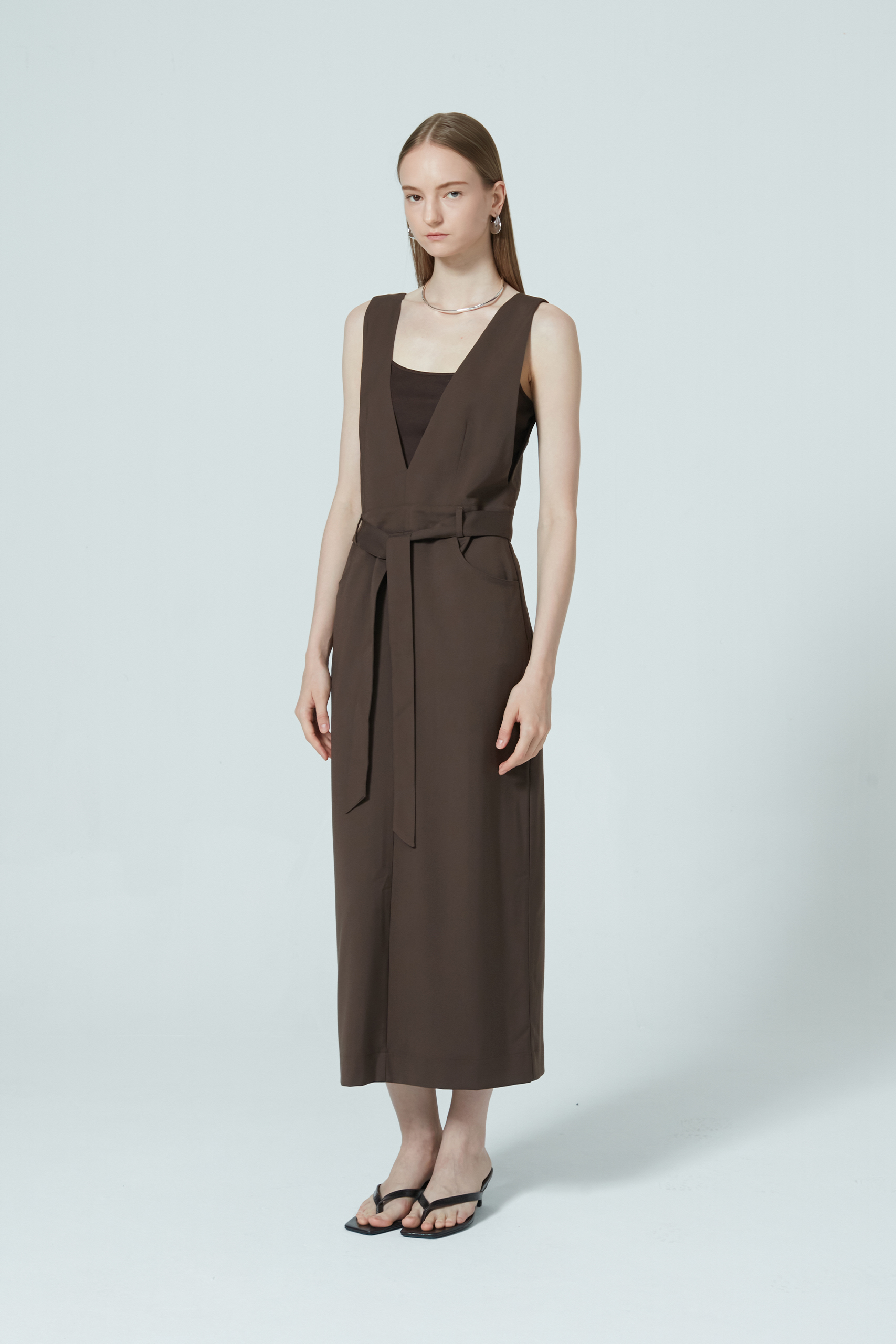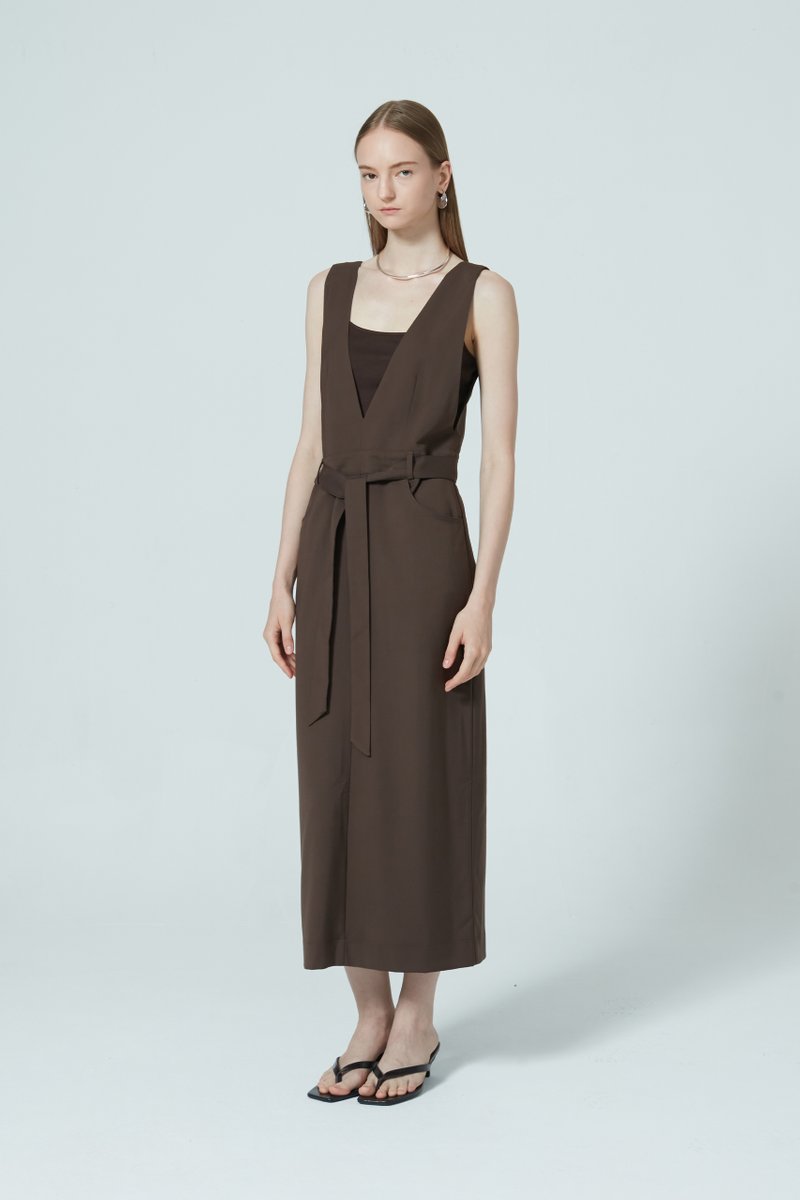 This v-neckline dress adds a unique touch to your wardrobe. Accompanied by a belt and inner top, it ensures ease and comfort all day long. Dress it up with a tailored blazer or keep it simple as is for a casual look.