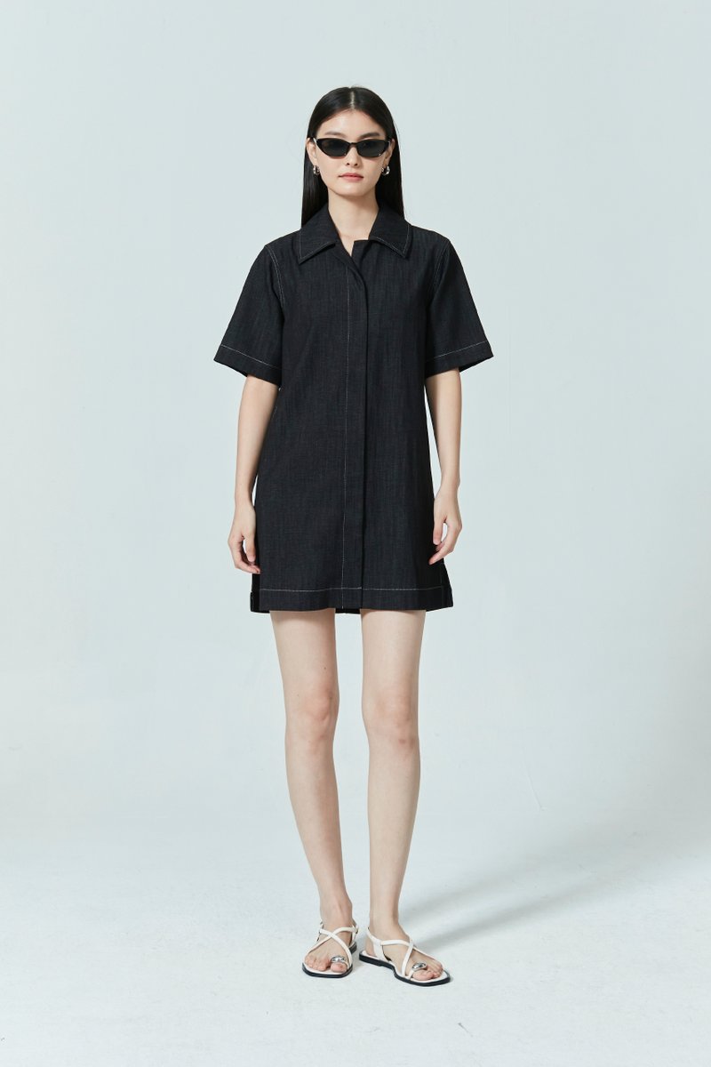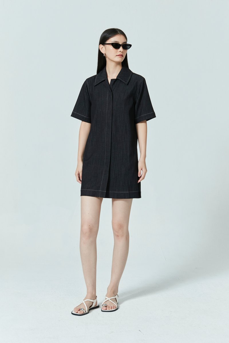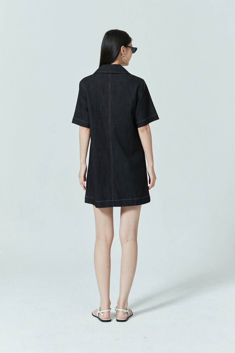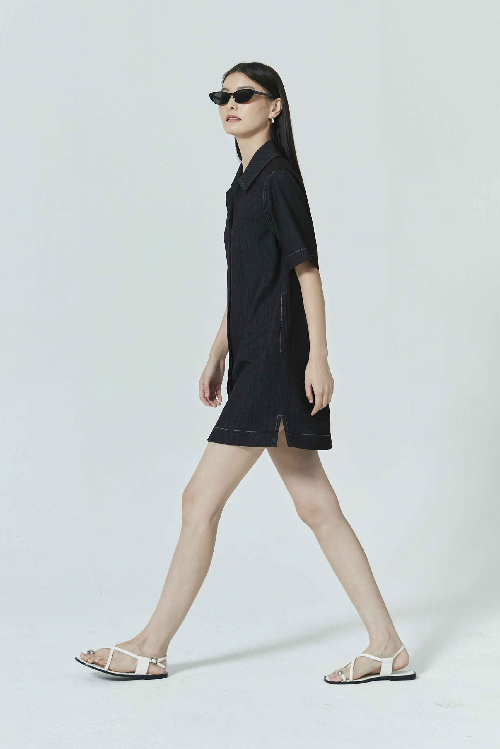 Crafted in stretch denim, this sleeveless midi dress offers a refined take on an everyday classic. Easy to style up or down, it’s a timeless staple you’ll reach for season after season.