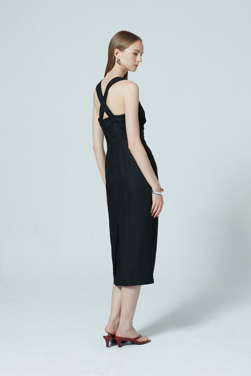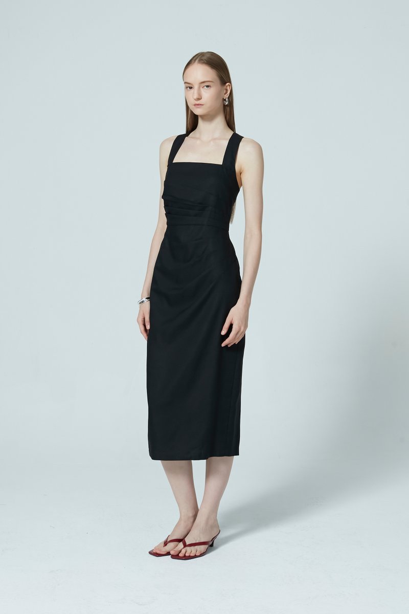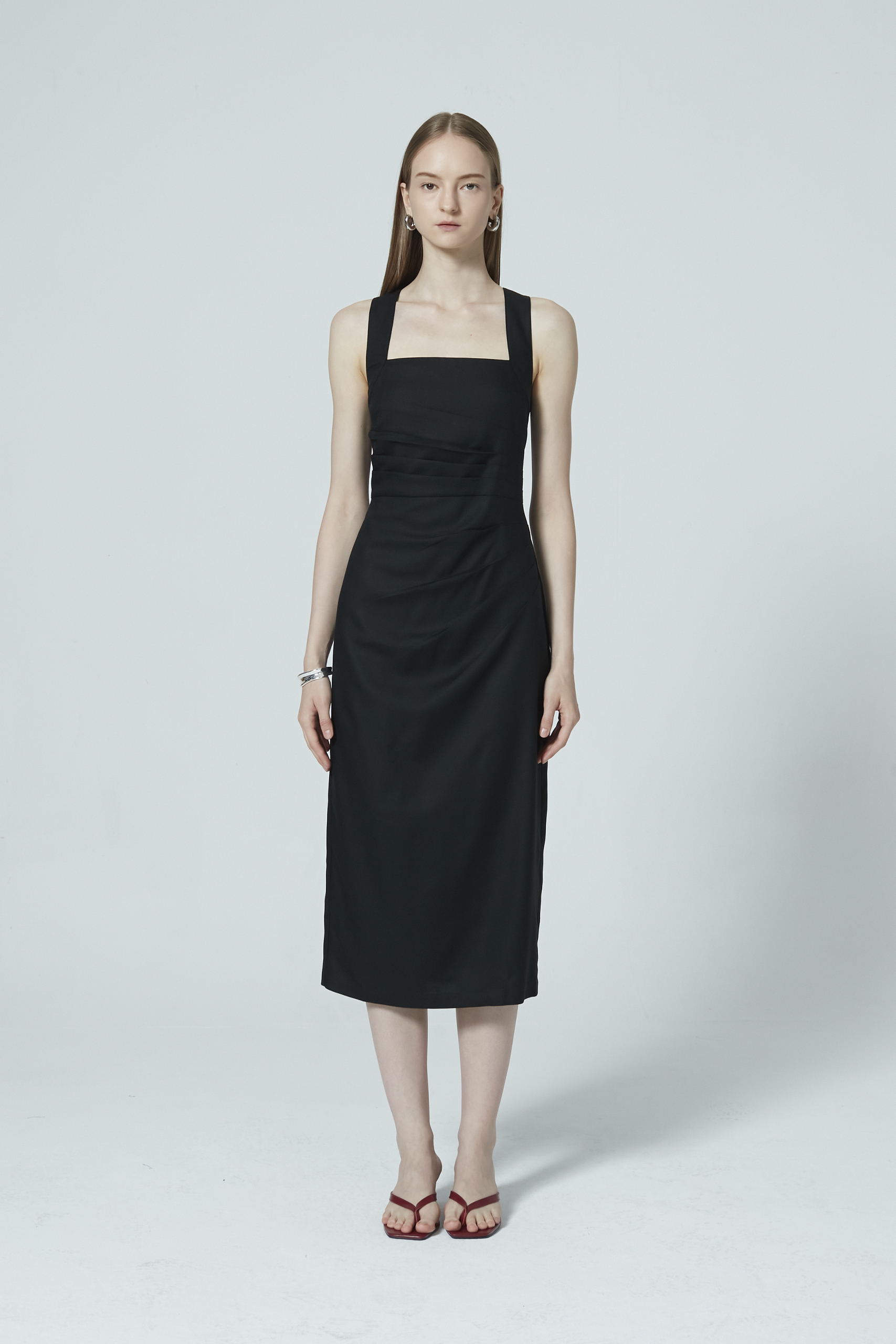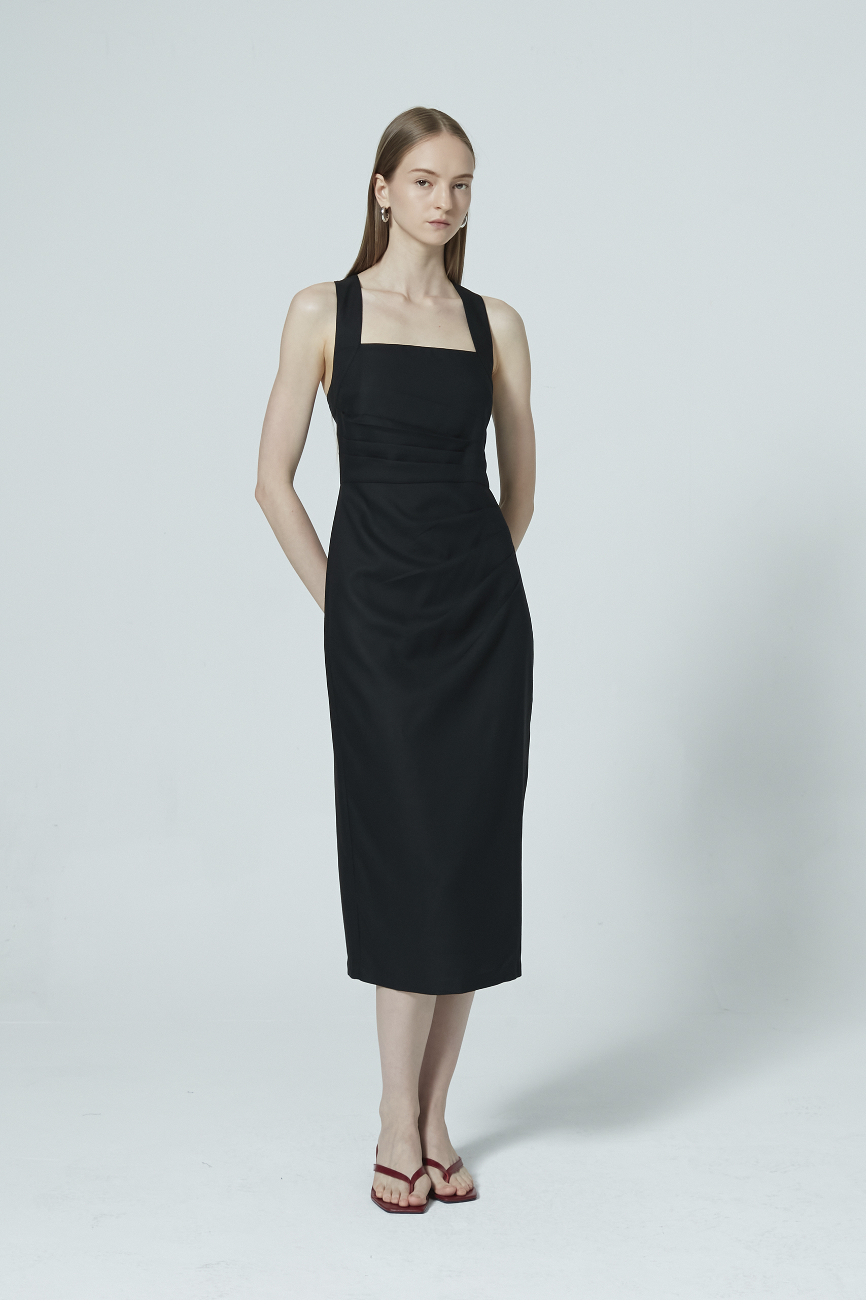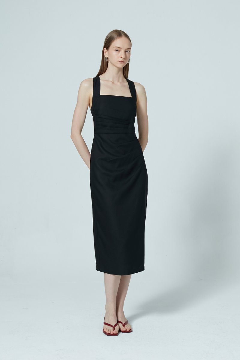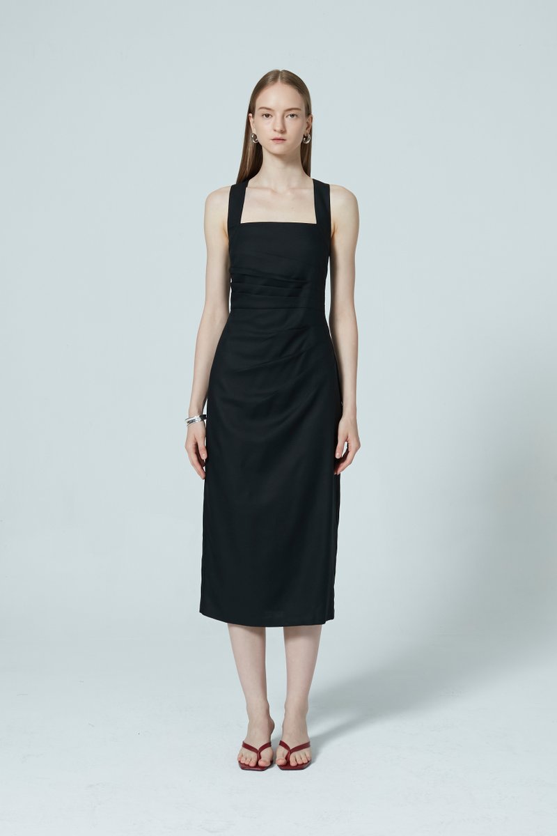 One of our bestsellers, reimagined. This Cross Back Dress features flattering pleated details and ends at a midi length. Perfect for date nights and casual events, the fully-lined dress sculpts the body while being effortlessly chic.
