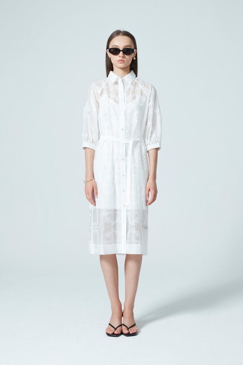 LIORA EMBROIDERY DRESS WITH BELT
