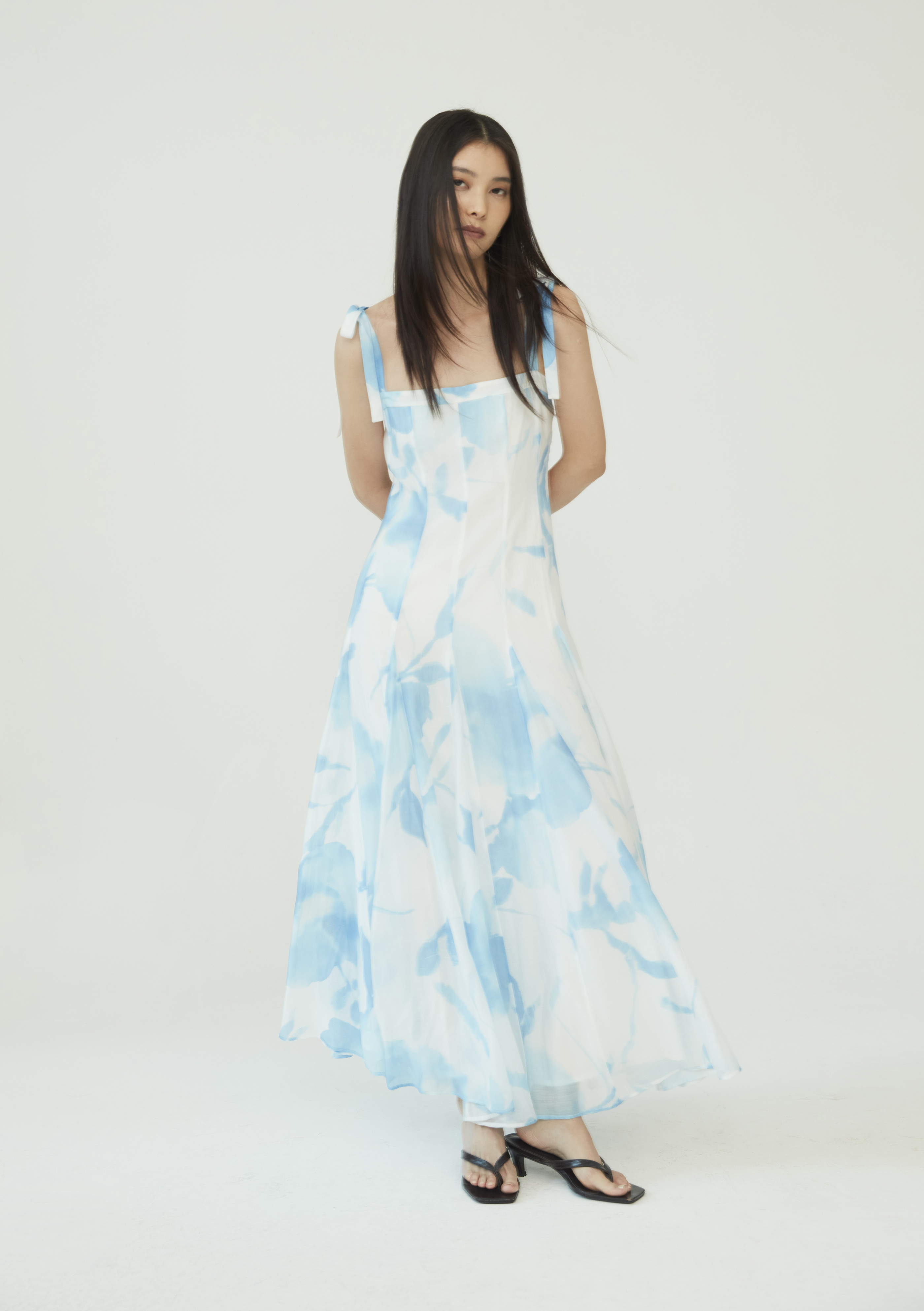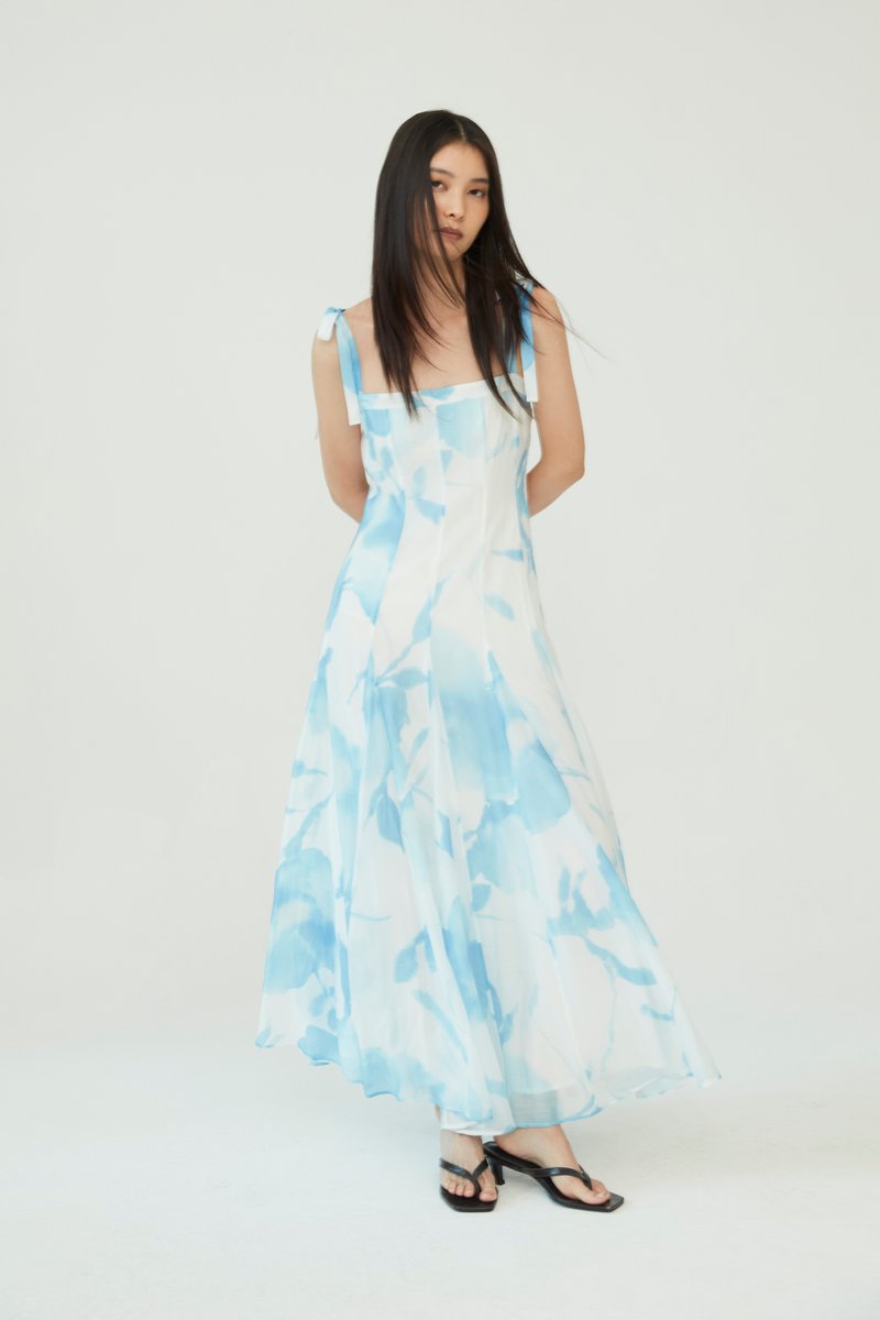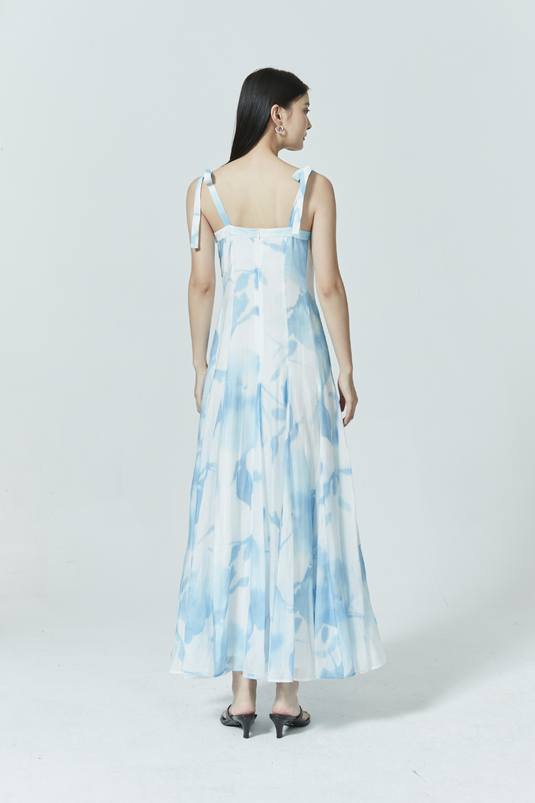 Reminiscent of blue skies and sunny days, this paneled dress features a soft, flowing silhouette that moves with you. Self-tie straps add a touch of femininity and adjustability, suiting your preferences. Fully lined for comfort and ease.