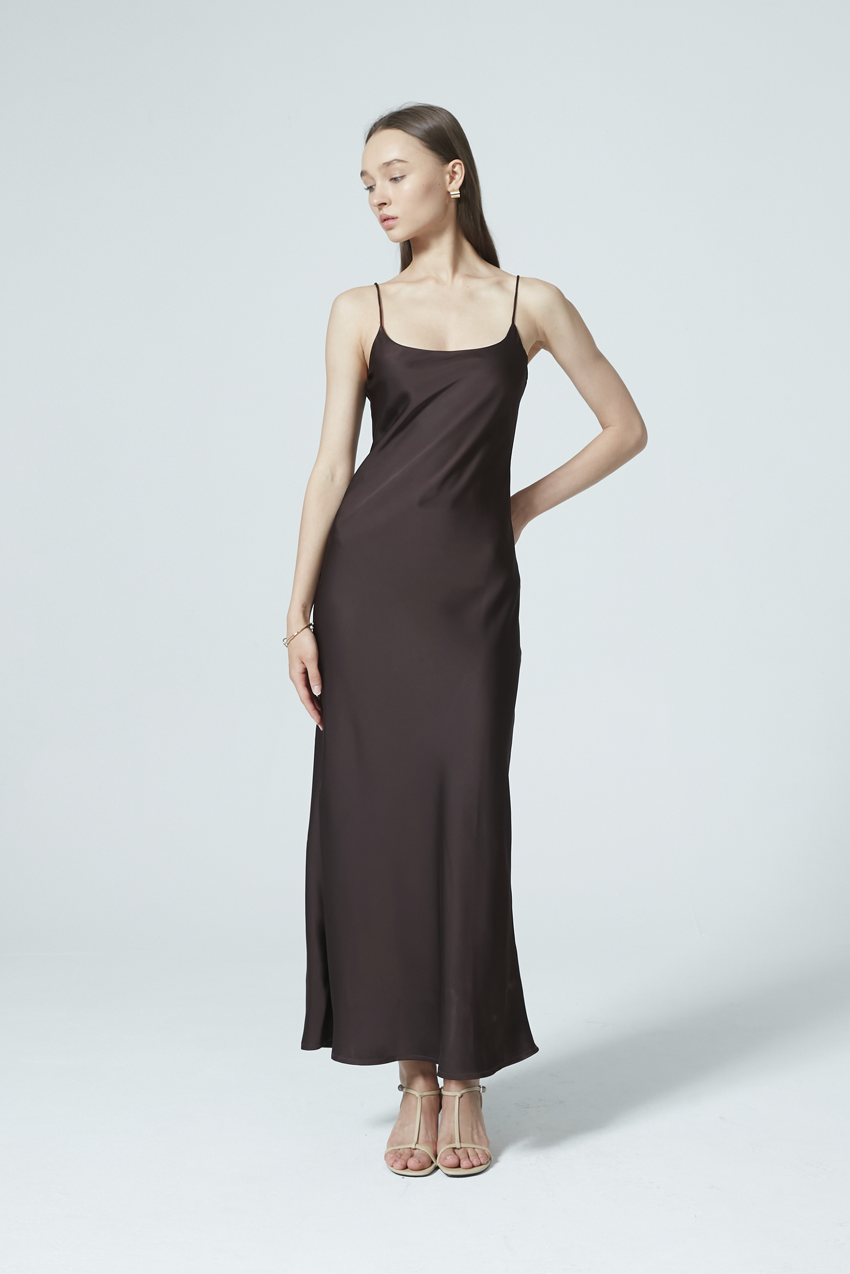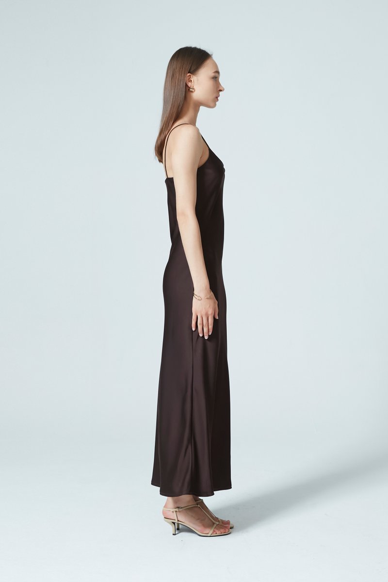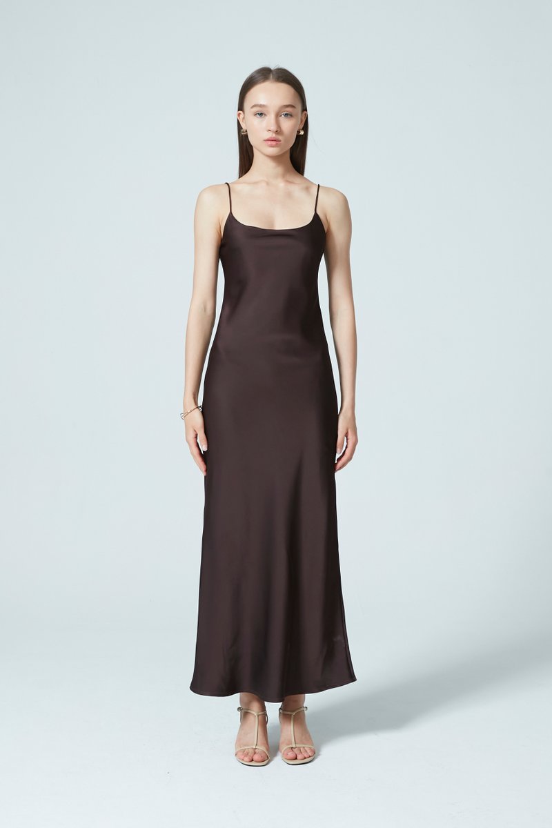 Sleek, classic, and timeless—this satin dress is the epitome of elegance. Cut at a flattering maxi length and a relaxed silhouette, the dress drapes beautifully with a fluid, graceful finish.