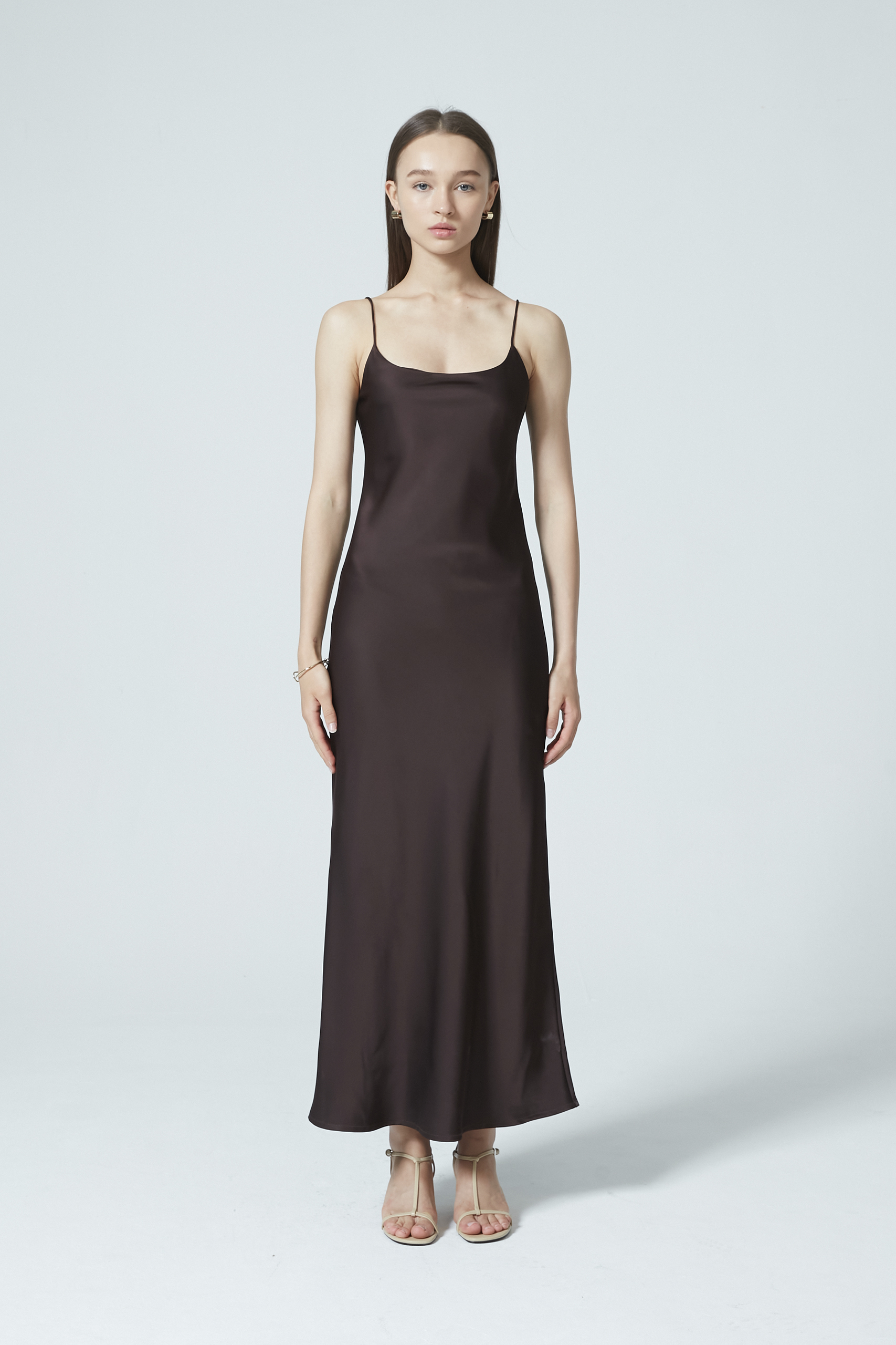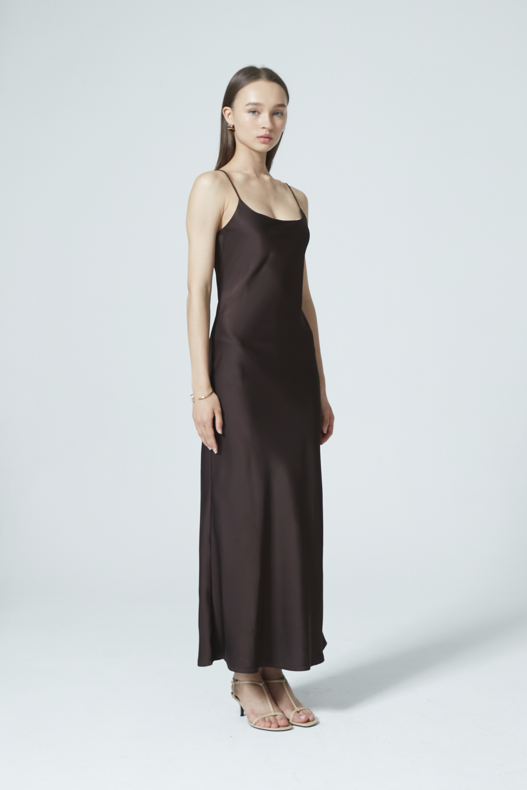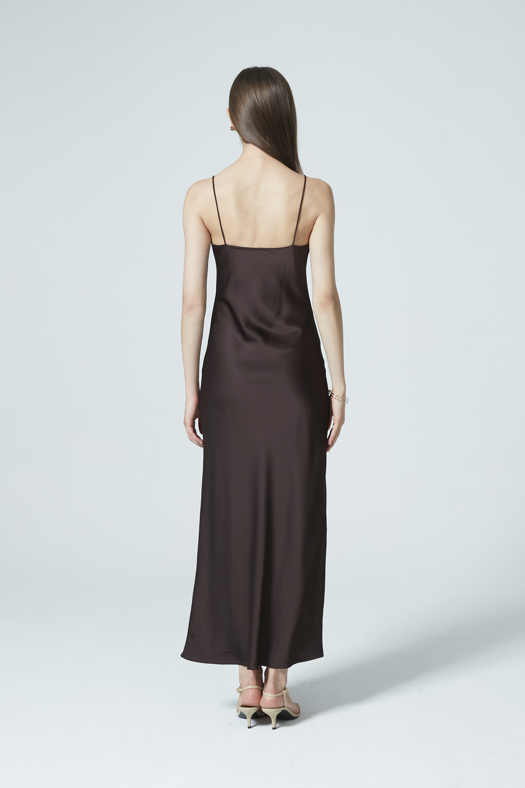 Sleek, classic, and timeless—this satin dress is the epitome of elegance. Cut at a flattering maxi length and a relaxed silhouette, the dress drapes beautifully with a fluid, graceful finish.