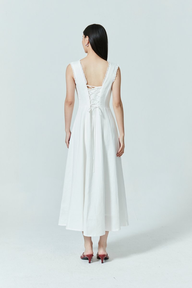 Designed in a fit-and-flare cut, this linen blend dress softly enhances the silhouette. Fully lined for comfort and ease, it is the perfect casual addition to your everyday rotation. A corset-like back helps to adjust the waist, making for a comfortable yet cinched fit.