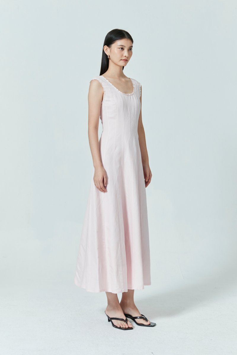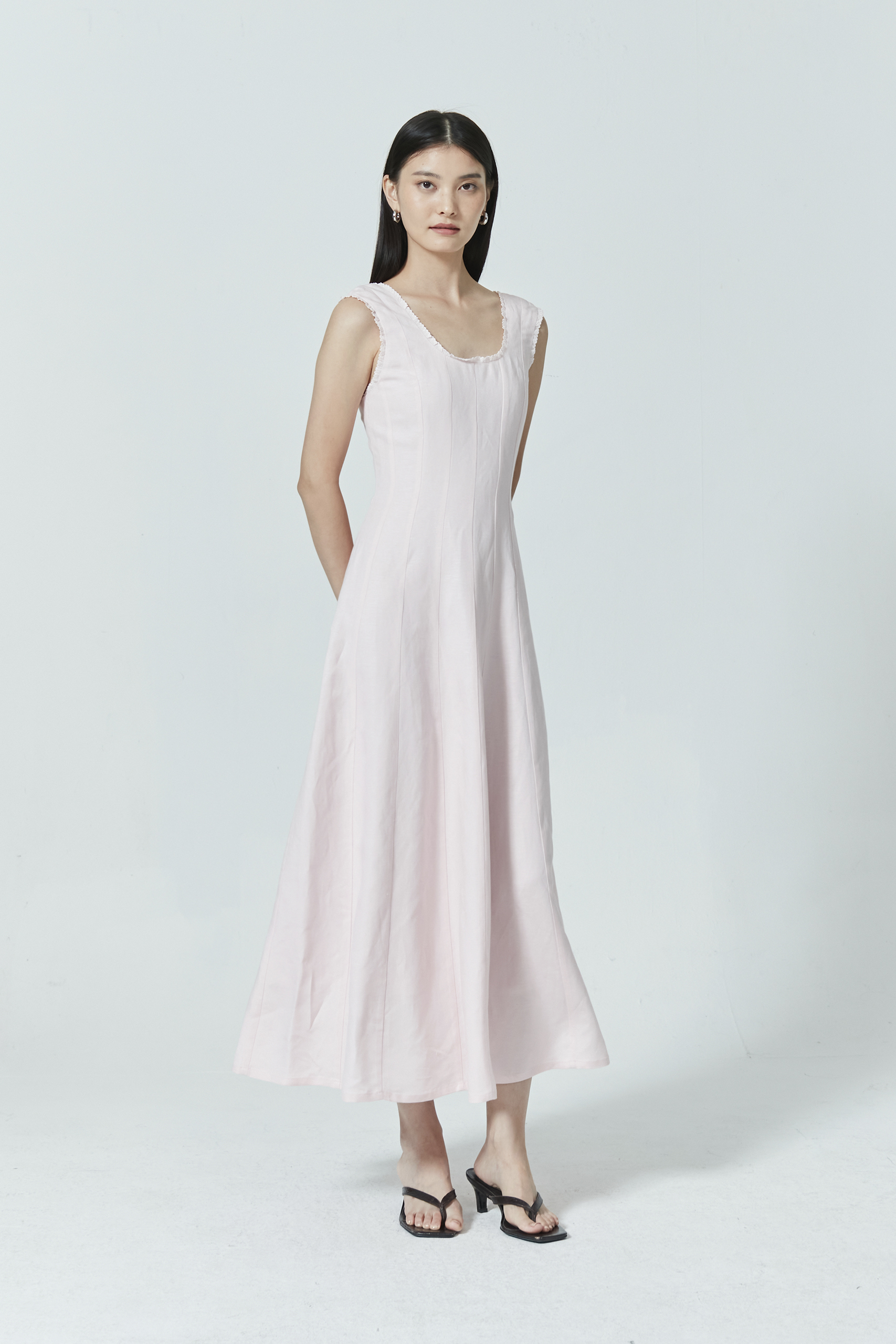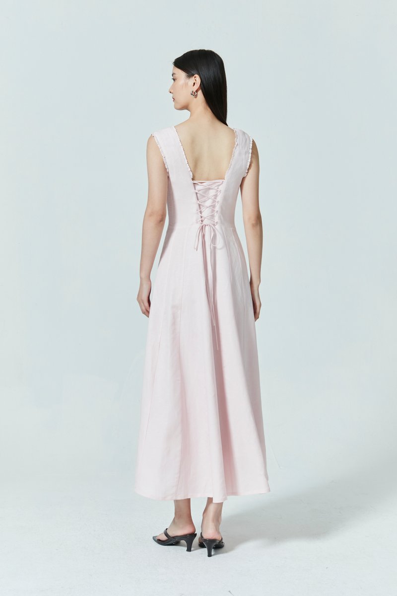 Designed in a fit-and-flare cut, this linen blend dress softly enhances the silhouette. Fully lined for comfort and ease, it is the perfect casual addition to your everyday rotation. A corset-like back helps to adjust the waist, making for a comfortable yet cinched fit.