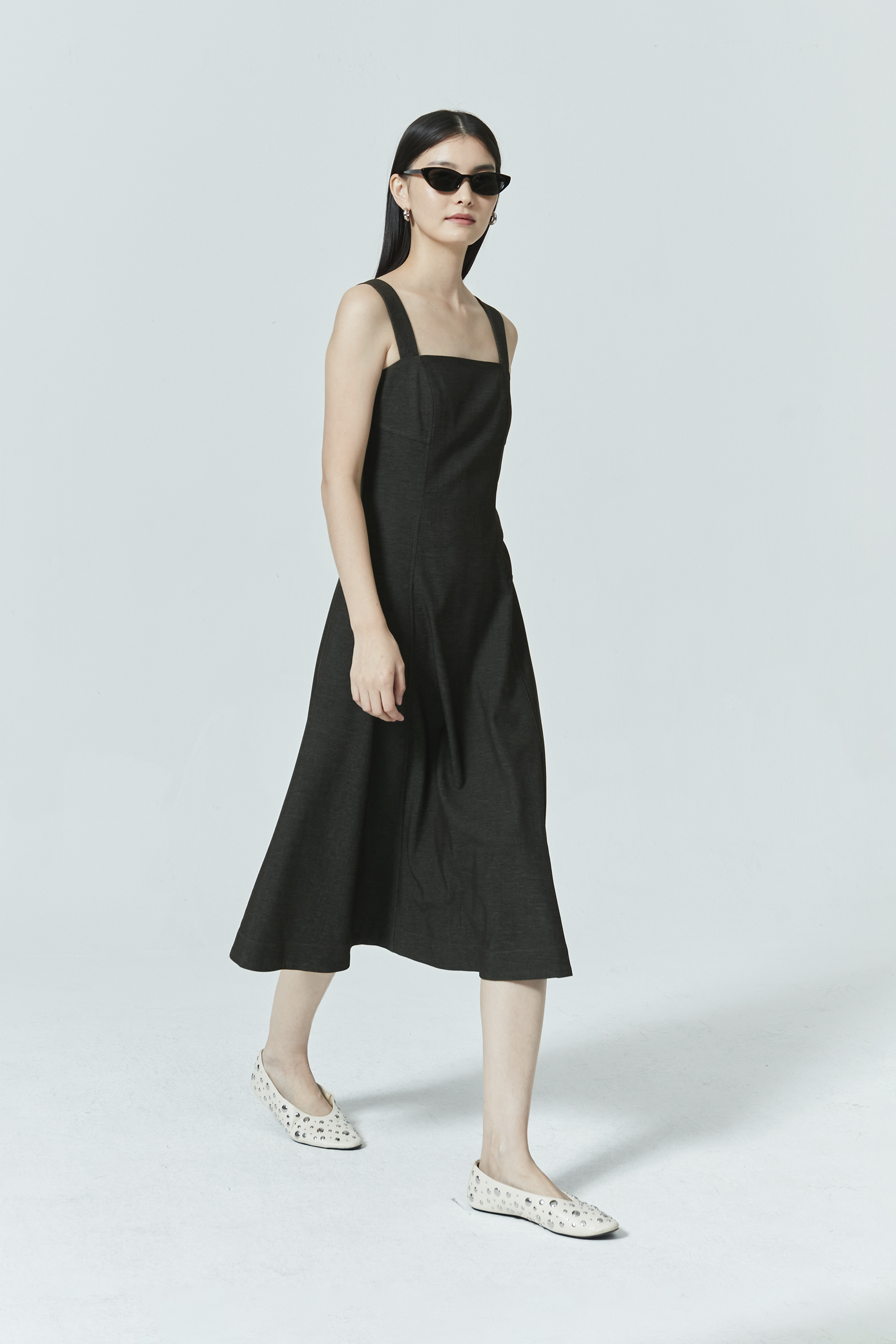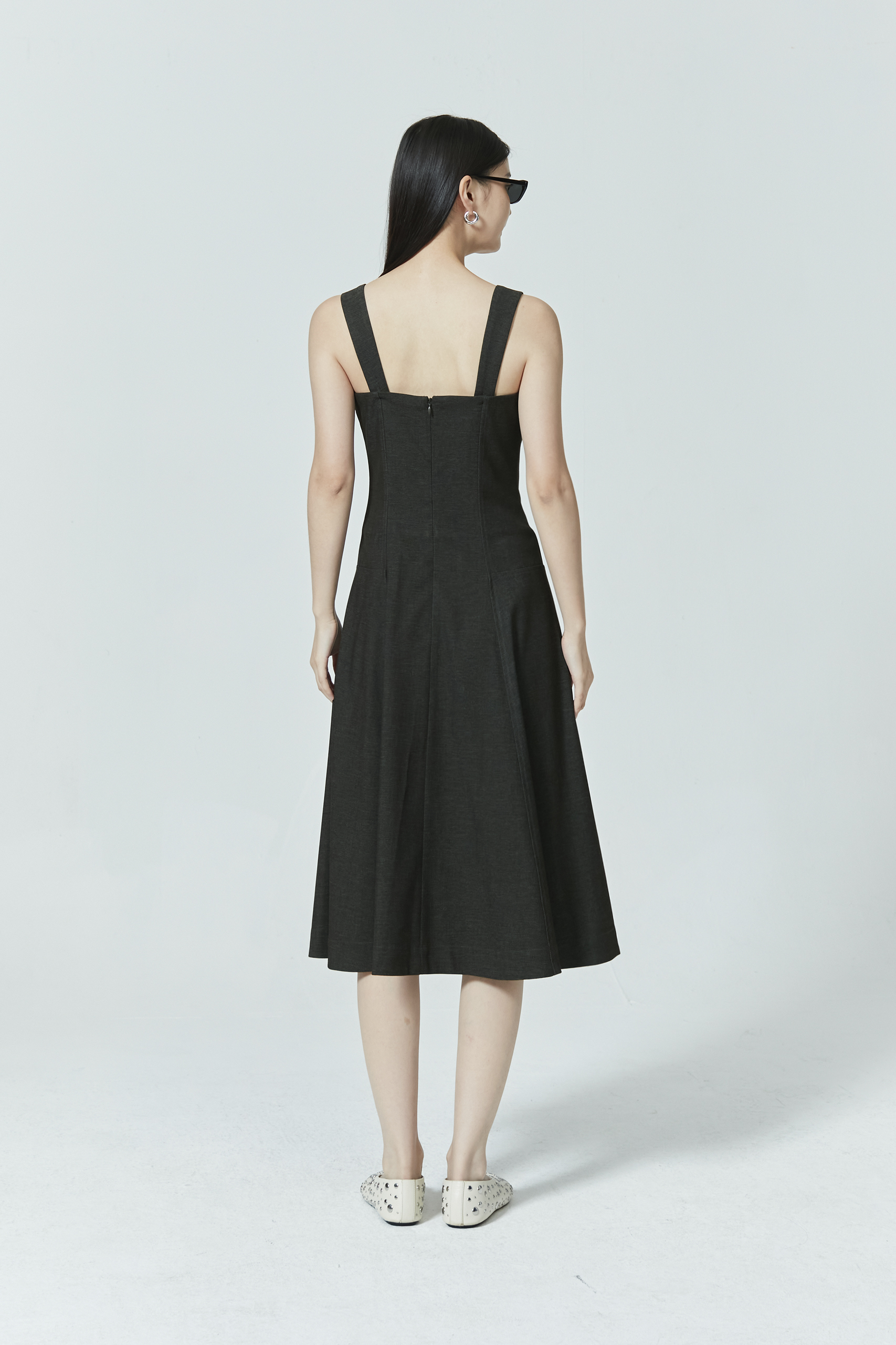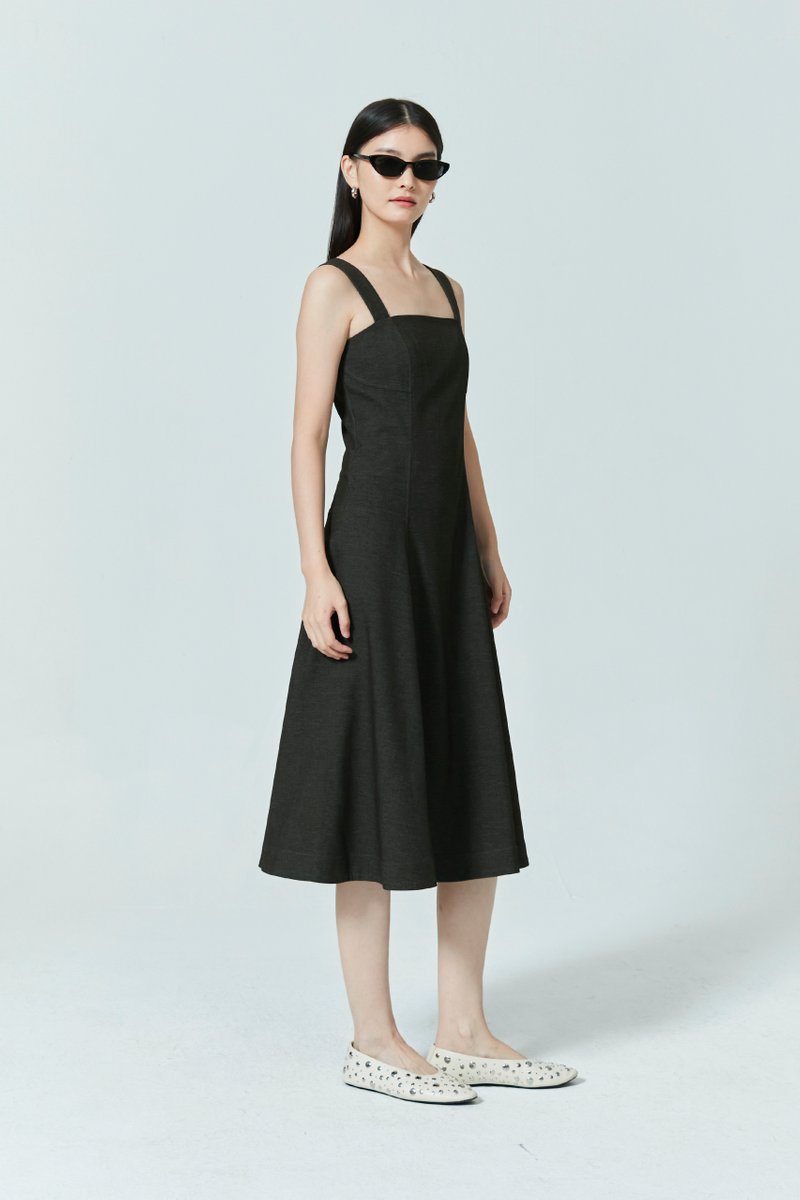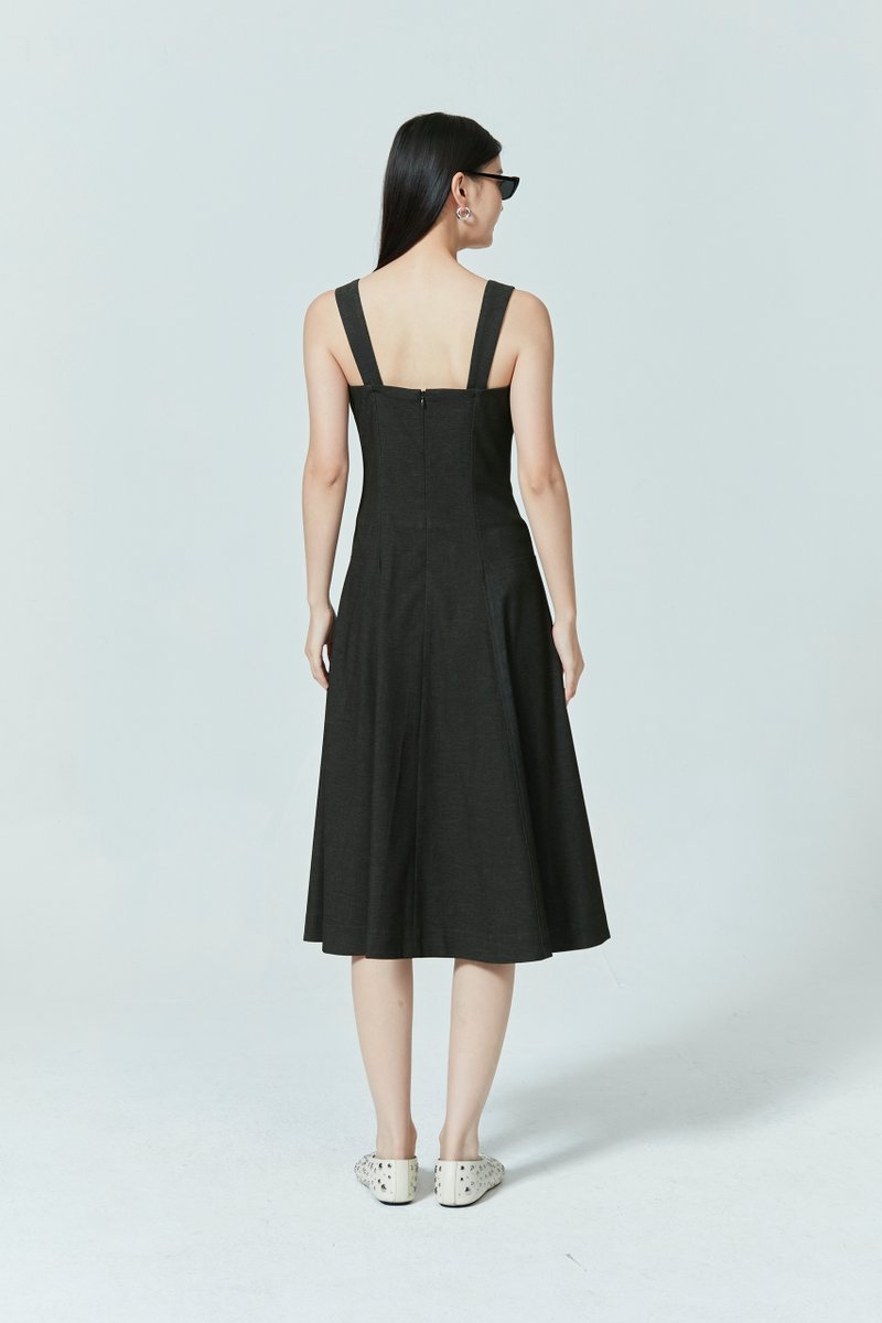 SLEEVELESS DENIM MIDI DRESS