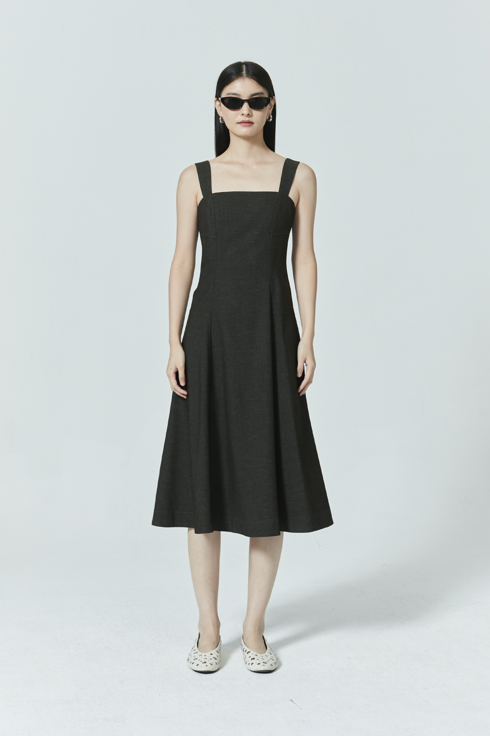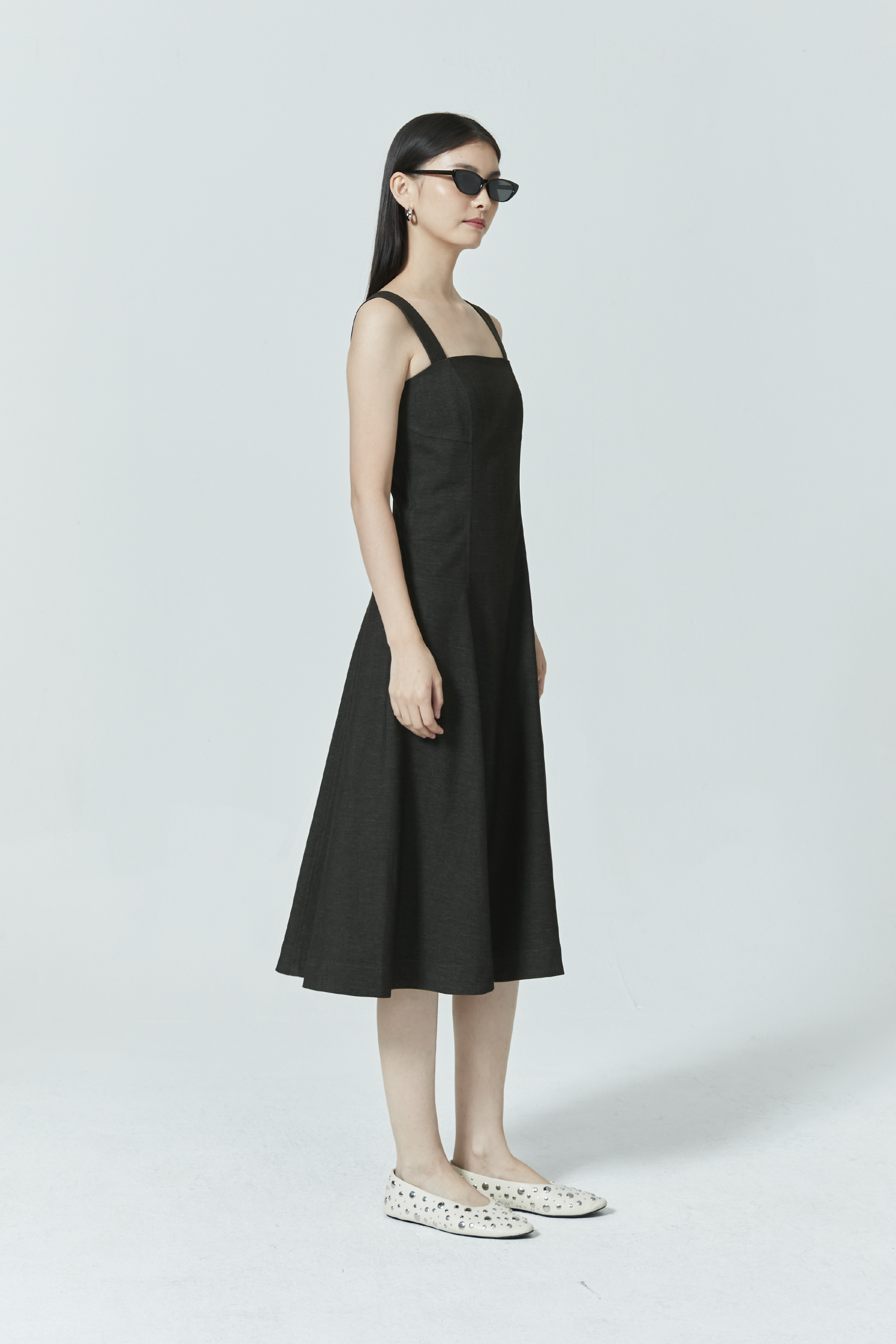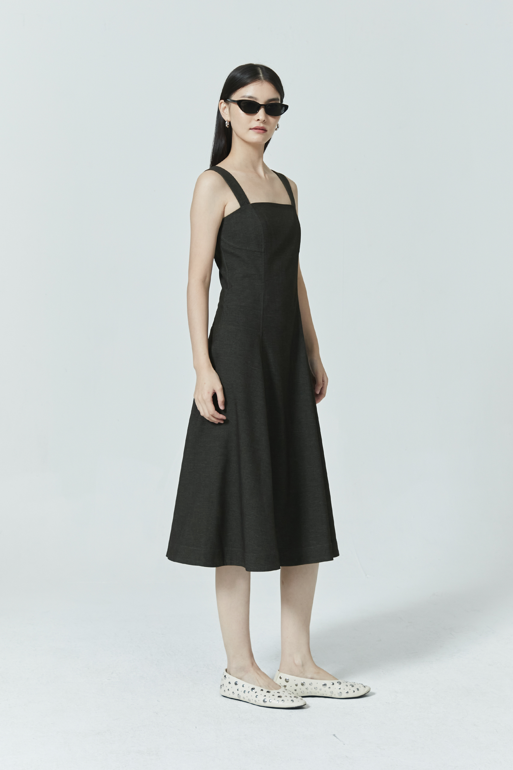SLEEVELESS DENIM MIDI DRESS