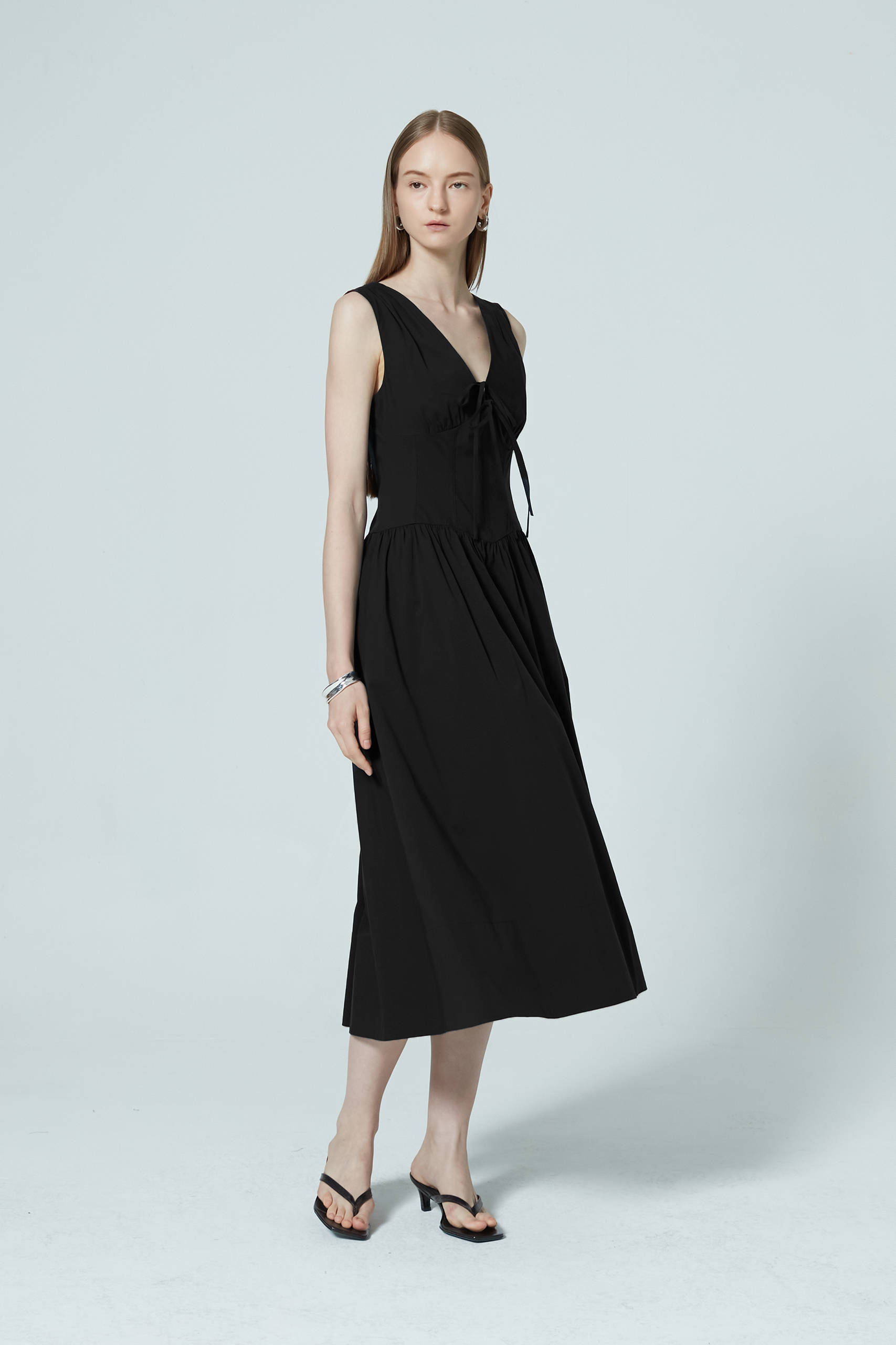 V-NECK CORSET MIDI DRESS