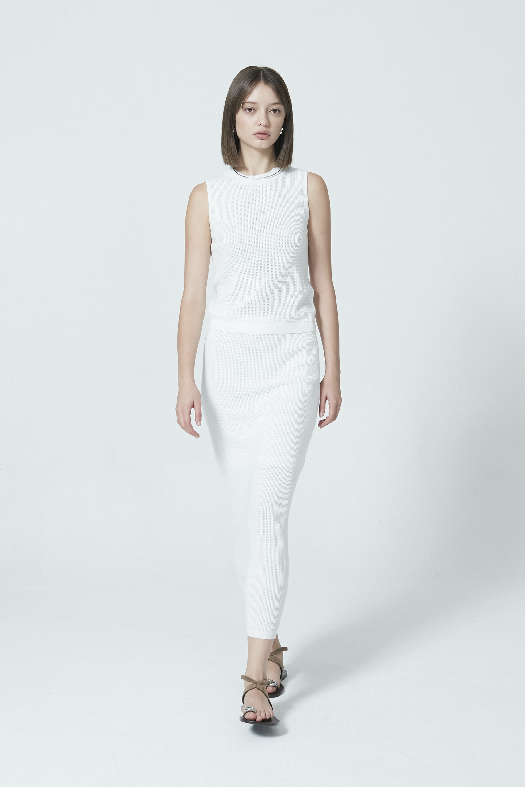 Designed in a textured waffle knit, this skirt offers laid-back polish with subtle stretch. Fully lined for comfort and ease, it’s a versatile piece you can dress up or down, pairing effortlessly with knits, shirts, or relaxed tees