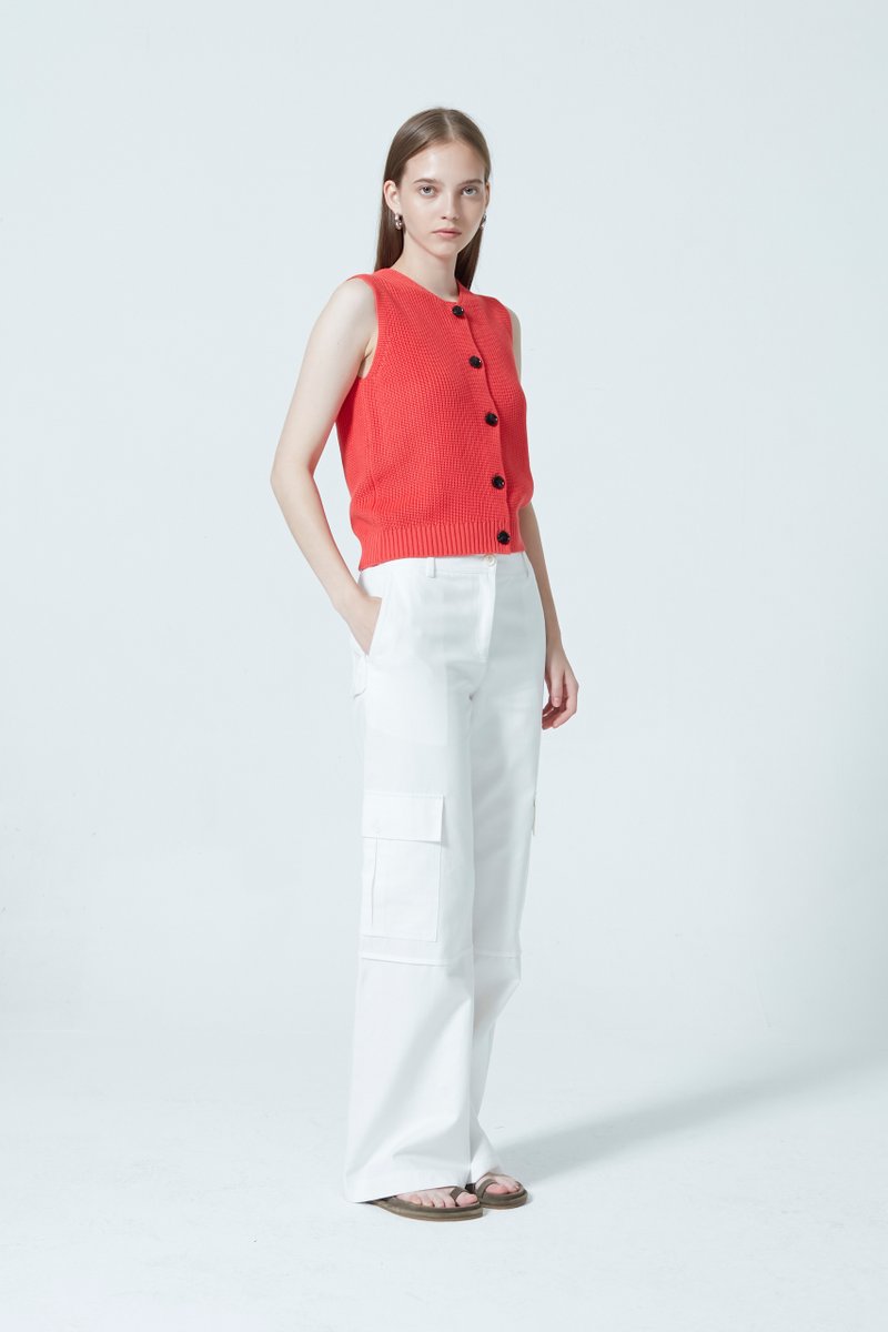 A modern layering essential crafted in a soft knit. Designed with a relaxed silhouette, this vest adds effortless texture to any look. Wear it solo for a minimal statement or layer it over shirts and dresses for versatile styling year-round.