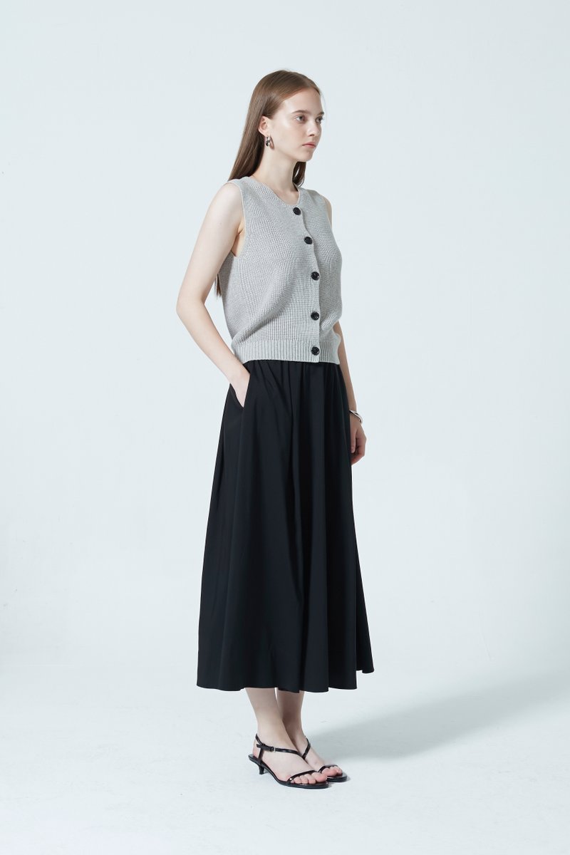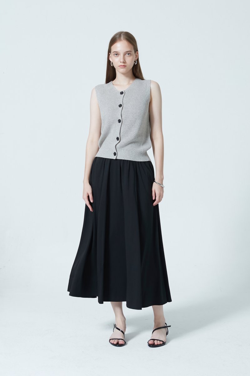 A modern layering essential crafted in a soft knit. Designed with a relaxed silhouette, this vest adds effortless texture to any look. Wear it solo for a minimal statement or layer it over shirts and dresses for versatile styling year-round.