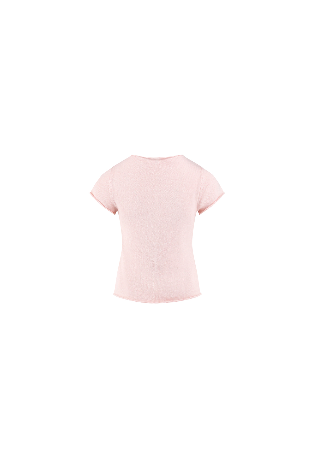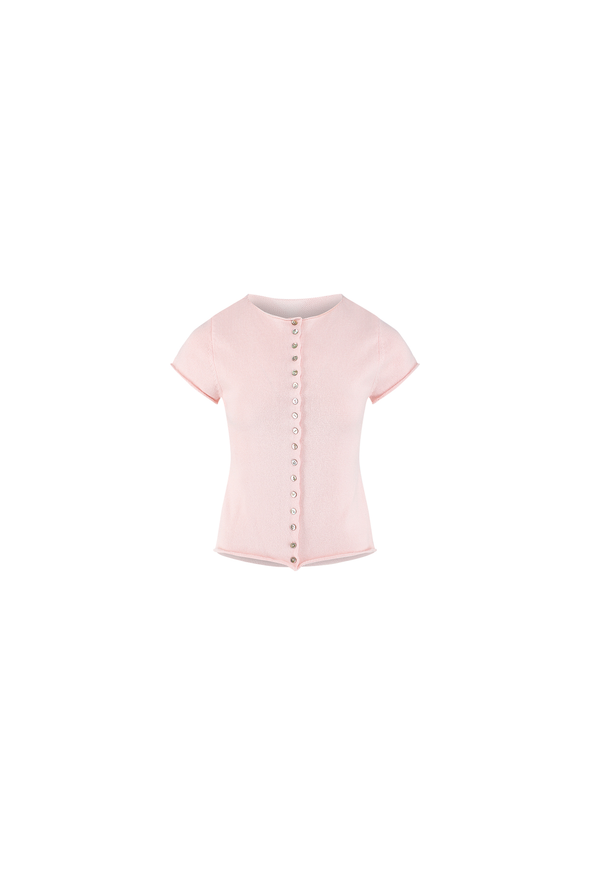 Small shell buttons line this knitted crop top, a simple yet eye-catching design. Customise your look by unbuttoning a few buttons at the top or bottom—and find yourself a new look!