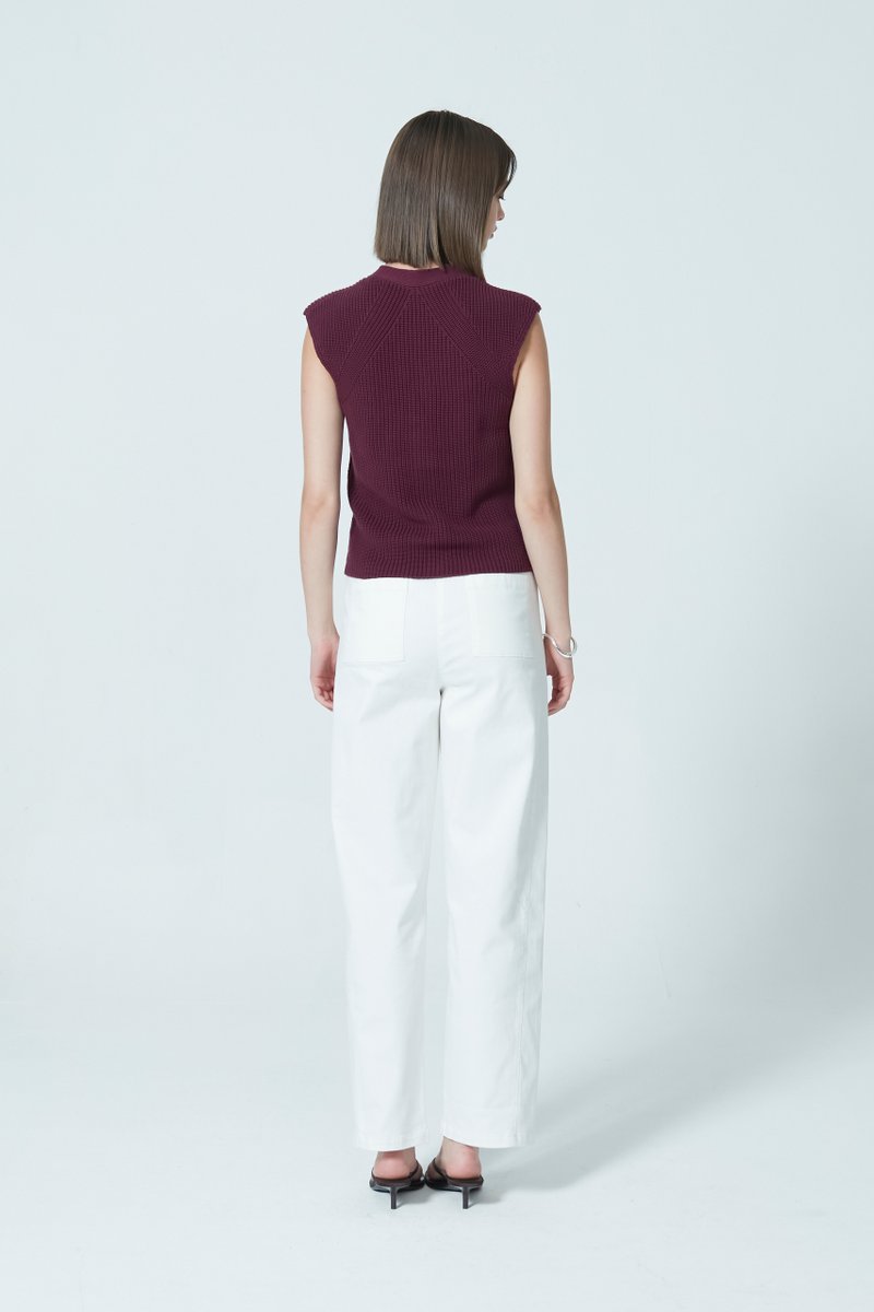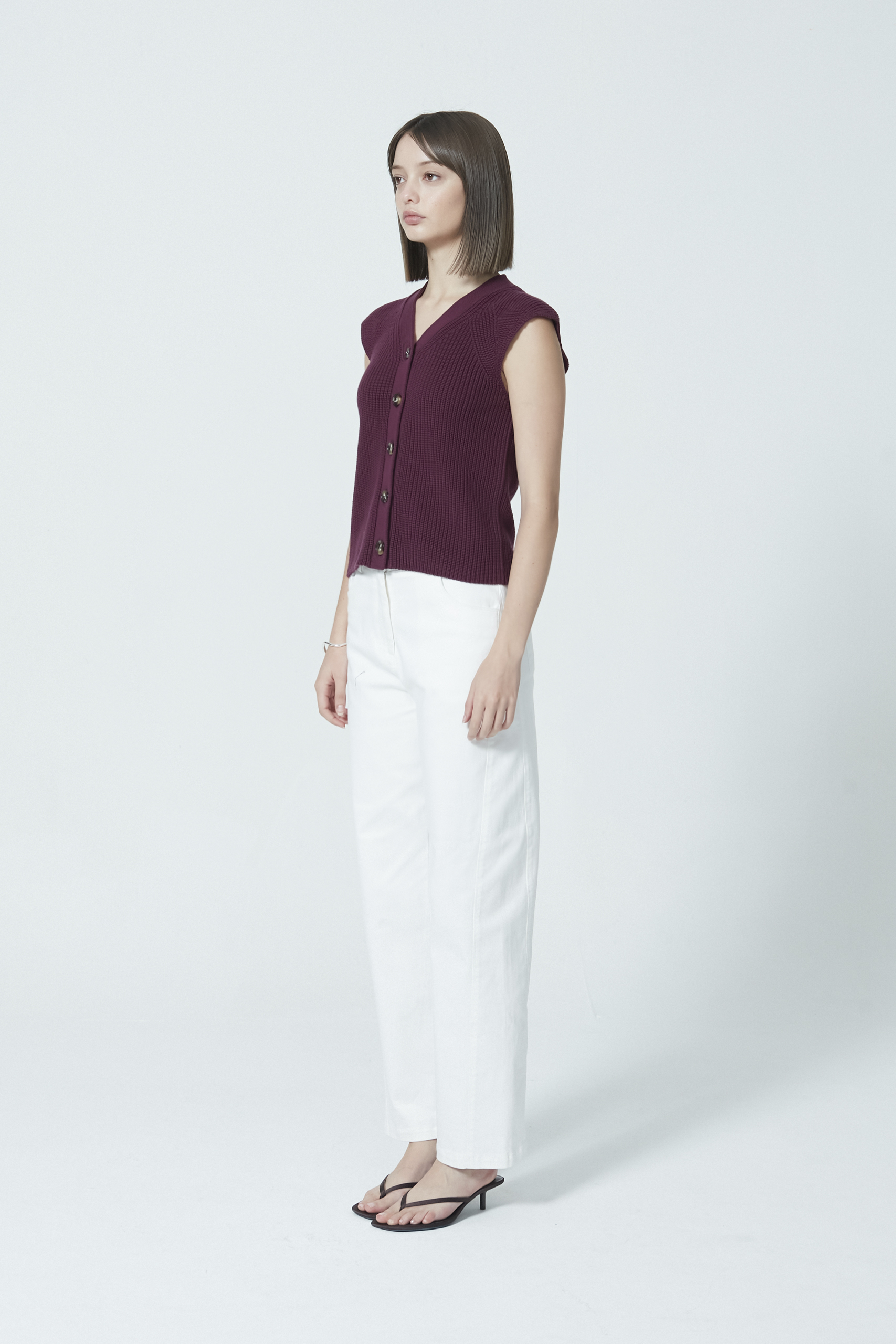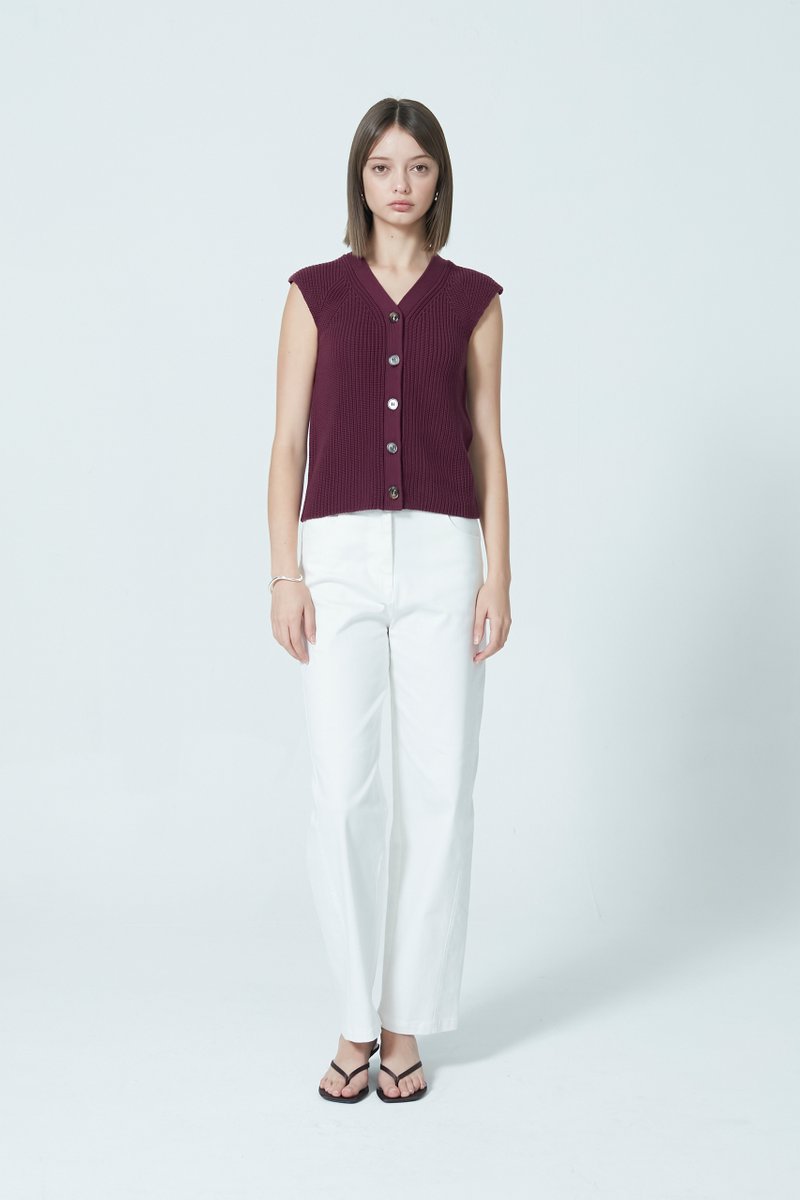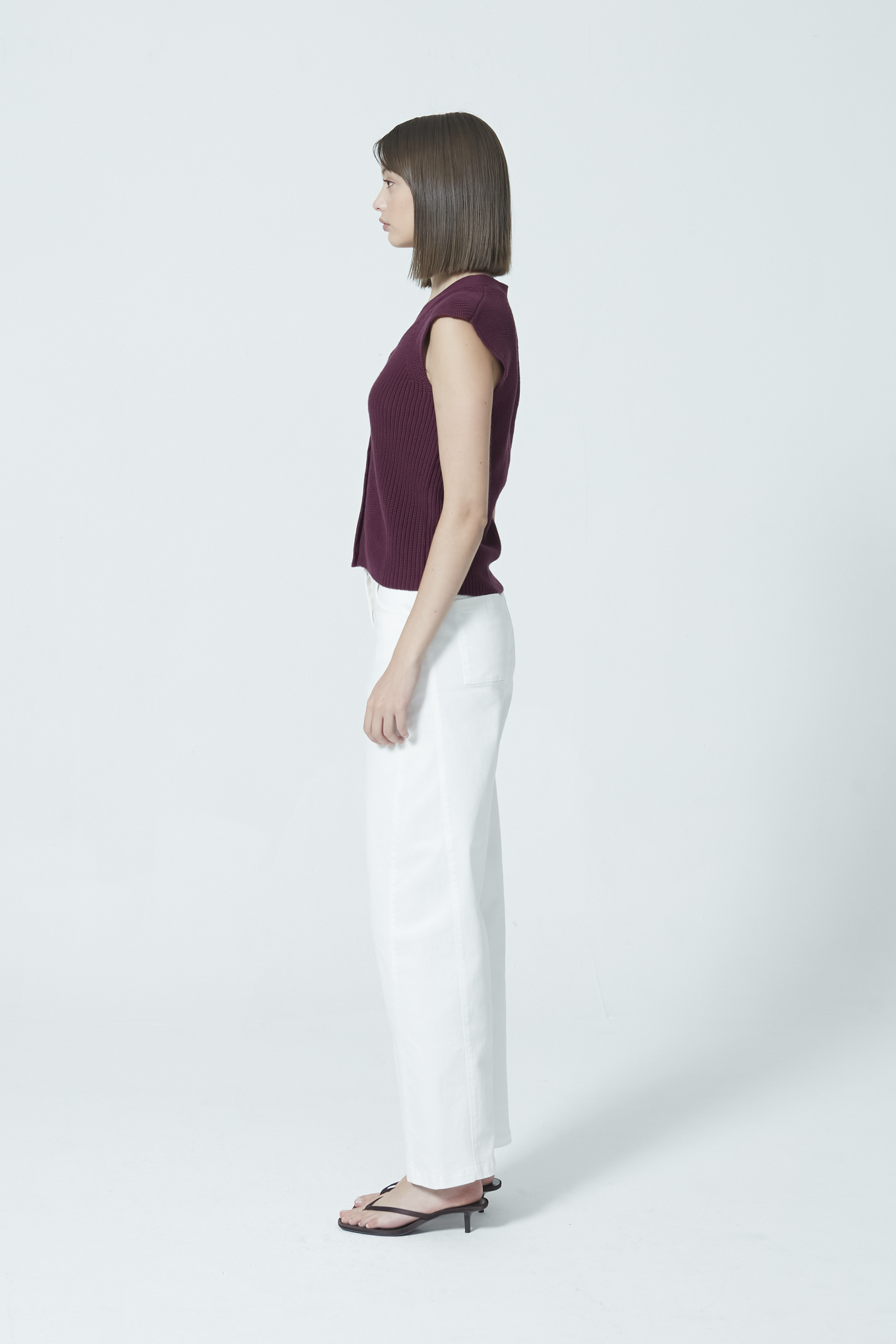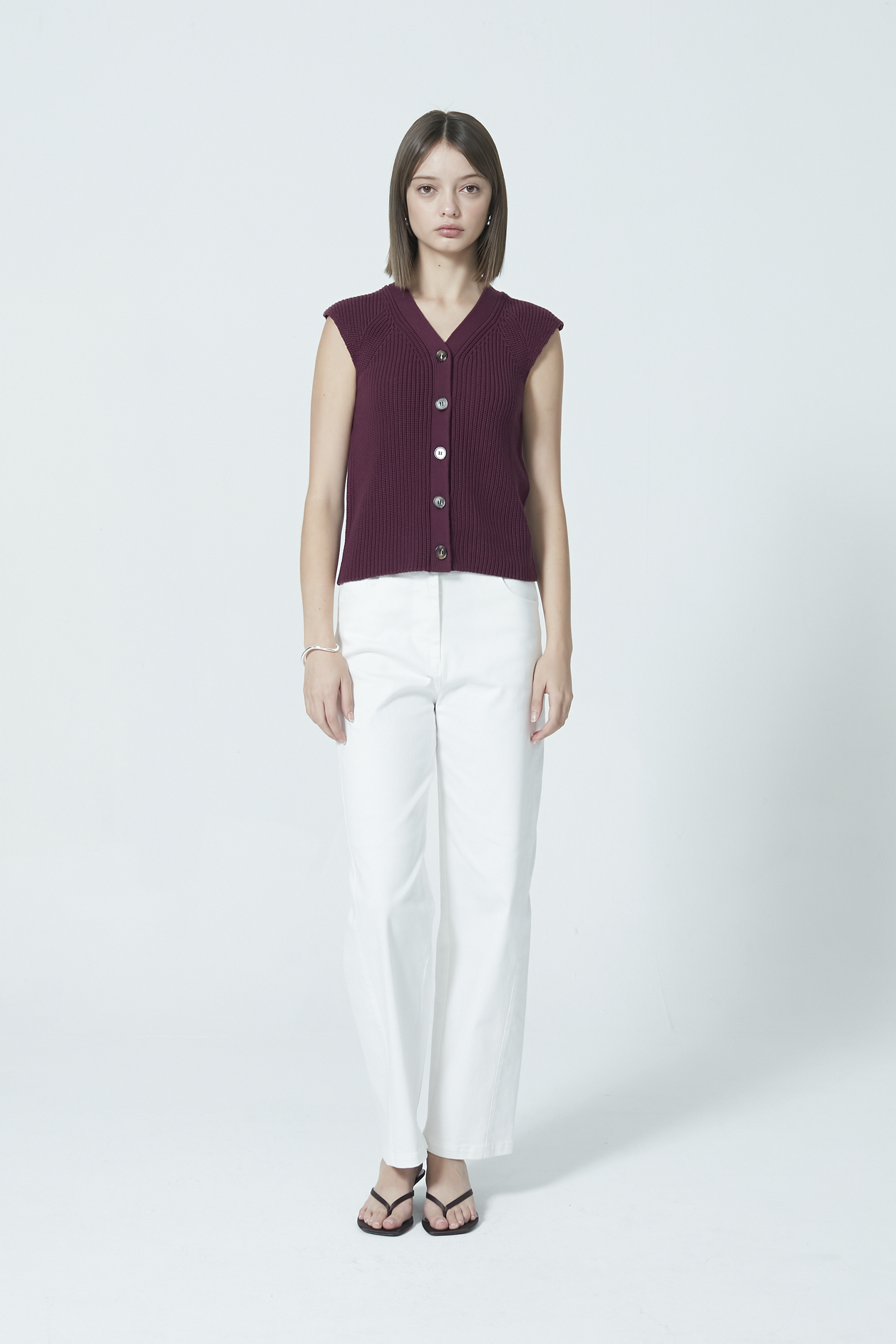 A refreshed take on the classic knitted vest, designed with a distinctive cap-sleeve silhouette. Crafted from soft, comfortable knit fabric — ideal for breezy days or layered through the cooler months.