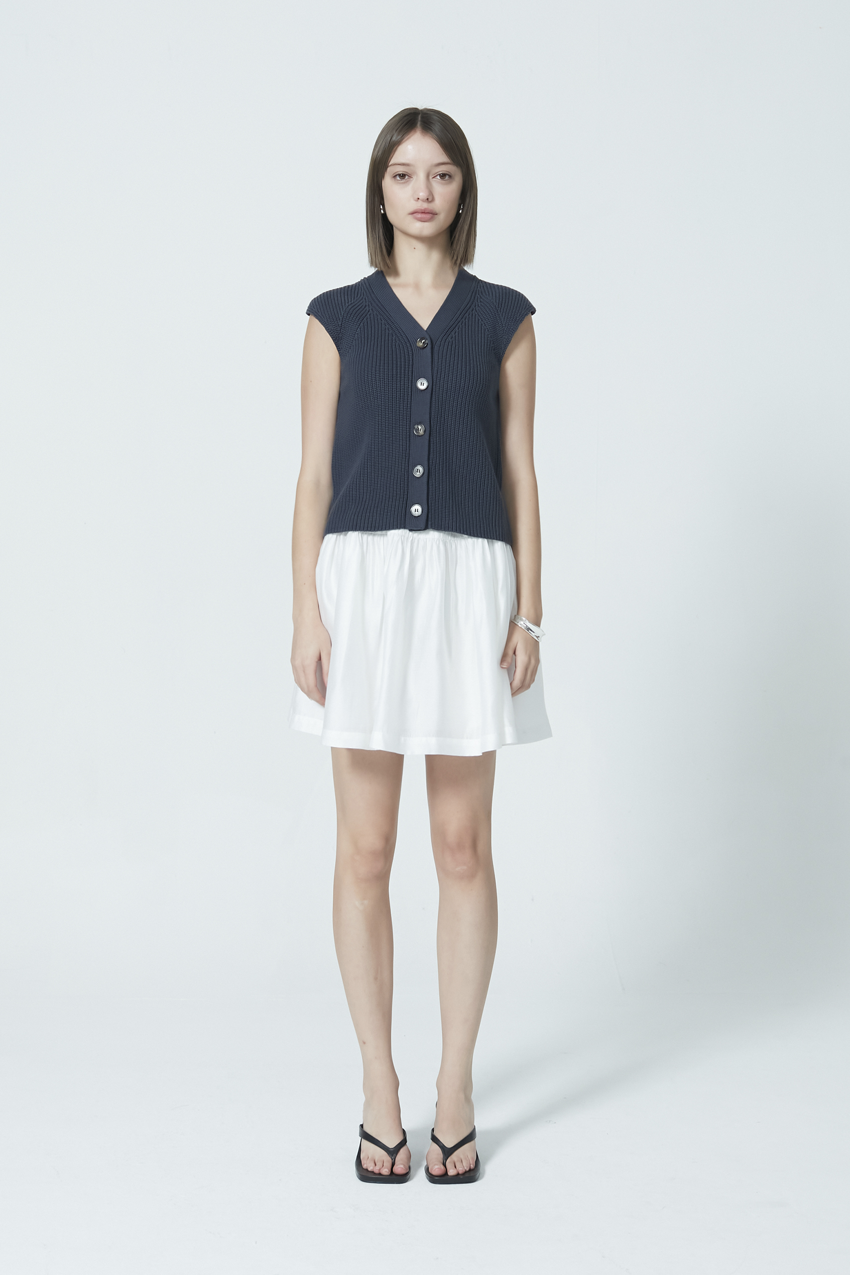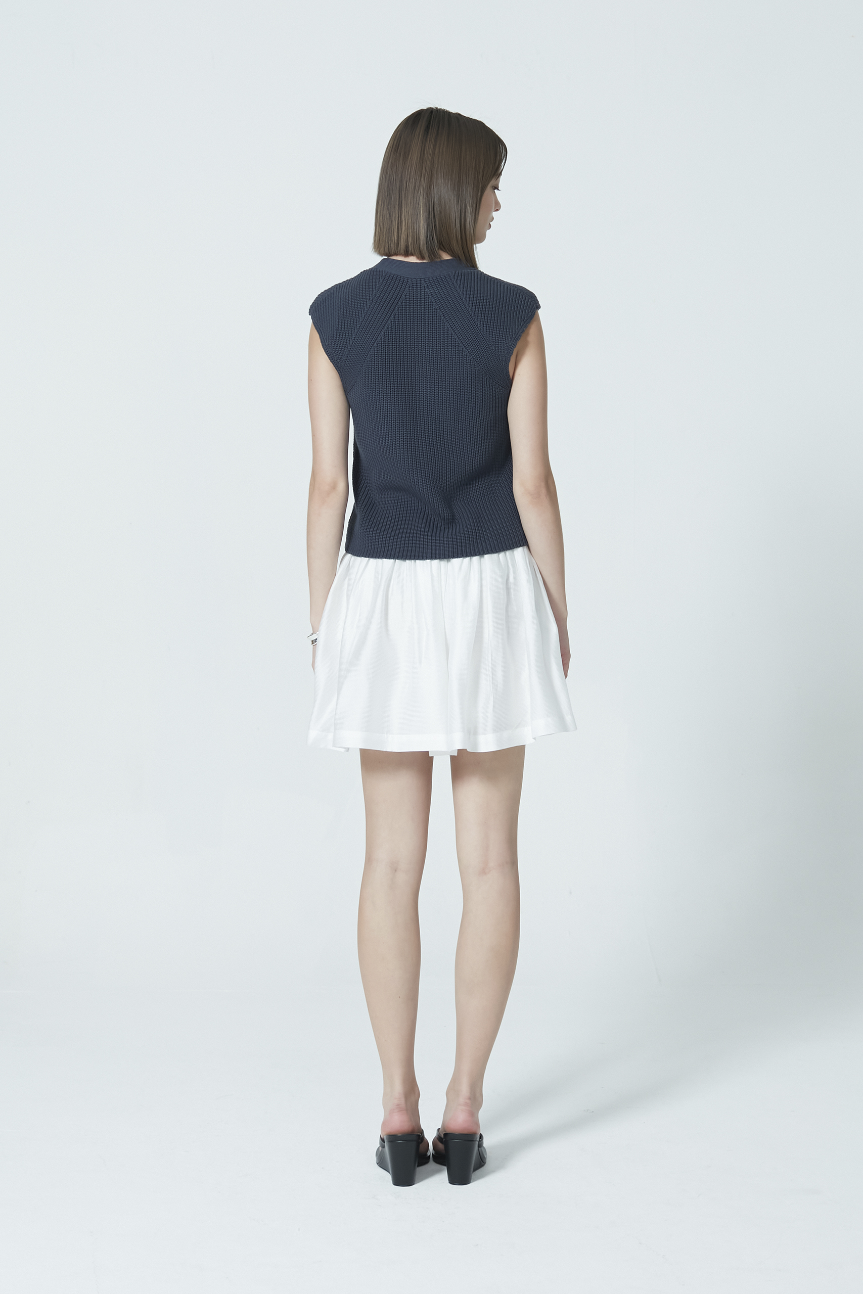A refreshed take on the classic knitted vest, designed with a distinctive cap-sleeve silhouette. Crafted from soft, comfortable knit fabric — ideal for breezy days or layered through the cooler months.