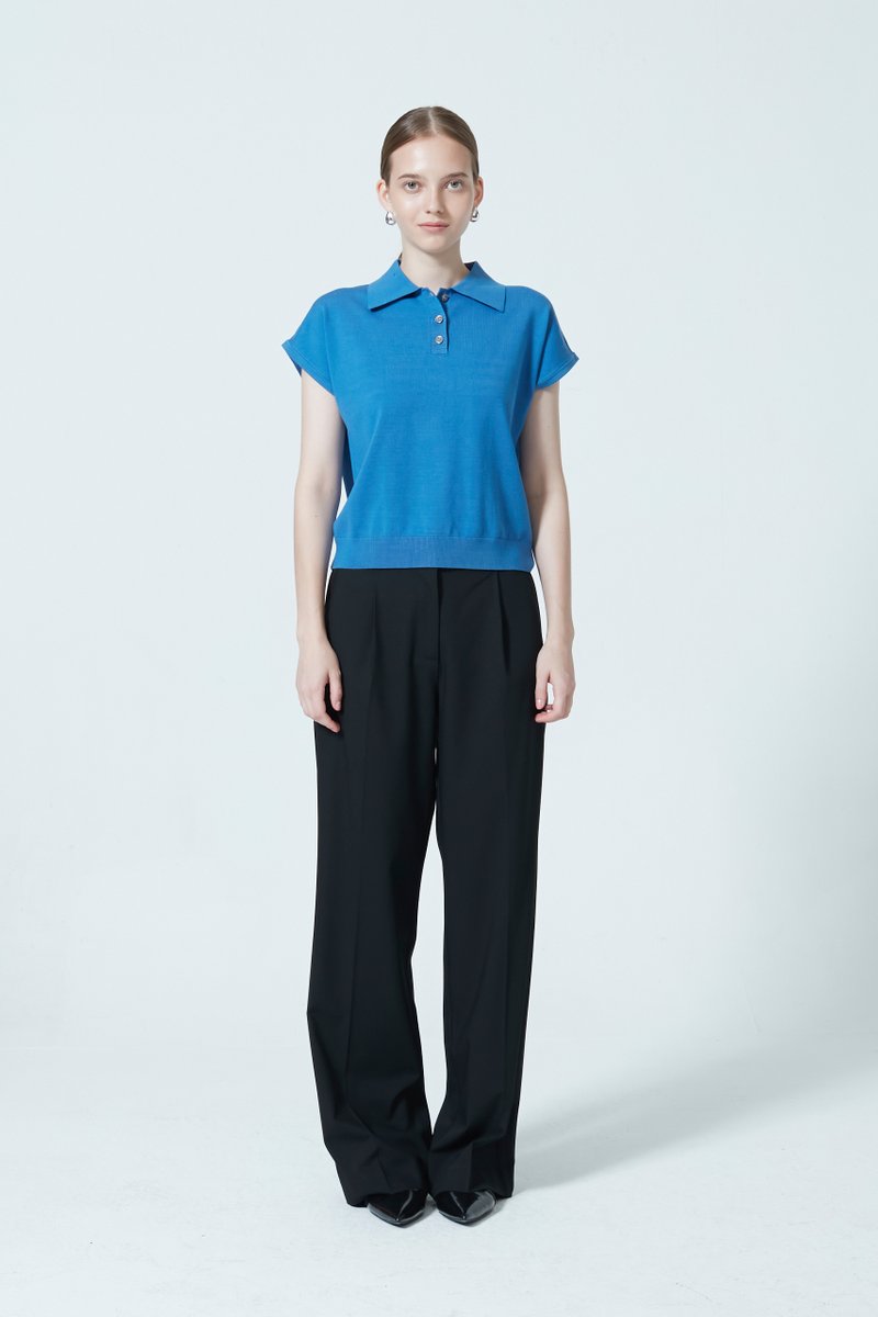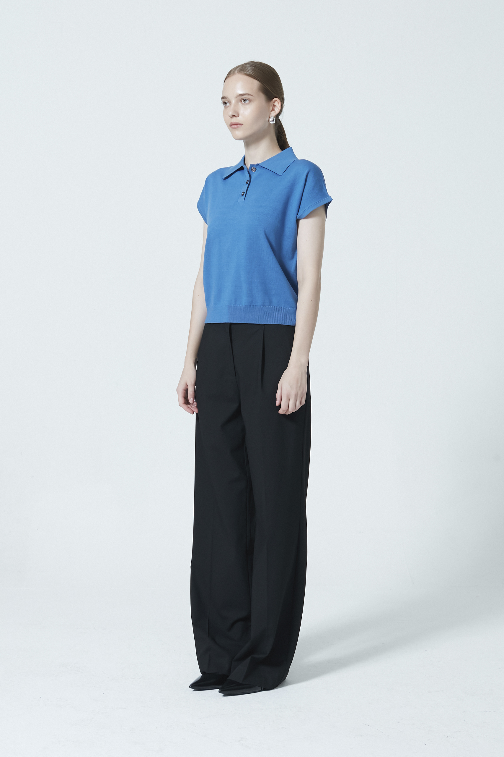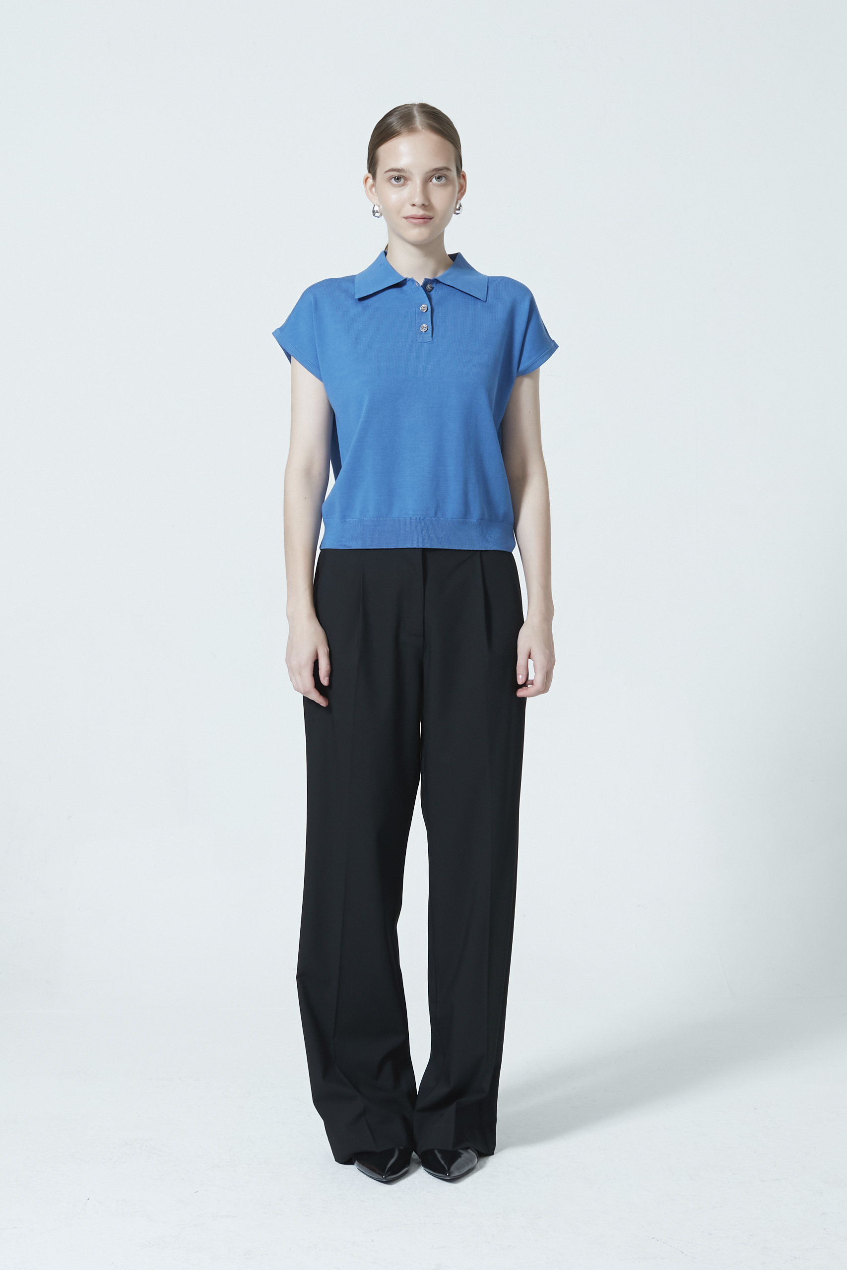 This knitted polo top features a soft textured knit balanced with a sharp collar and button-down neckline. Relaxed yet polished, it’s a versatile piece that pairs effortlessly with tailored bottoms for work or denim for off-duty days.