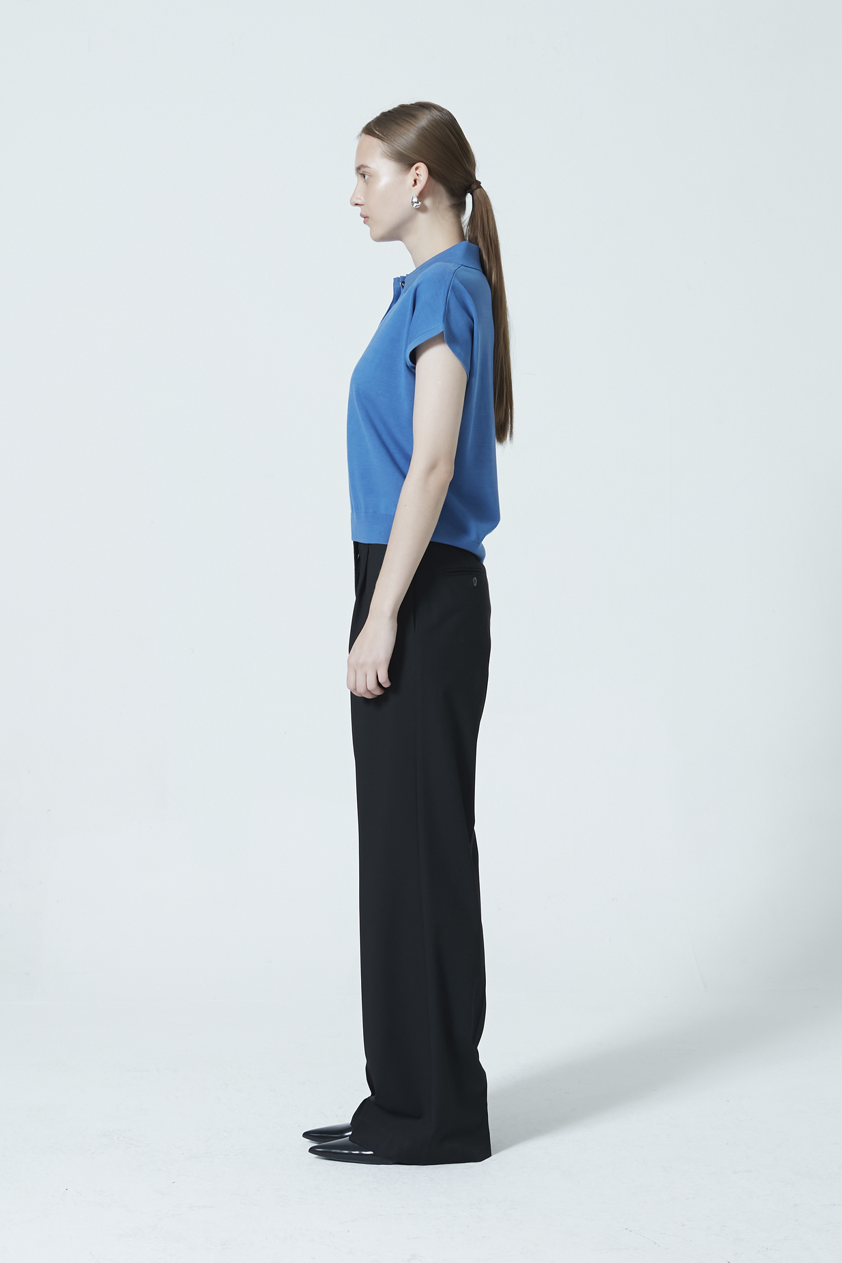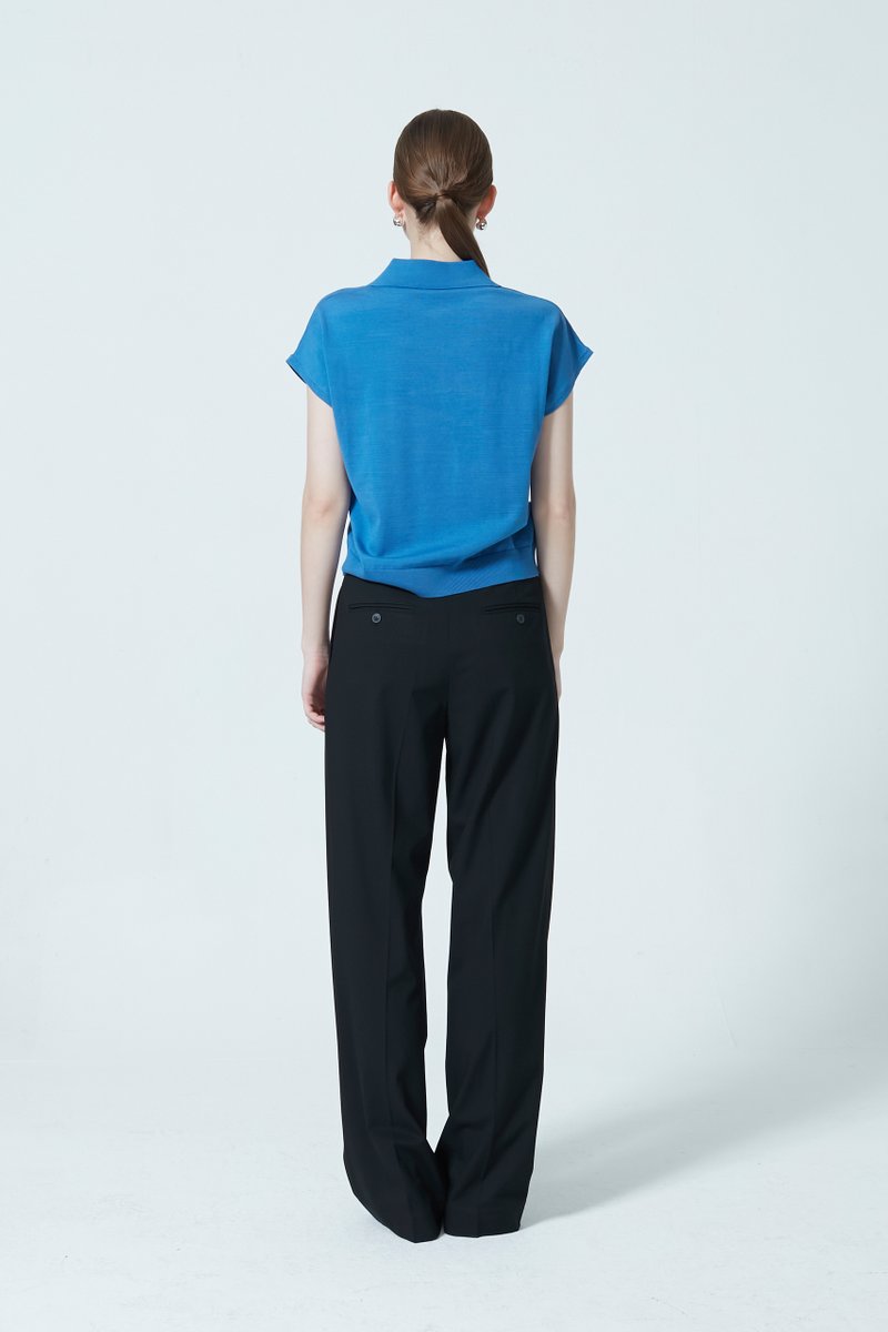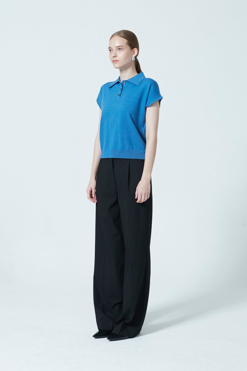 This knitted polo top features a soft textured knit balanced with a sharp collar and button-down neckline. Relaxed yet polished, it’s a versatile piece that pairs effortlessly with tailored bottoms for work or denim for off-duty days.