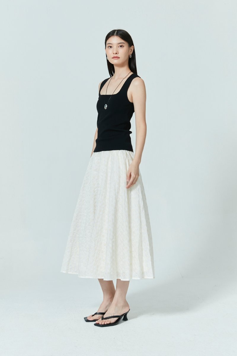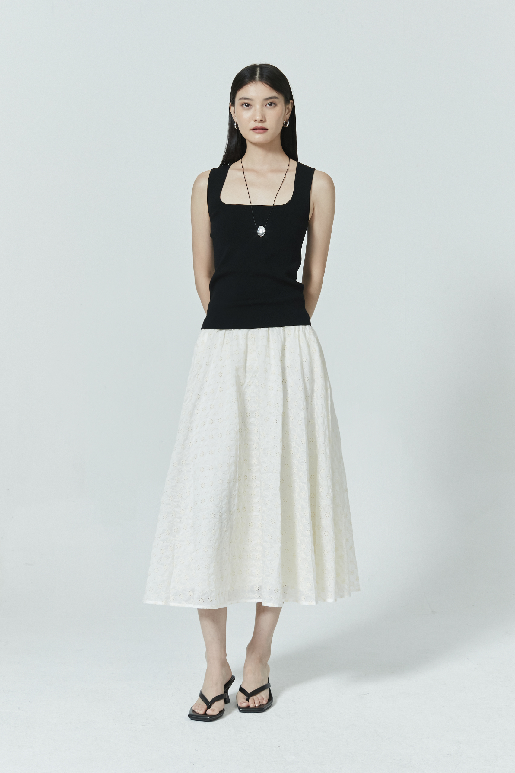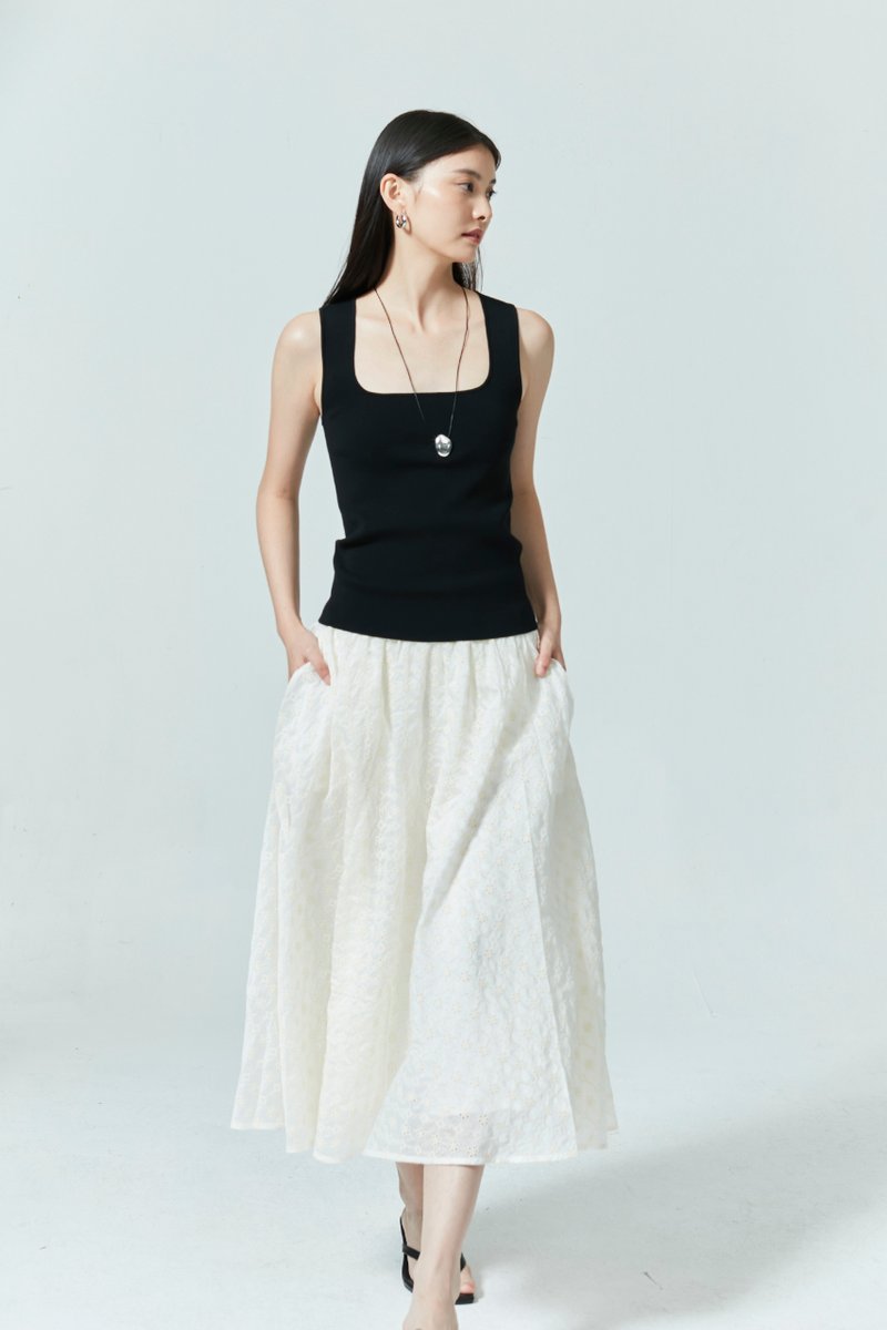 This square neck tank top is cut for a close fit and crafted from a soft, breathable knit that moves with you. Wide straps and a gently structured neckline make it a versatile piece that pairs easily with both tailored and casual looks.
