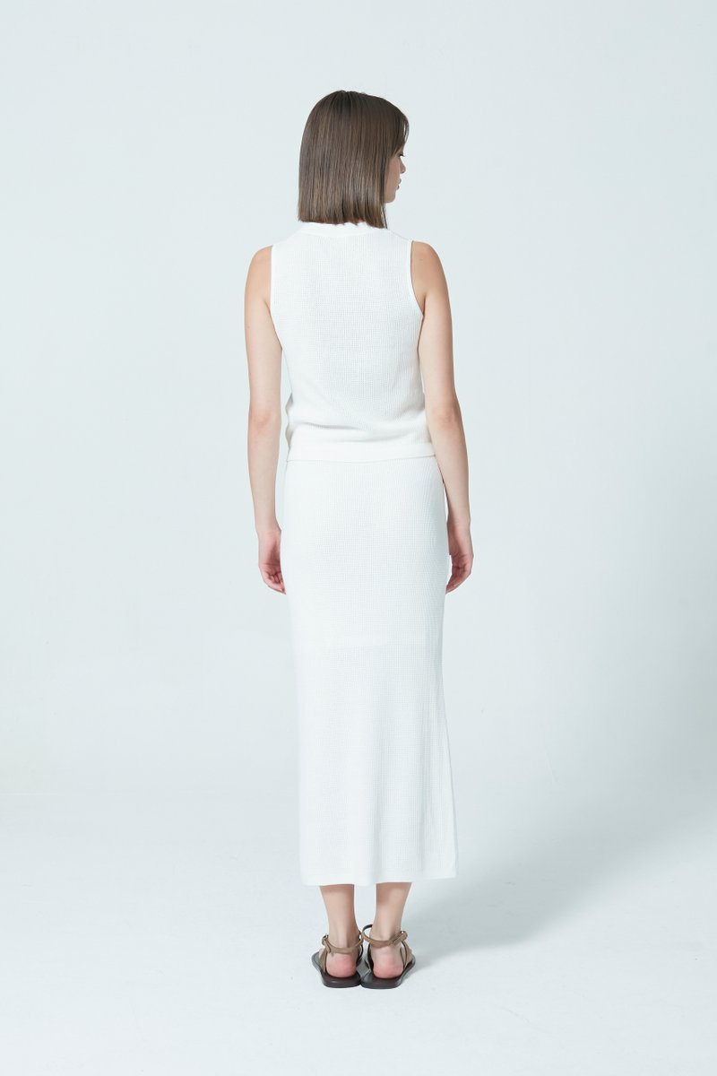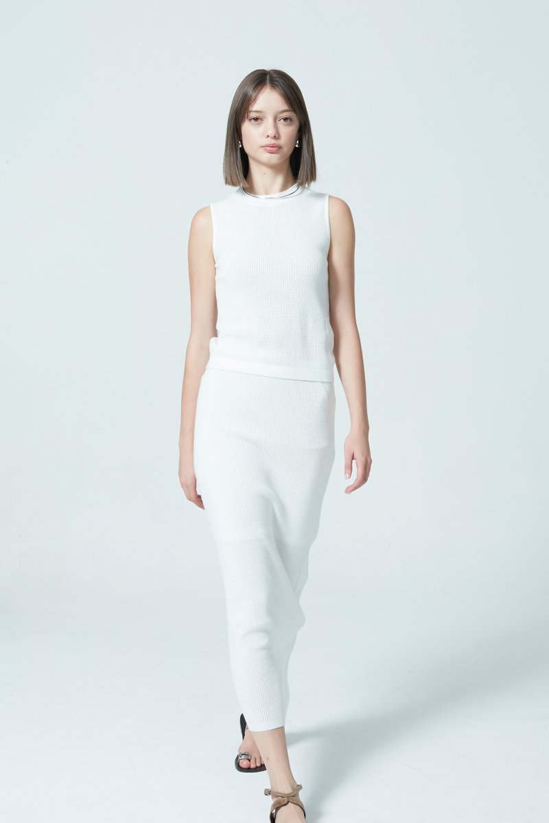 This sleeveless top is cut from textured waffle knit for subtle dimension and finished with a relaxed yet flattering fit that layers effortlessly or stands on its own.