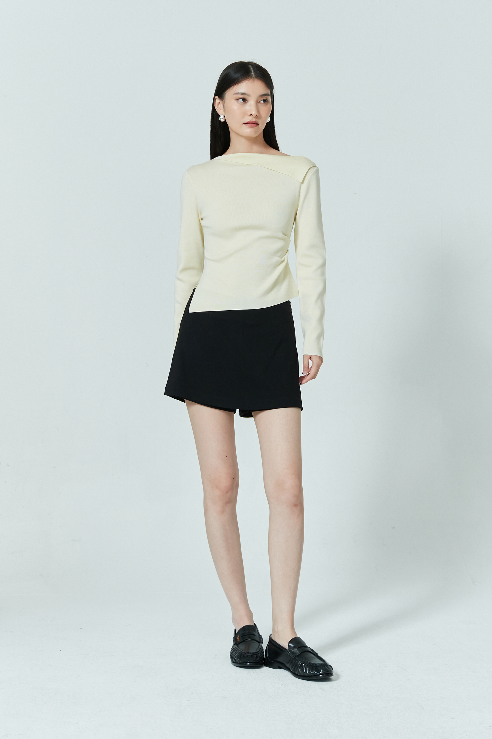 A classic long sleeve, elevated. The unique fold-over design adds visual interest while its side pleats add dimension. Cut in a slight asymmetry, this top pairs perfectly with denim or tailored bottoms.