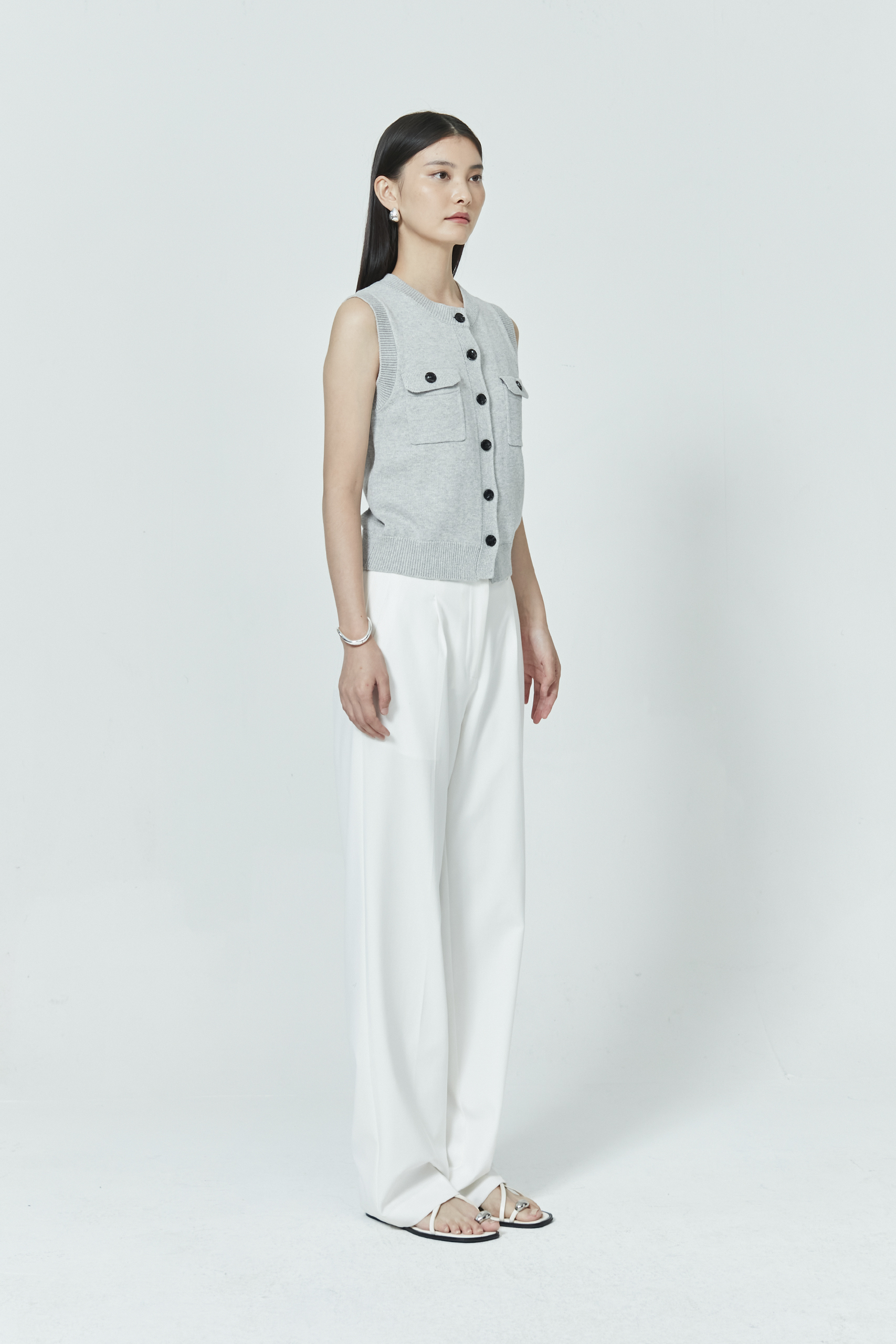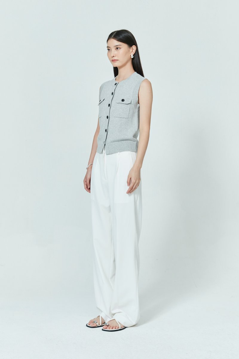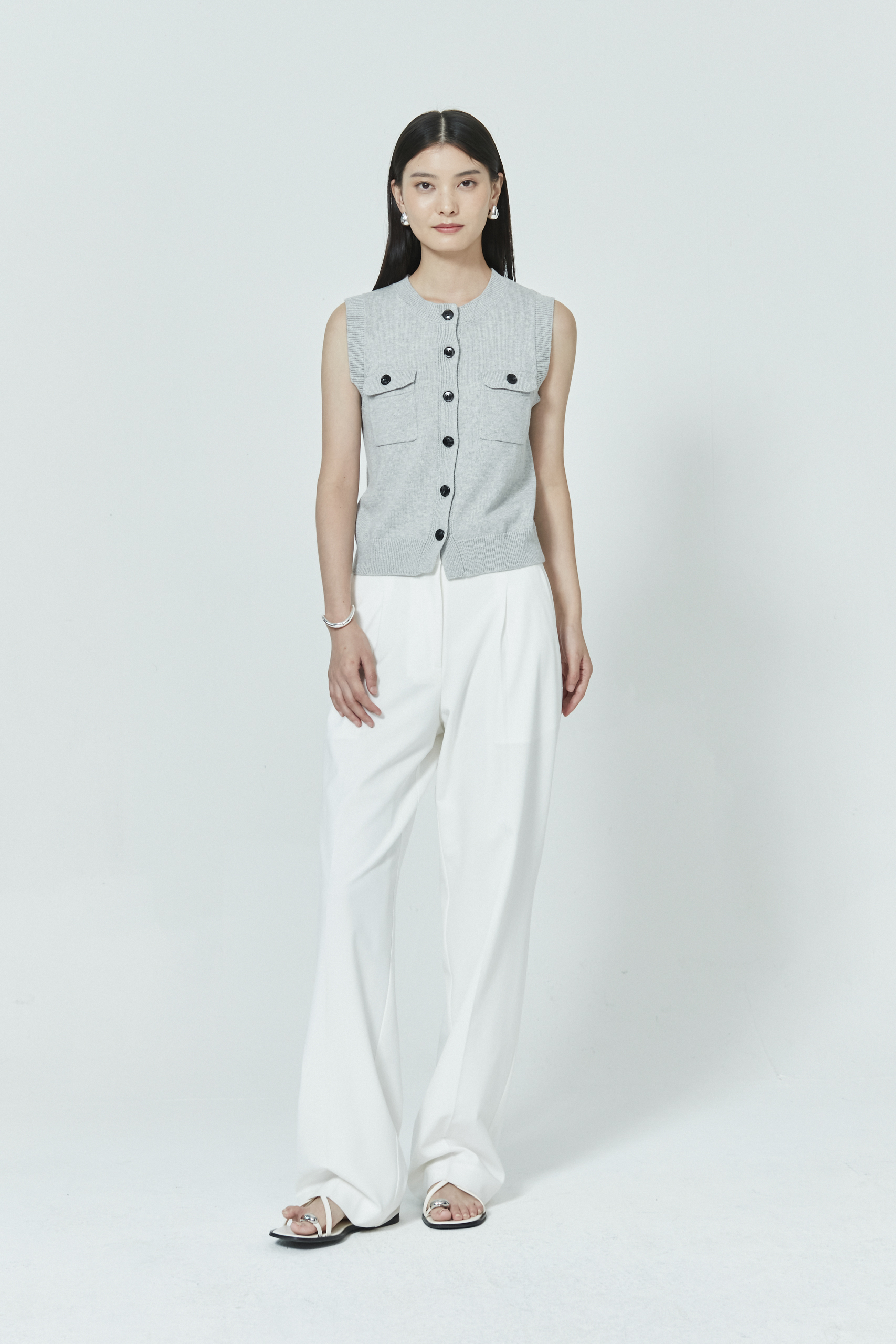 Classic meets chic in this button-down vest. A timeless design that pairs effortlessly with miniskirts for a casual look, tailored bottoms for a work-ready fit, or denim for an off-duty ensemble.