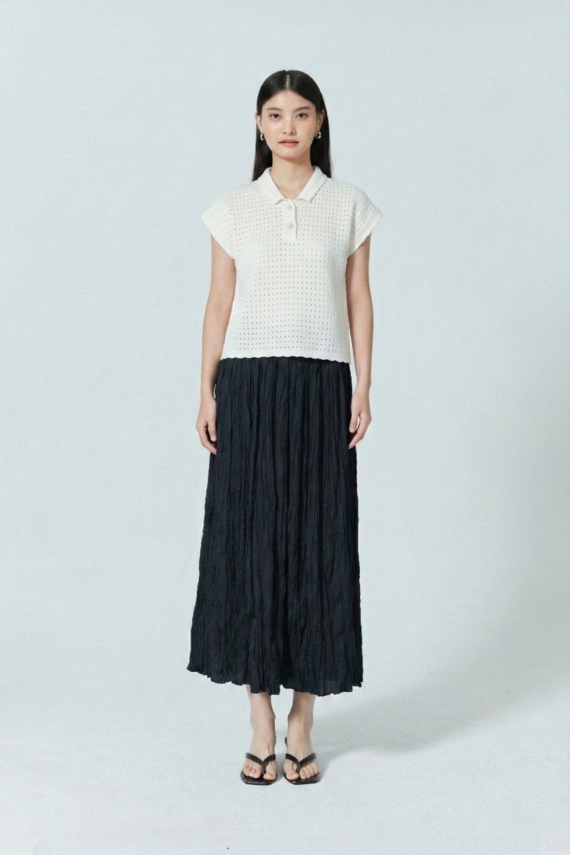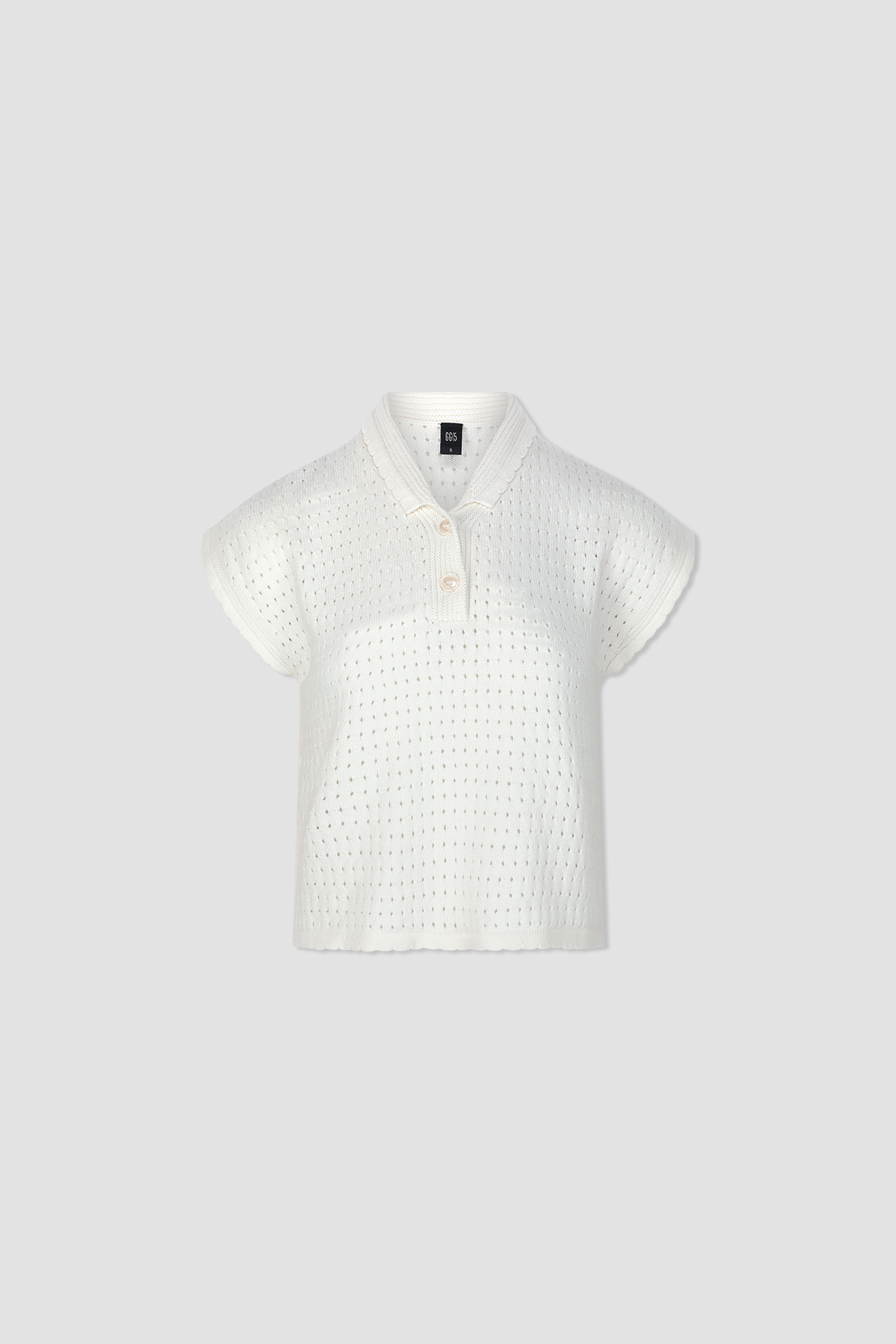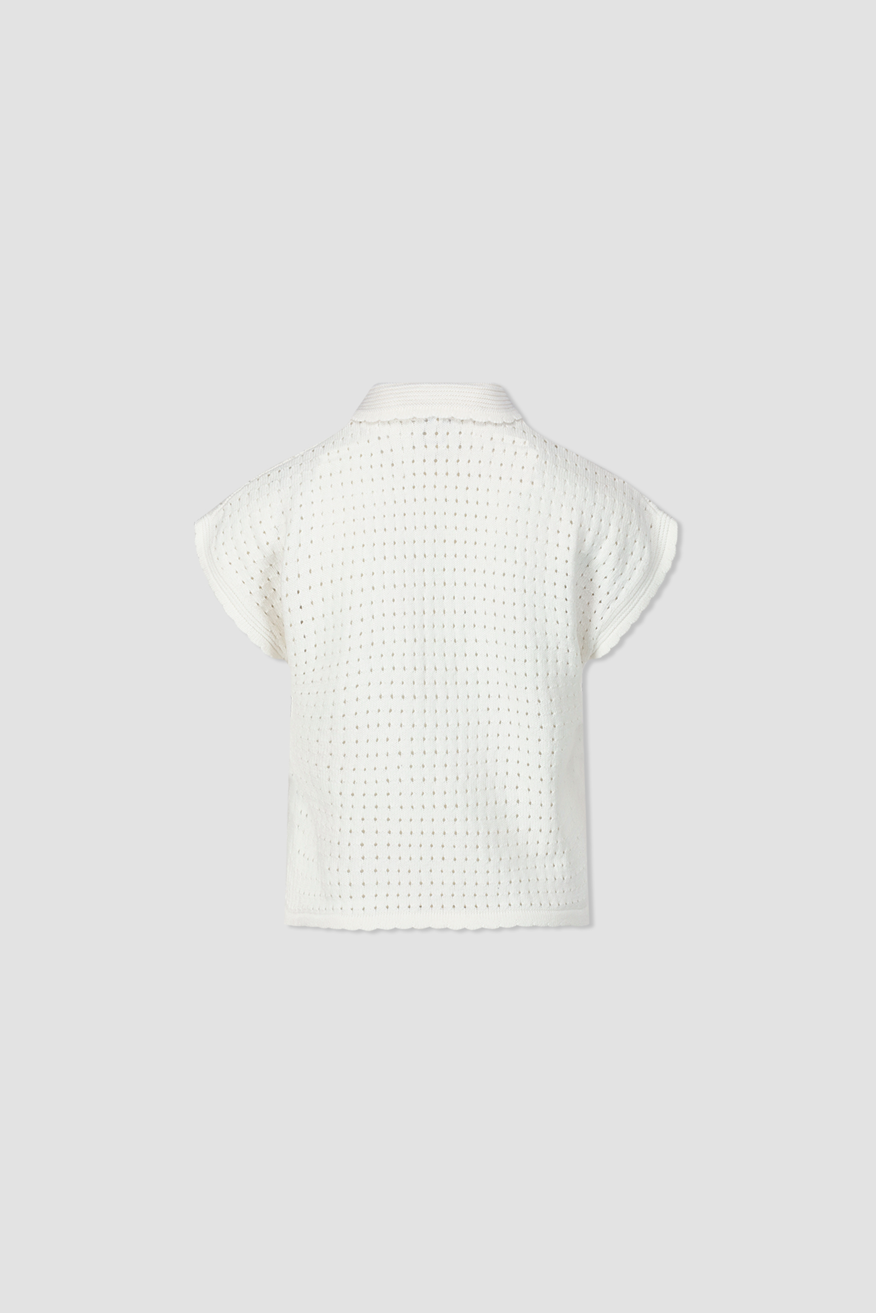 A simple crochet top for your everyday rotation—the pure cotton keeps you comfortable all day. Features a soft collar and button detailing for an elevated touch. Pair with shorts for a classic casual look or style with flare skirts for a more feminine feel.