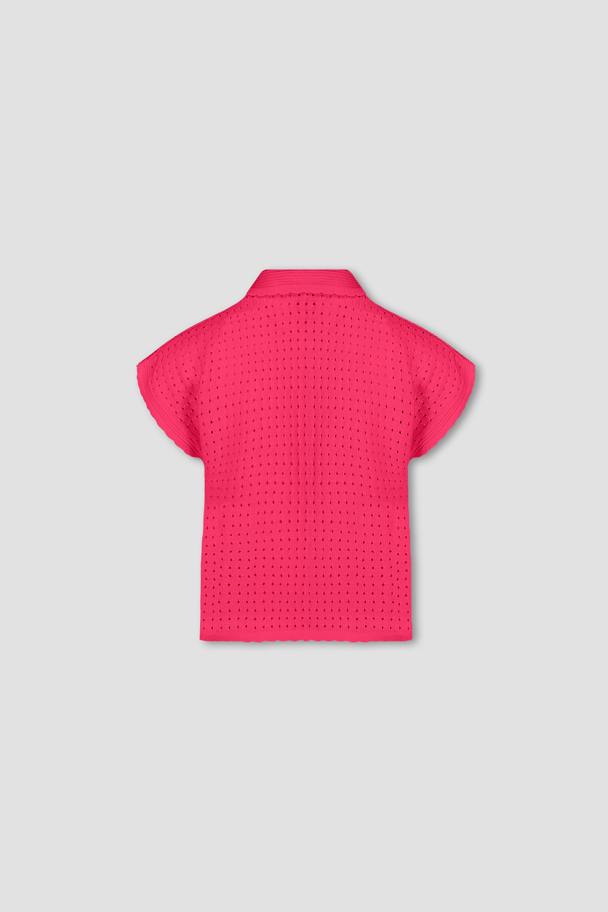 A simple crochet top for your everyday rotation—the pure cotton keeps you comfortable all day. Features a soft collar and button detailing for an elevated touch. Pair with shorts for a classic casual look or style with flare skirts for a more feminine feel.