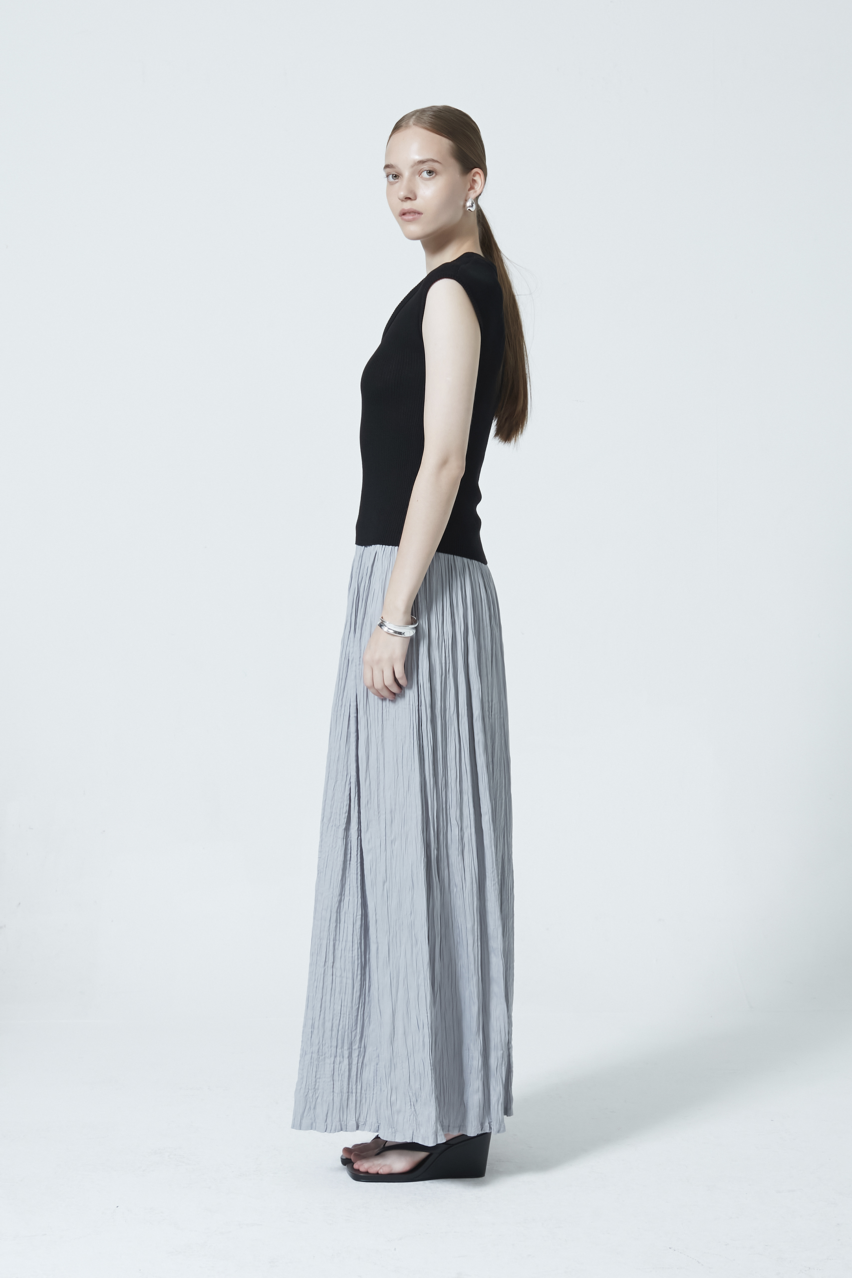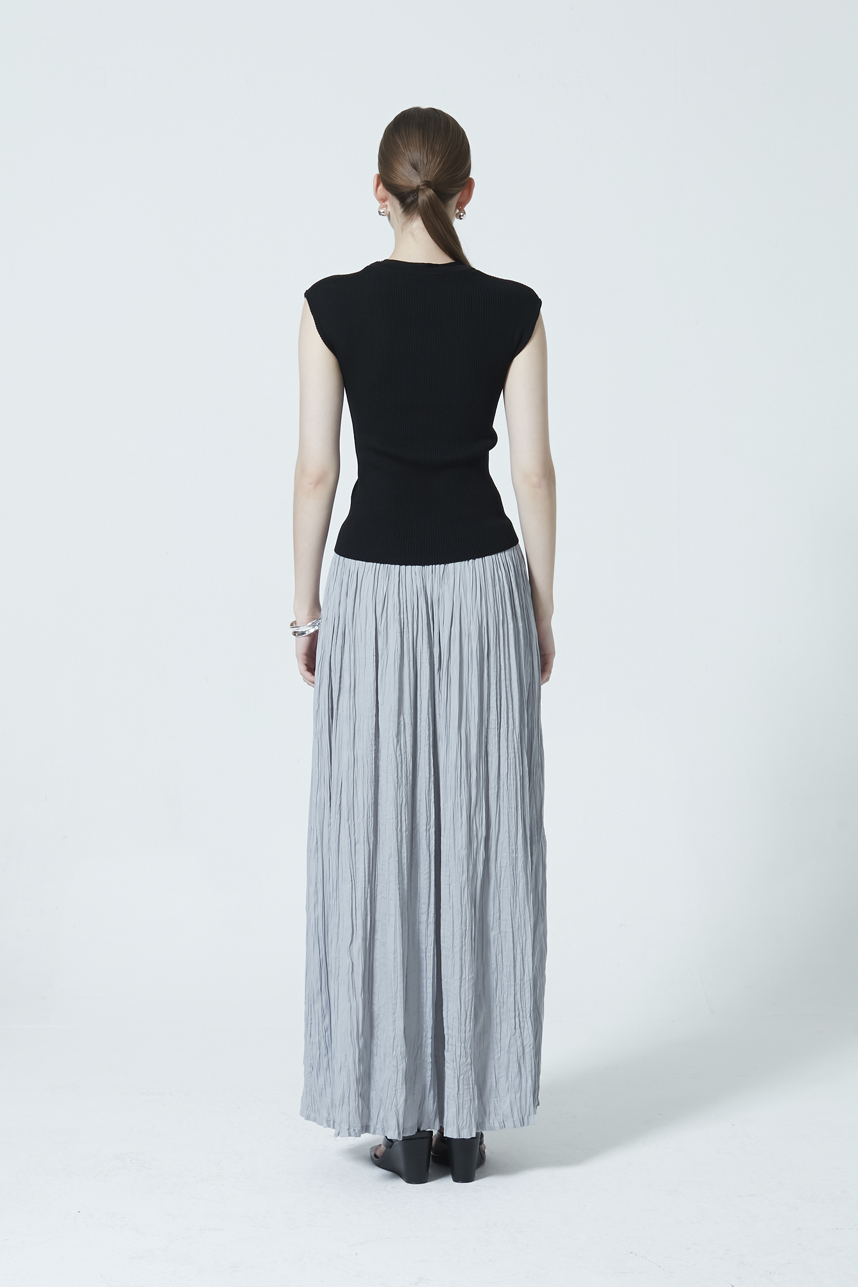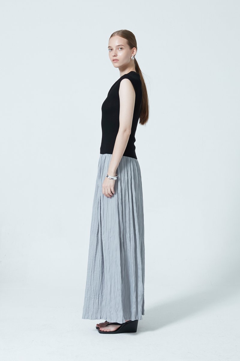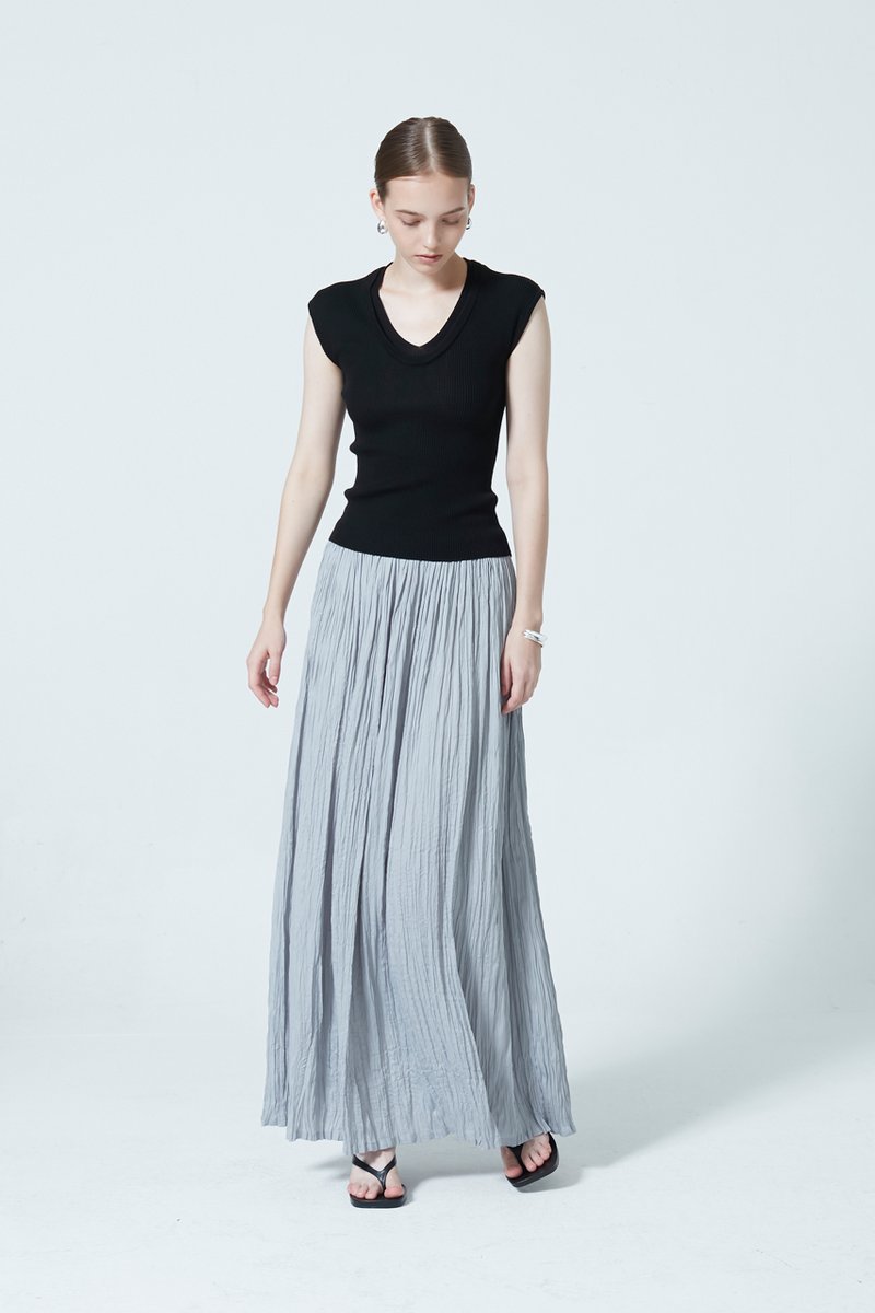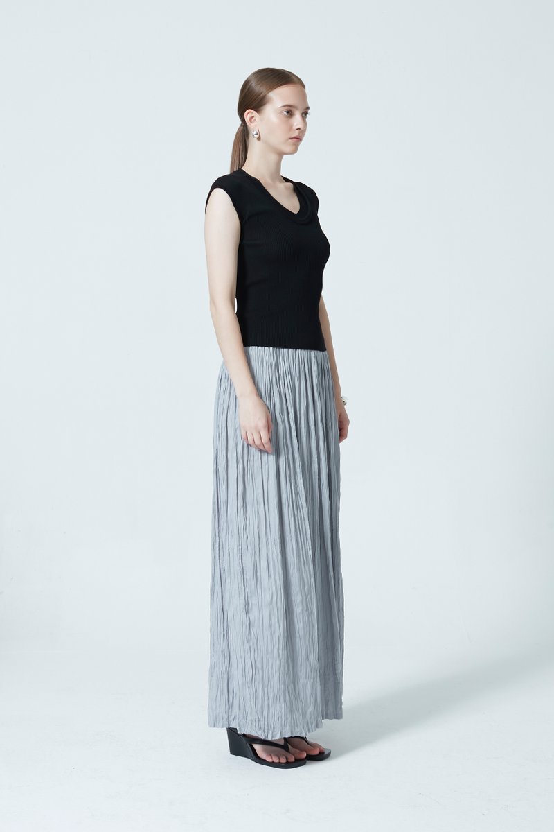 A knitted scoop neck top designed with a subtle layered effect for added dimension. Crafted in a soft knit that sits comfortably on the body, it features a flattering neckline and a streamlined silhouette—an elevated essential for everyday wear.