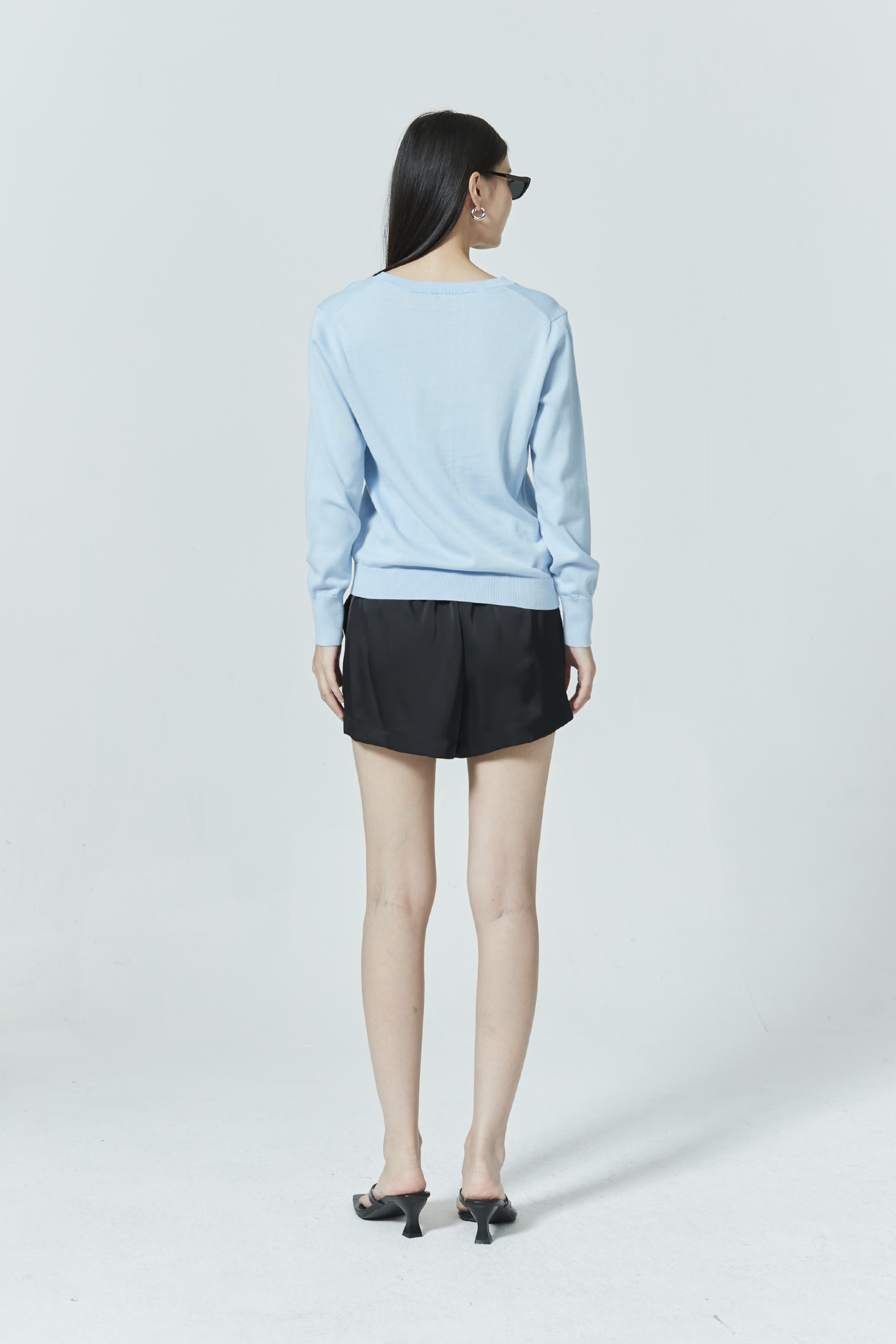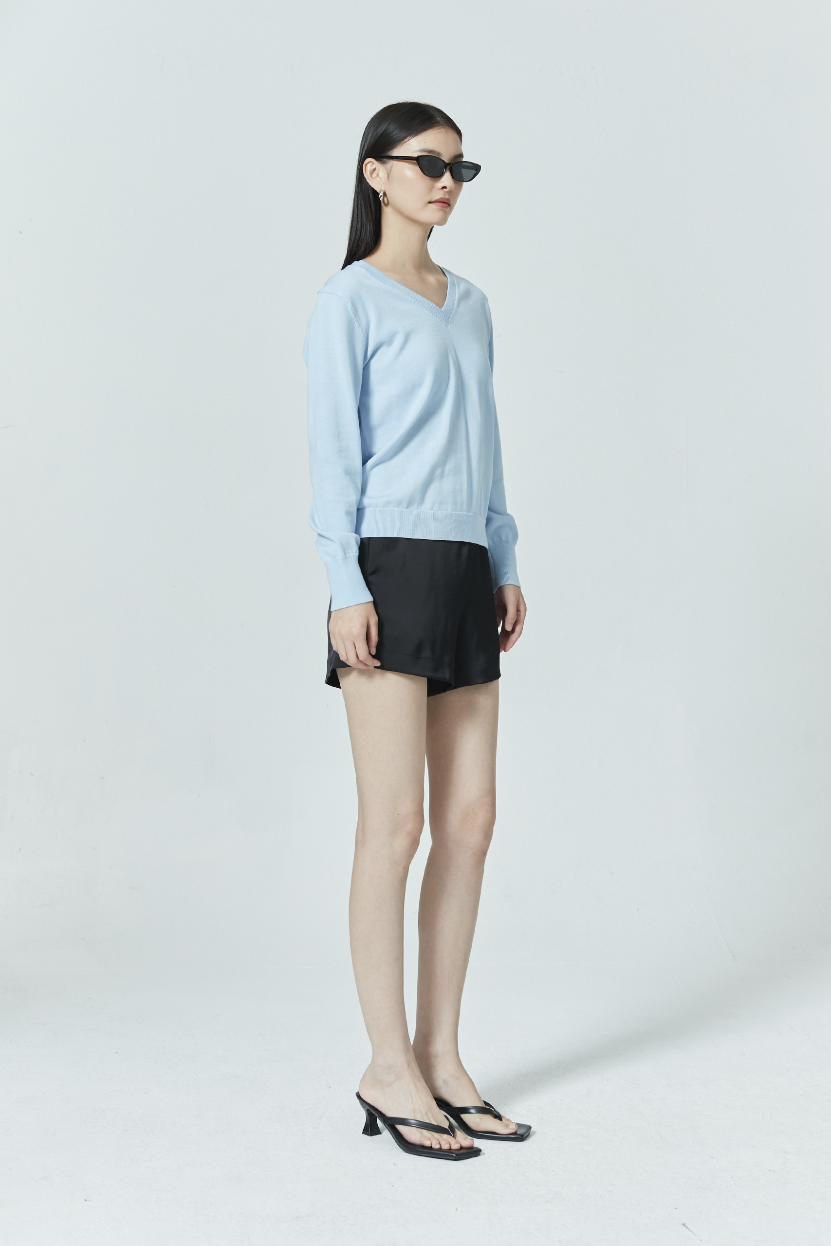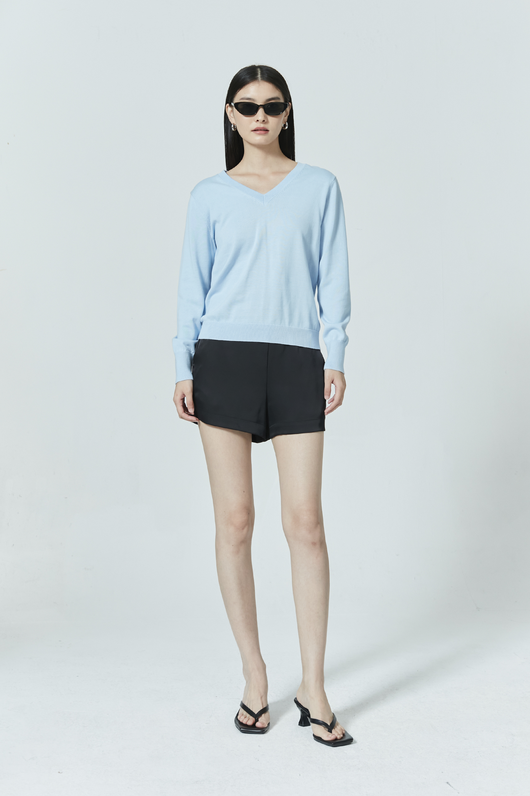 A must-have for chilly days and travel layering, this jumper features a soft cotton knit and a subtle v-neckline. Lightweight and breathable, it is a piece that accompanies you through the seasons.