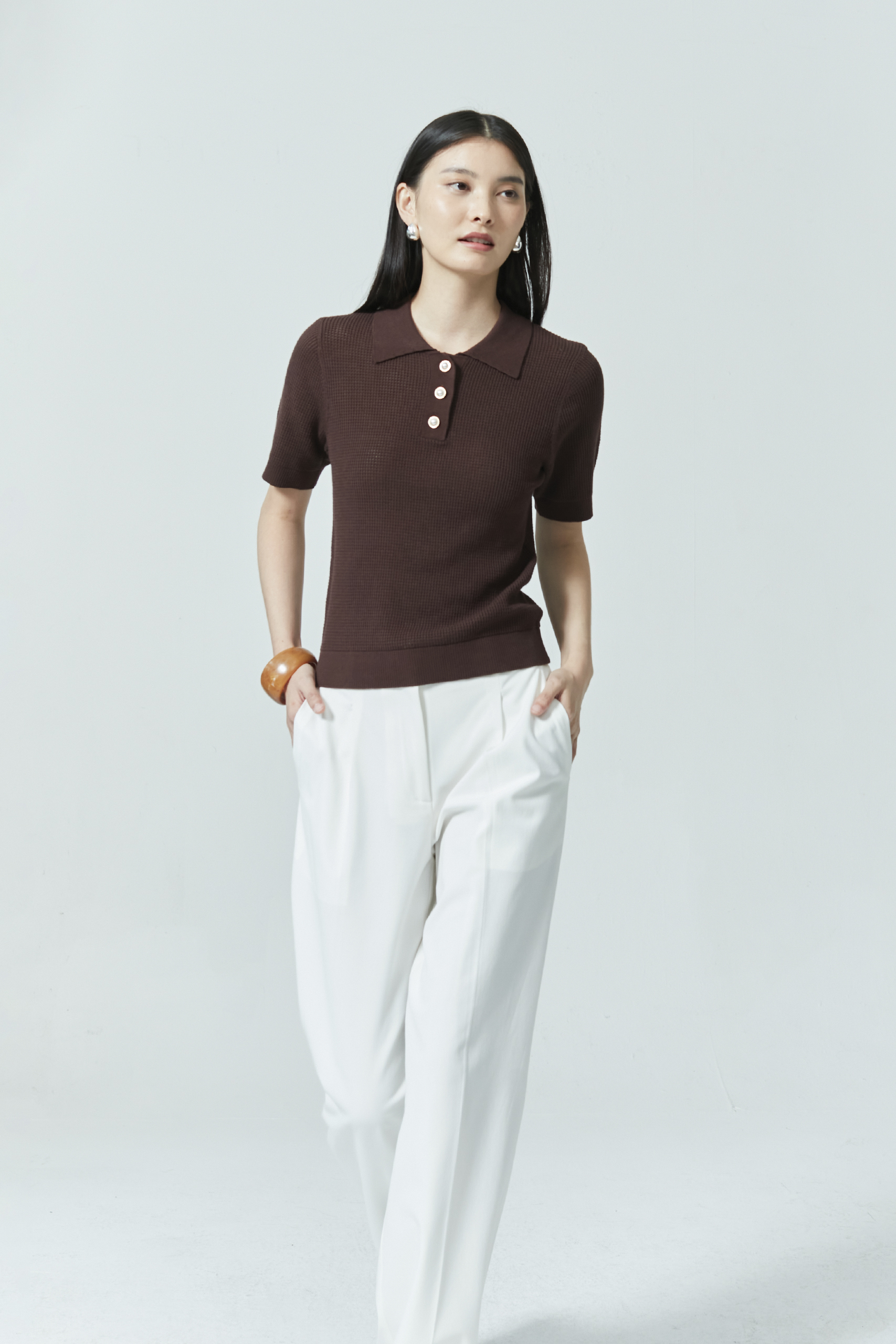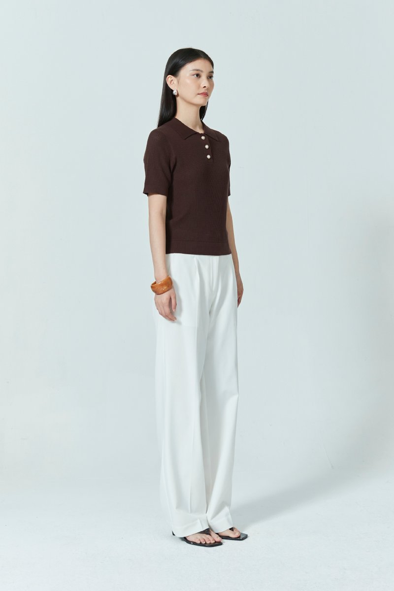 WAFFLE KNIT POLO TOP