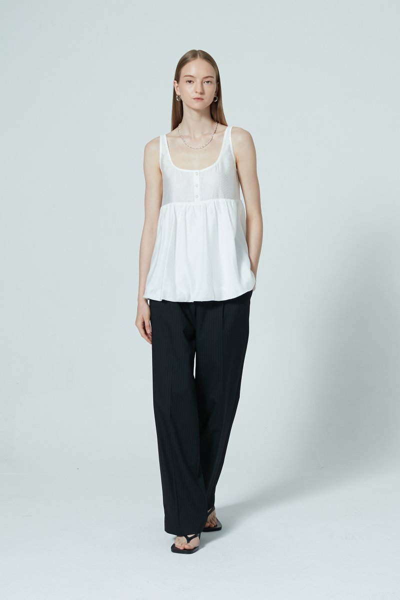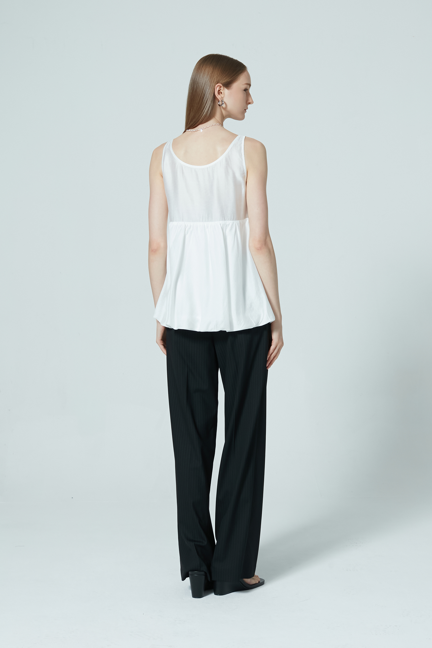 Playful yet refined, this balloon peplum top features a softly gathered waist and voluminous hem for a sculpted silhouette. Made from a lightweight fabric that moves with ease, perfect for both work and weekends.