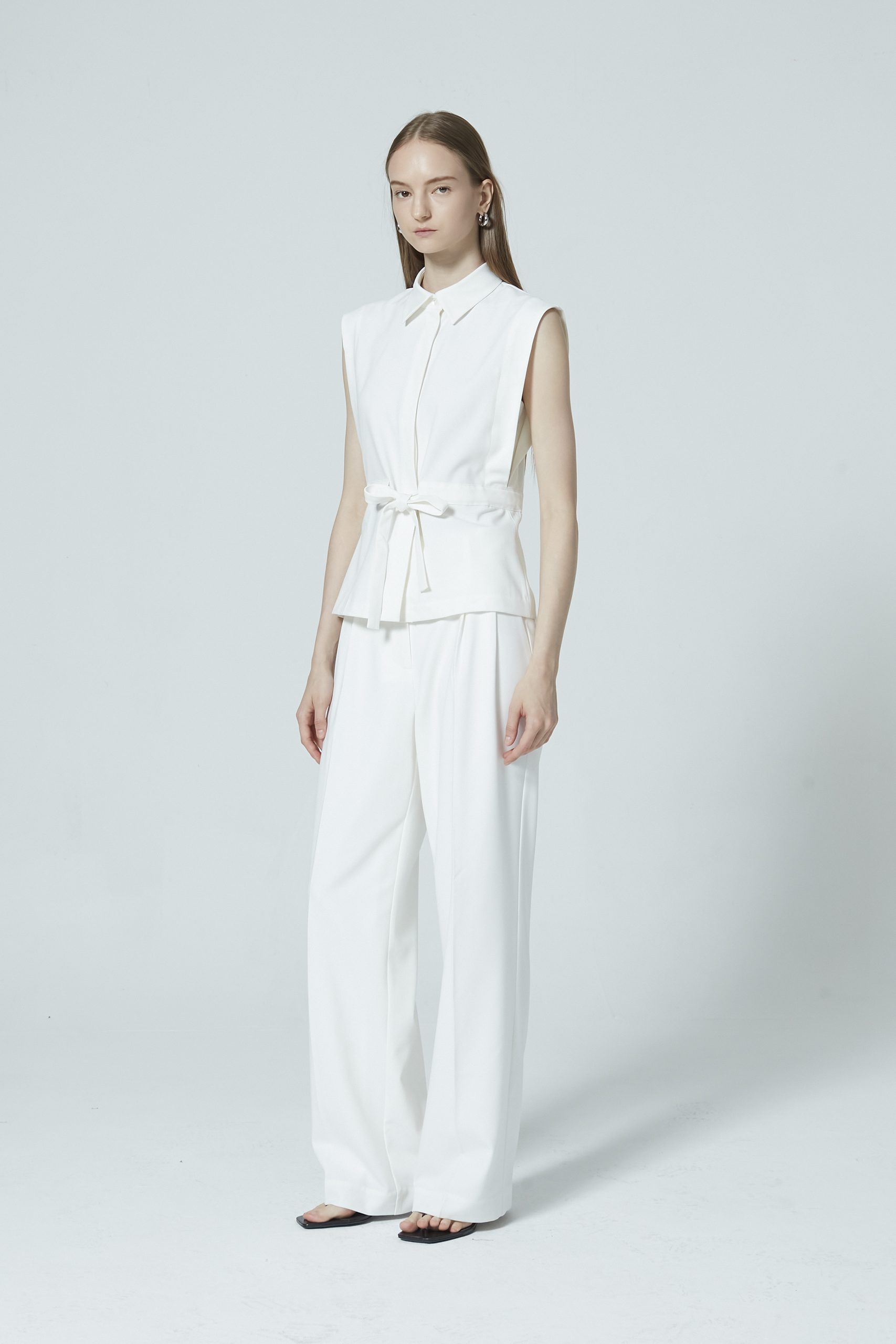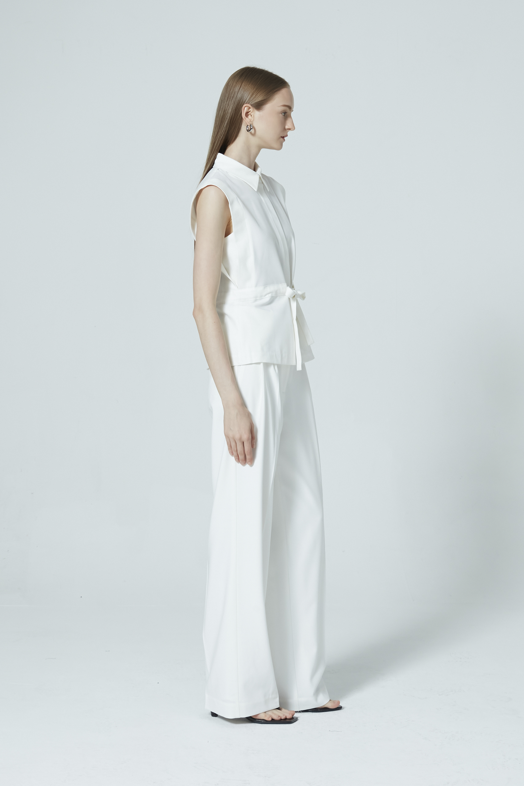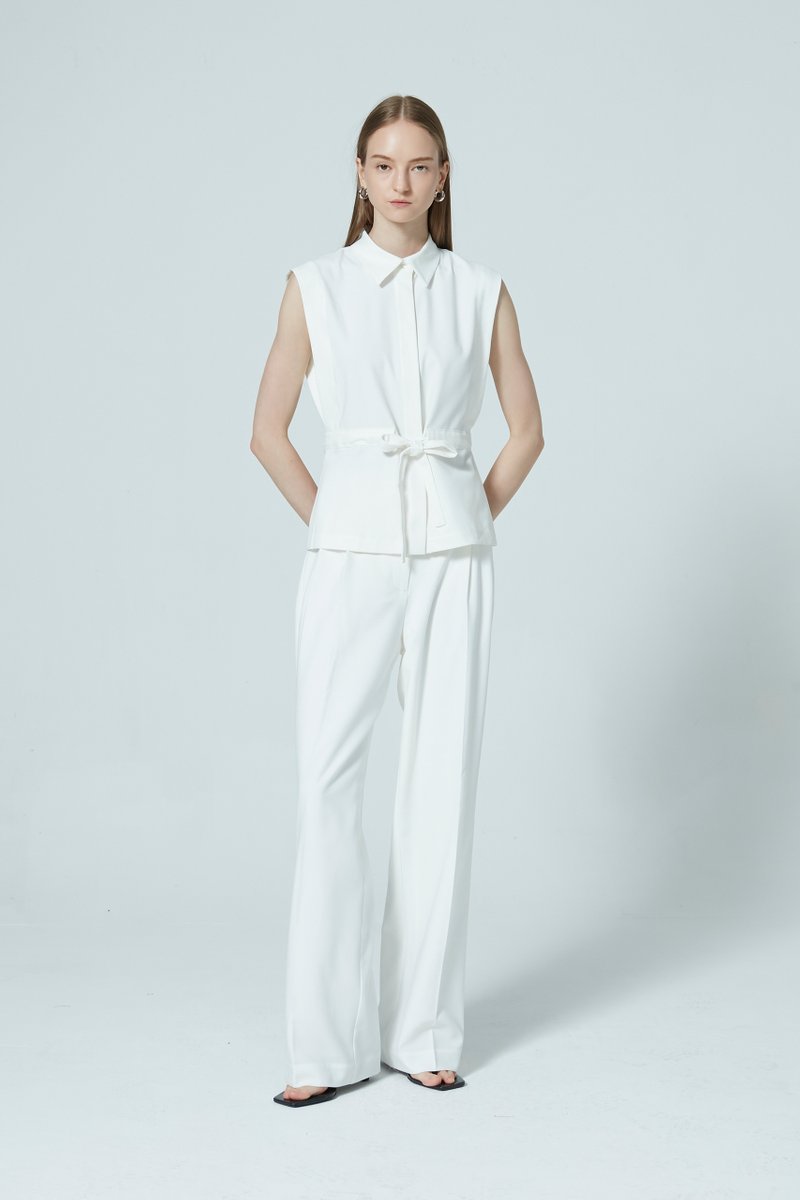 Balancing professional attire and work-chic, the Belted Sleeveless Shirt is a must-have. Tailored perfectly with a relaxed fit, it ensures comfort during long meetings and night events.