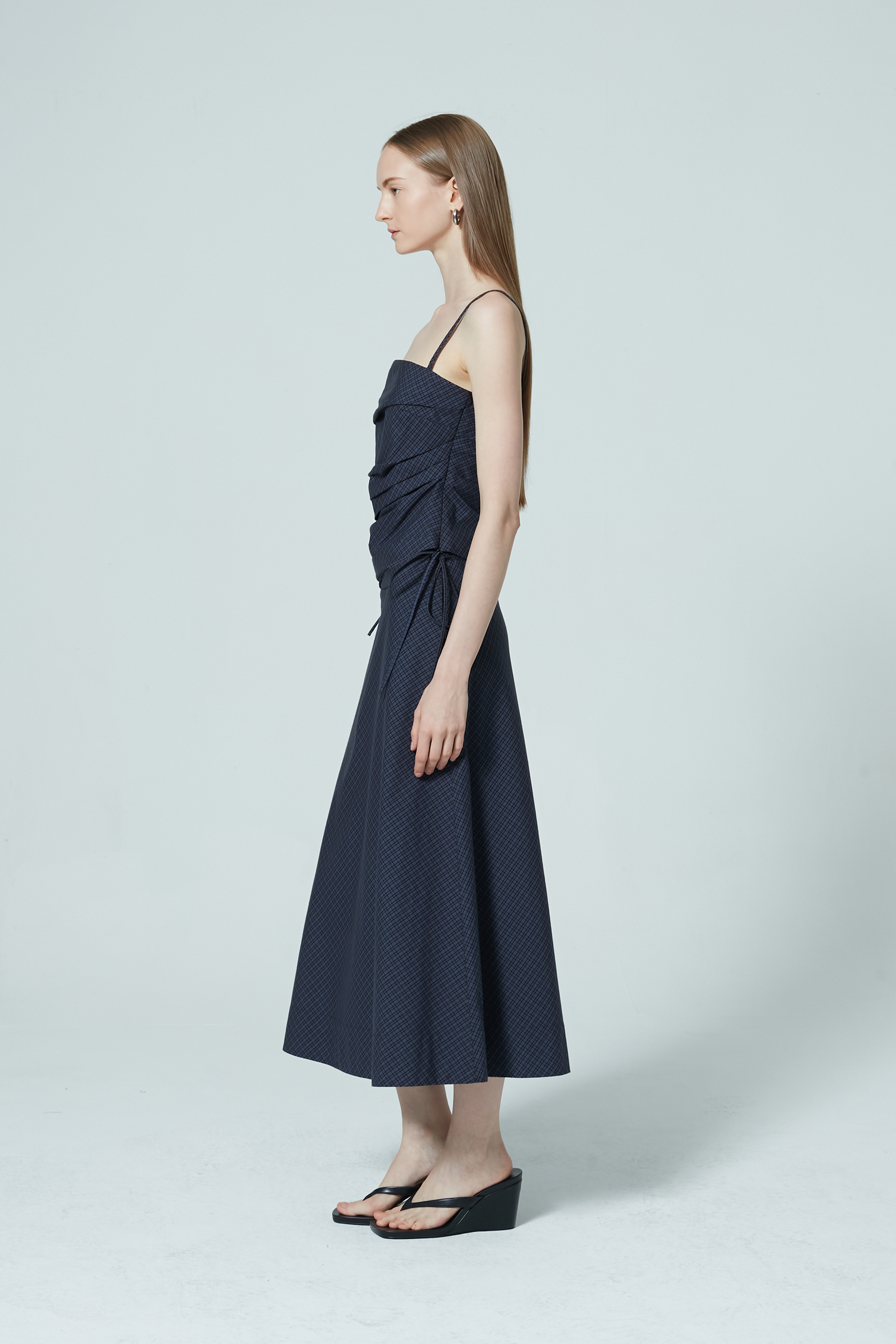 This asymmetrical top comes in muted checkered prints—a subtle statement to add to your everyday rotation. Featuring a pleated bodice and adjustable straps, the top also comes with a concealed size zipper. Pair with its matching skirt or opt for a plain pair of bottoms for an understated look.