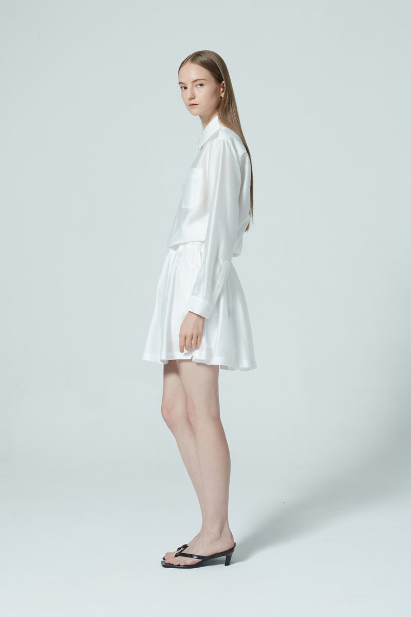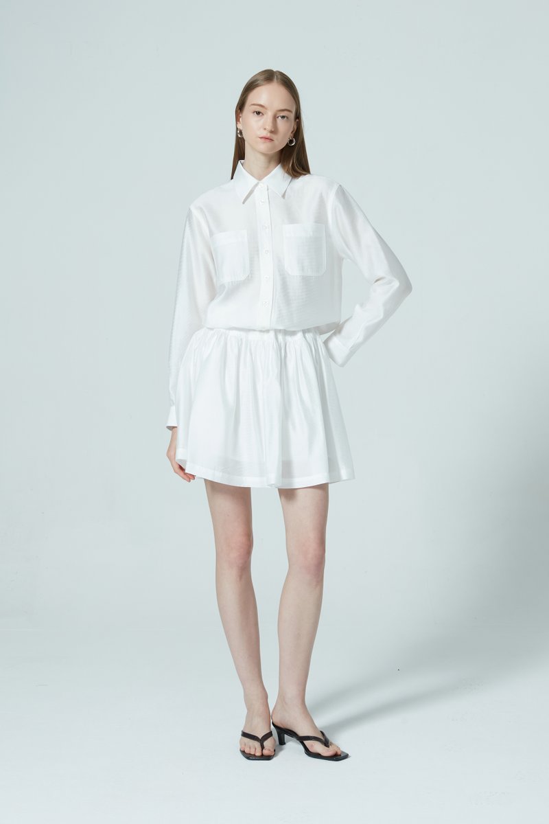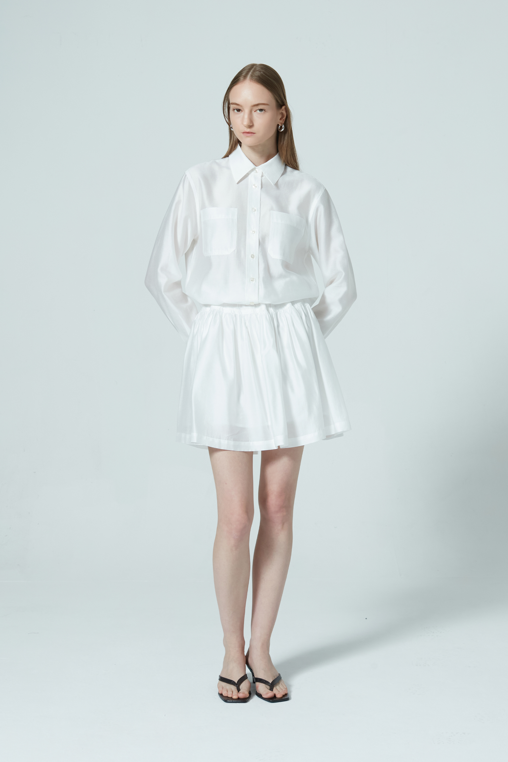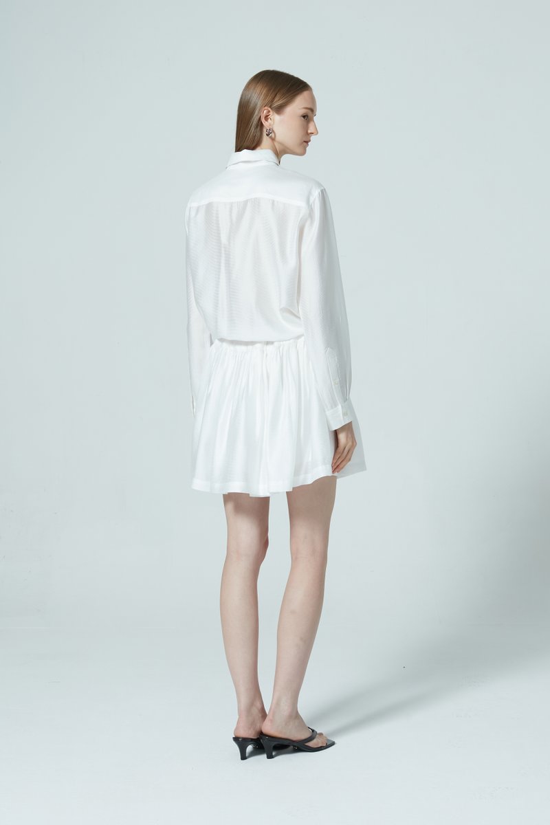 A modern twist on a classic shirt — this piece features a gathered hem with a drawstring tie that adds soft volume and shape. Its lightly textured fabric adds visual interest. Finished with a relaxed fit and crisp detailing for effortless everyday wear.