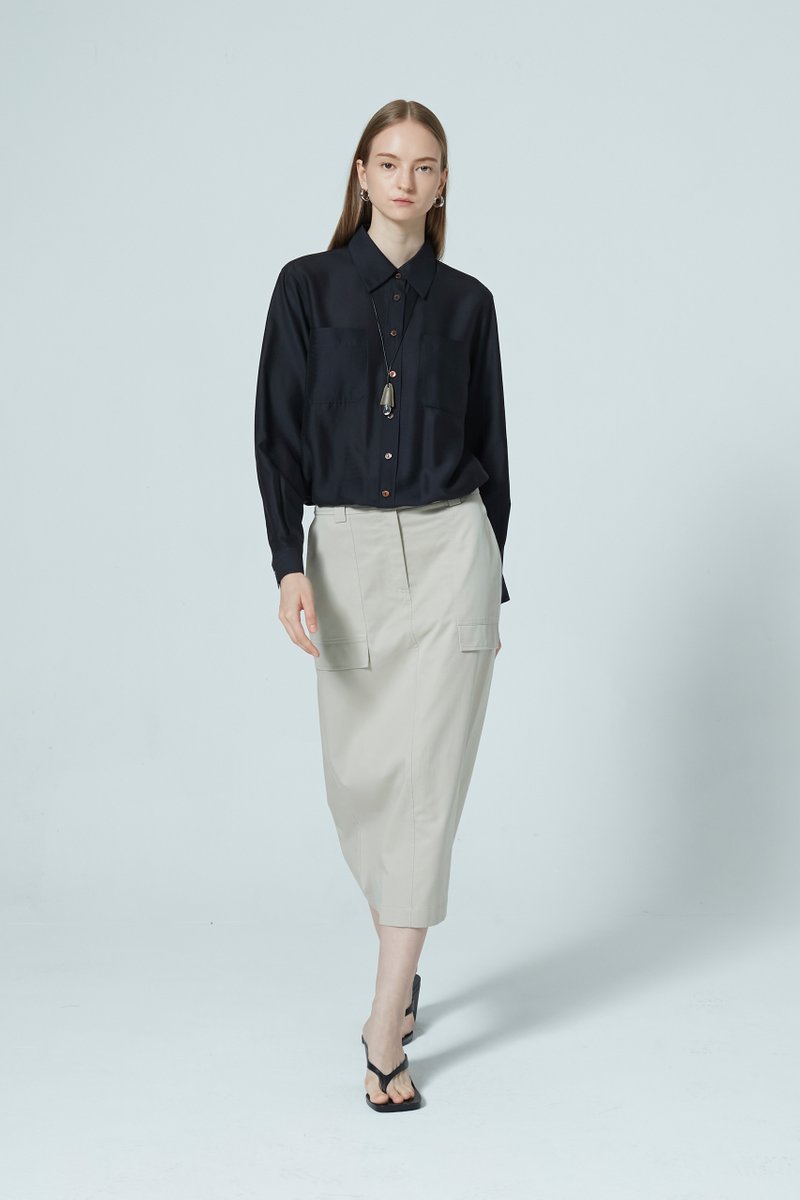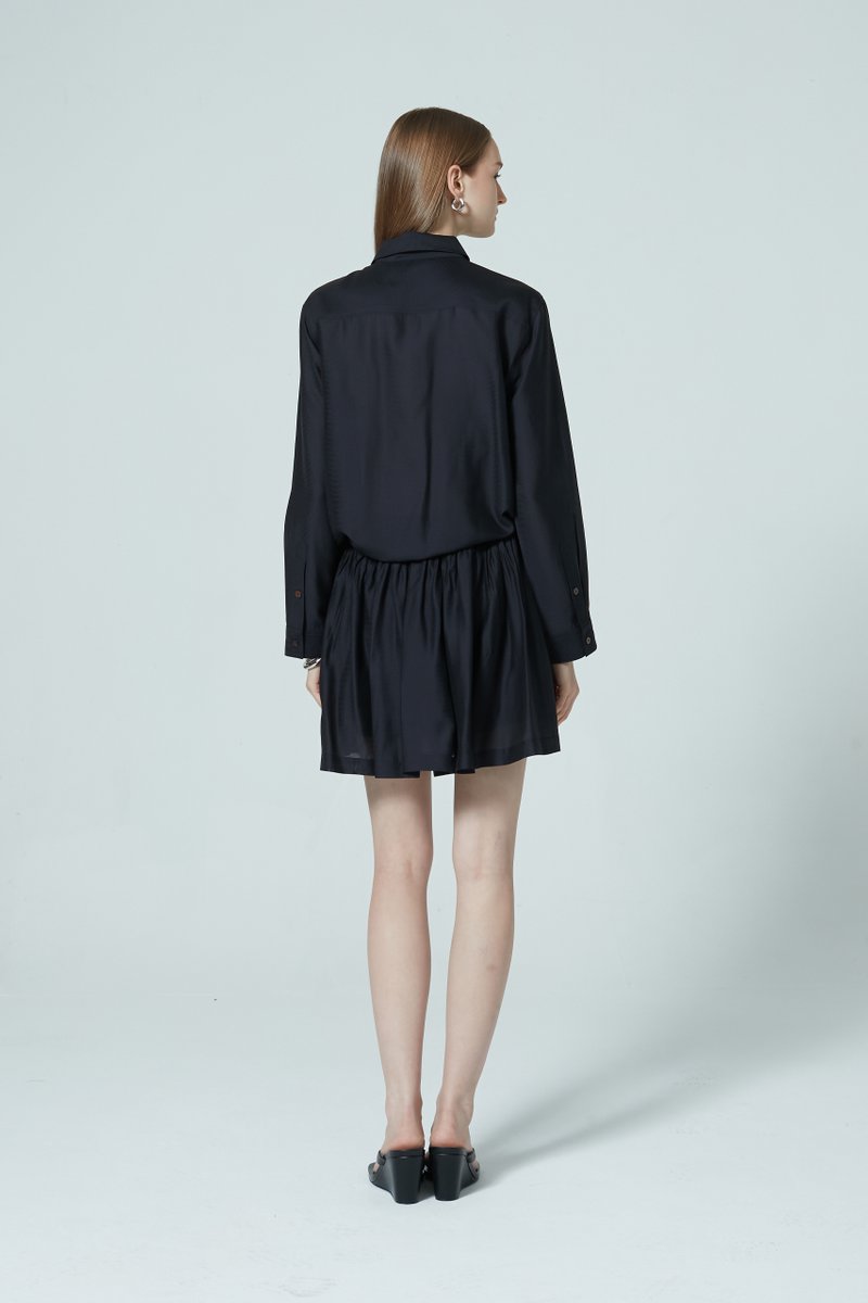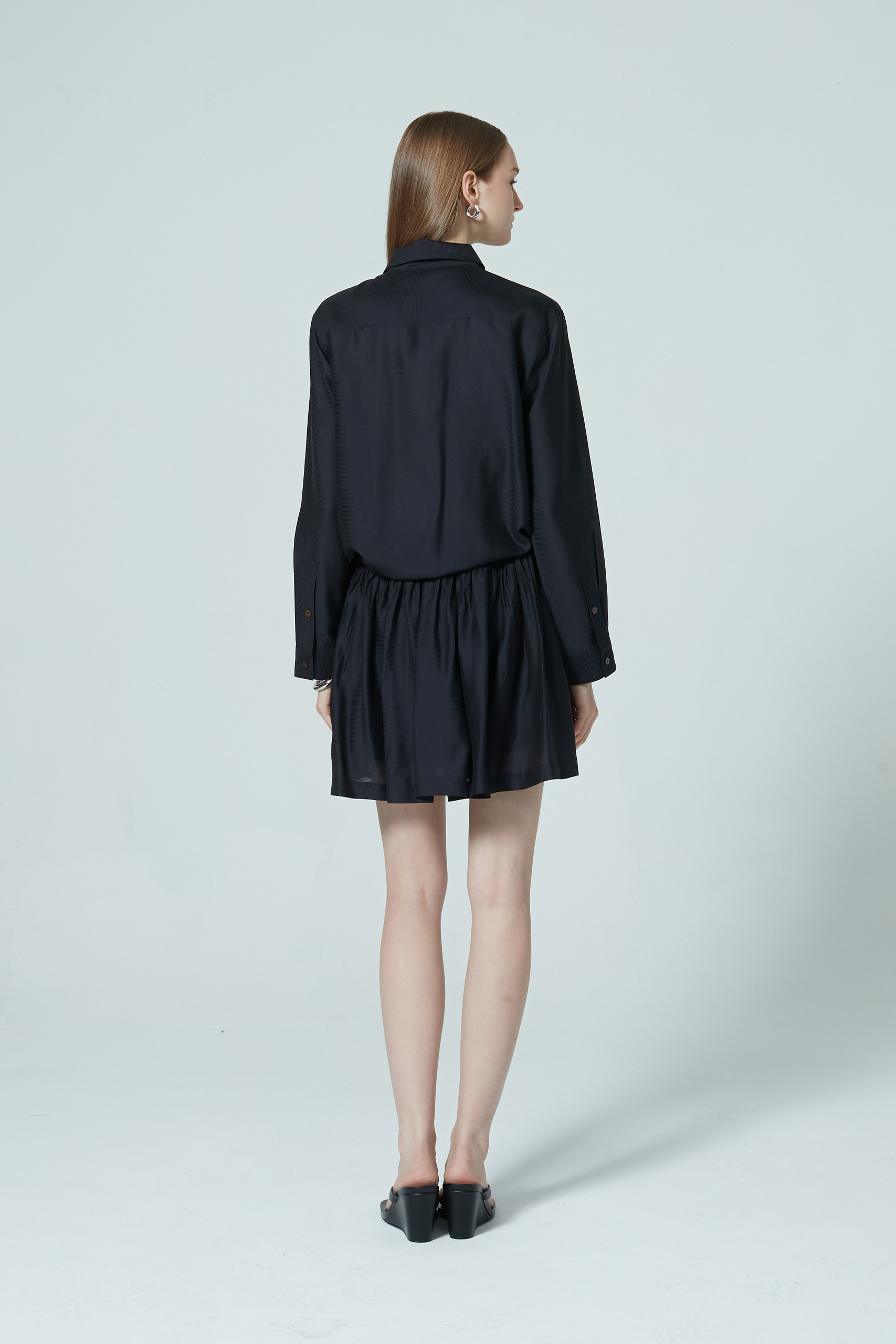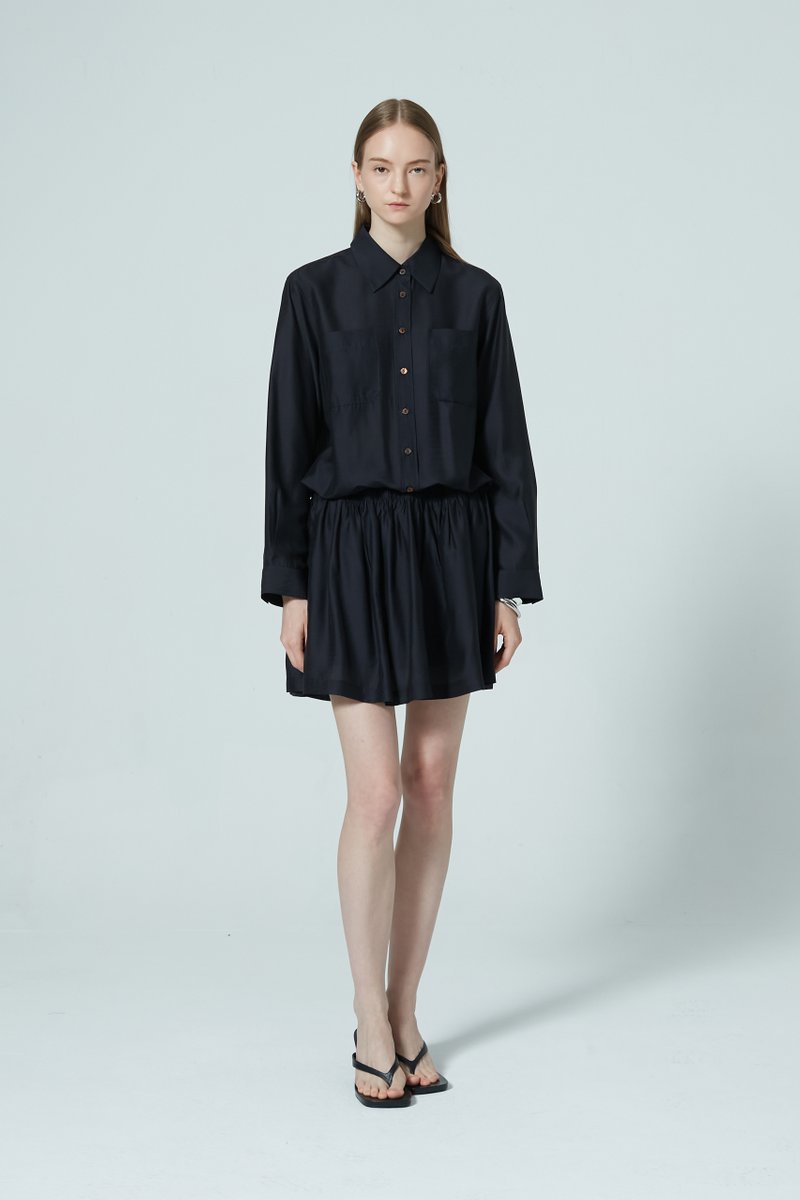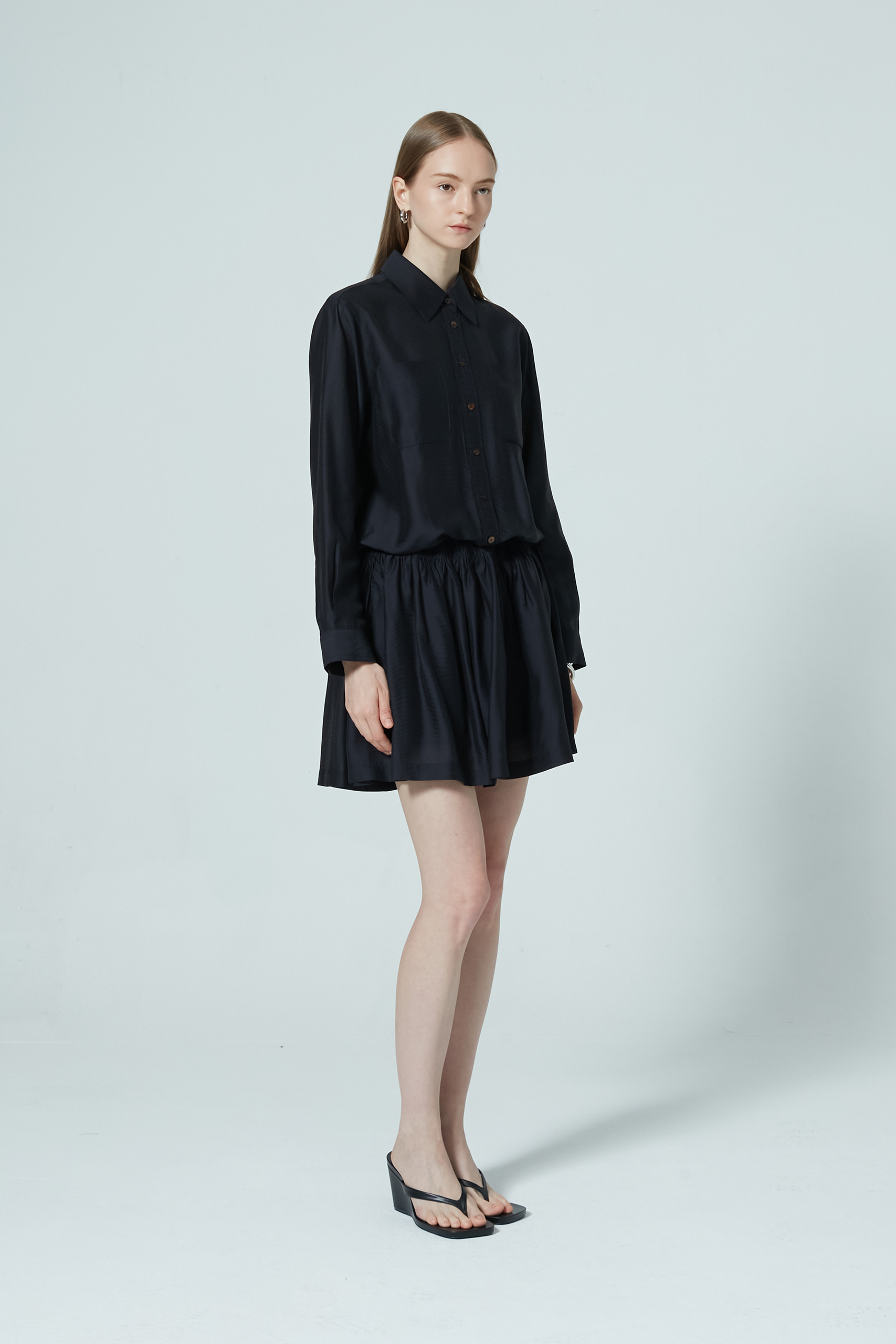 A modern twist on a classic shirt — this piece features a gathered hem with a drawstring tie that adds soft volume and shape. Its lightly textured fabric adds visual interest. Finished with a relaxed fit and crisp detailing for effortless everyday wear.