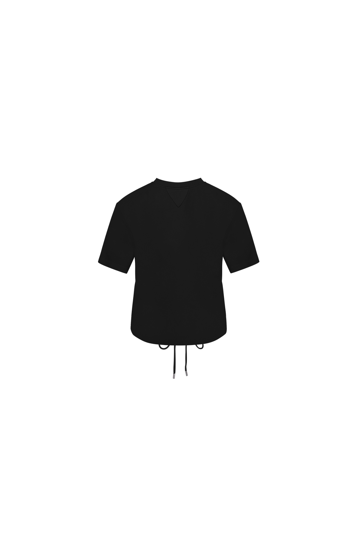An elevated wardrobe staple—perfect for casual days and errand runs. The drawstring detailing is functional and allows for a change of silhouette, from slouchy to a cinched look. Pair with denim bottoms for an effortlessly casual look, or with a voluminous skirt for a relaxed silhouette.
