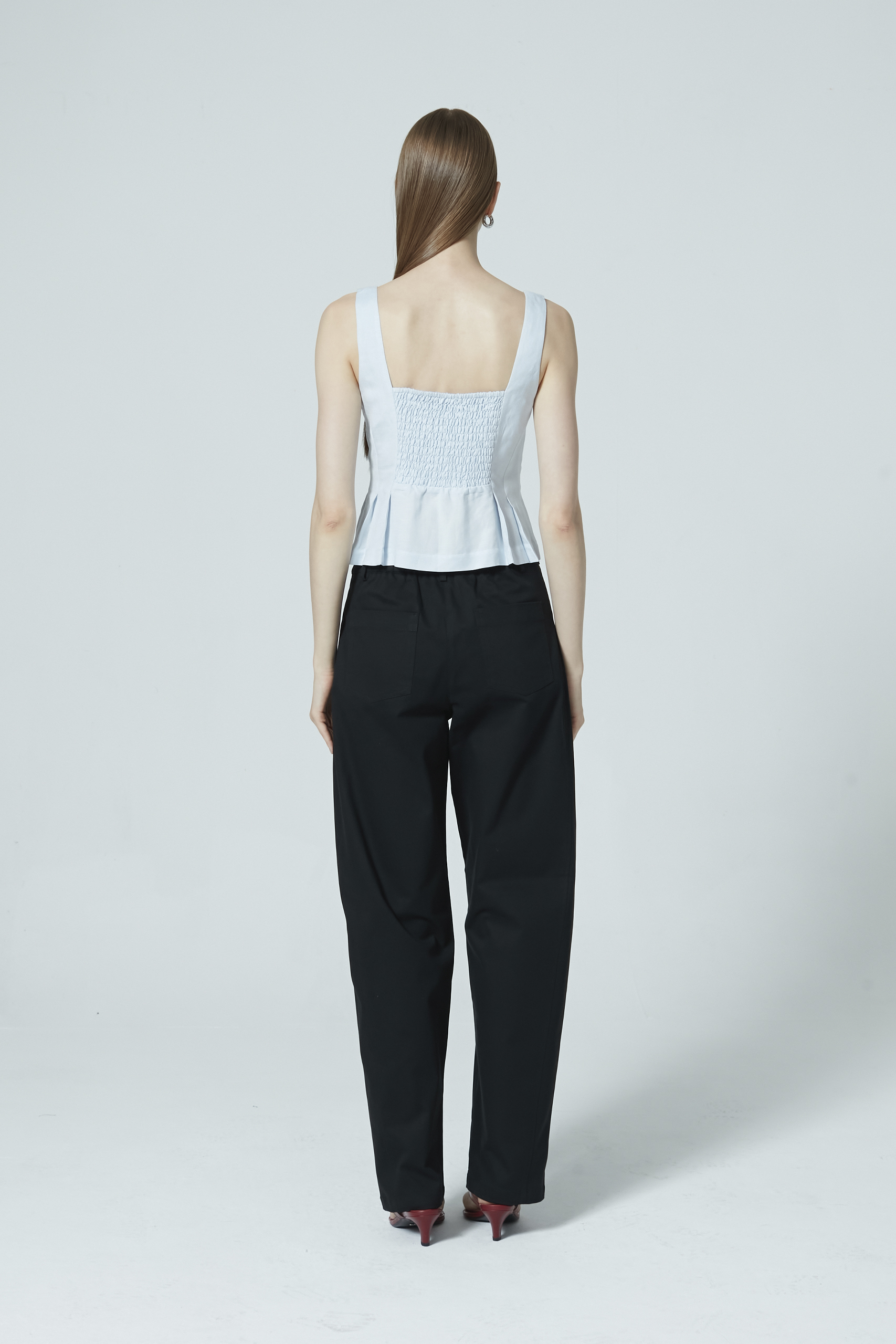 A fit-and-flare peplum cut, modern yet familiar. An elasticated smocked back ensures comfort and eases all day long. This top is made from a breathable linen blend, making it perfect for warmer days.