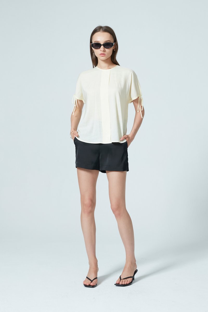 Bringing back bubble silhouettes this season, this top feature drawstring details that add volume to the sleeves and elevate an everyday basic. Crafted from a breathable Tencel-cotton blend, this top is the perfect addition to your wardrobe.