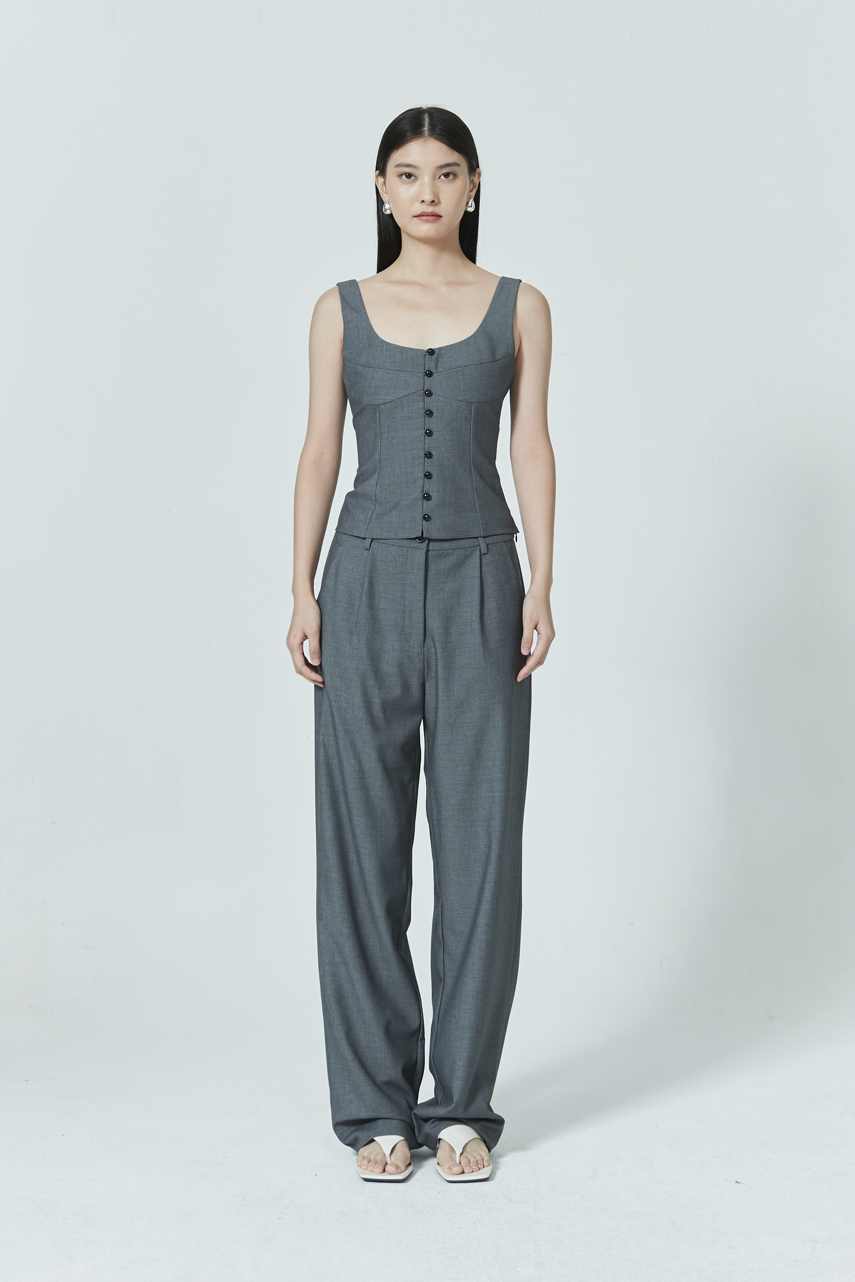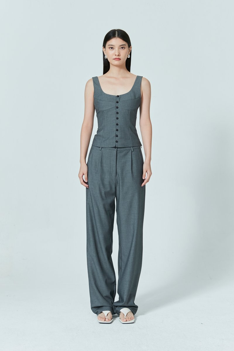 Chic and refined, this bustier top feature unique buttons with a slight shimmer, adding a touch of sophistication to your everyday dressing. The thoughtfully designed seams contour the body—flattering for all. Pairs perfectly with the matching full-length pants.