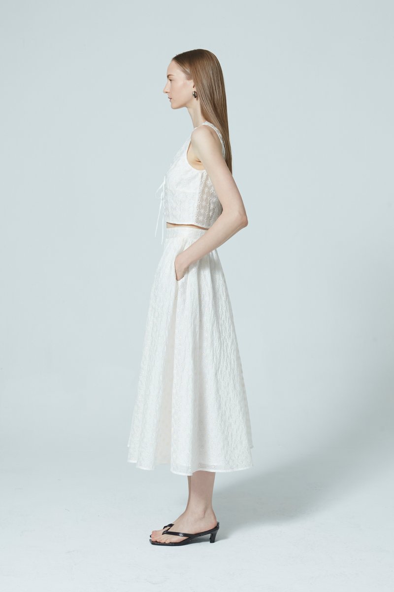 Crafted from a unique ivory broderie made in Europe, the Elise top is a fun, occasion-ready piece that stays comfortable all day long. Pairs best with its matching skirt for a put-together two-piece look.